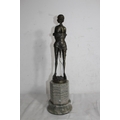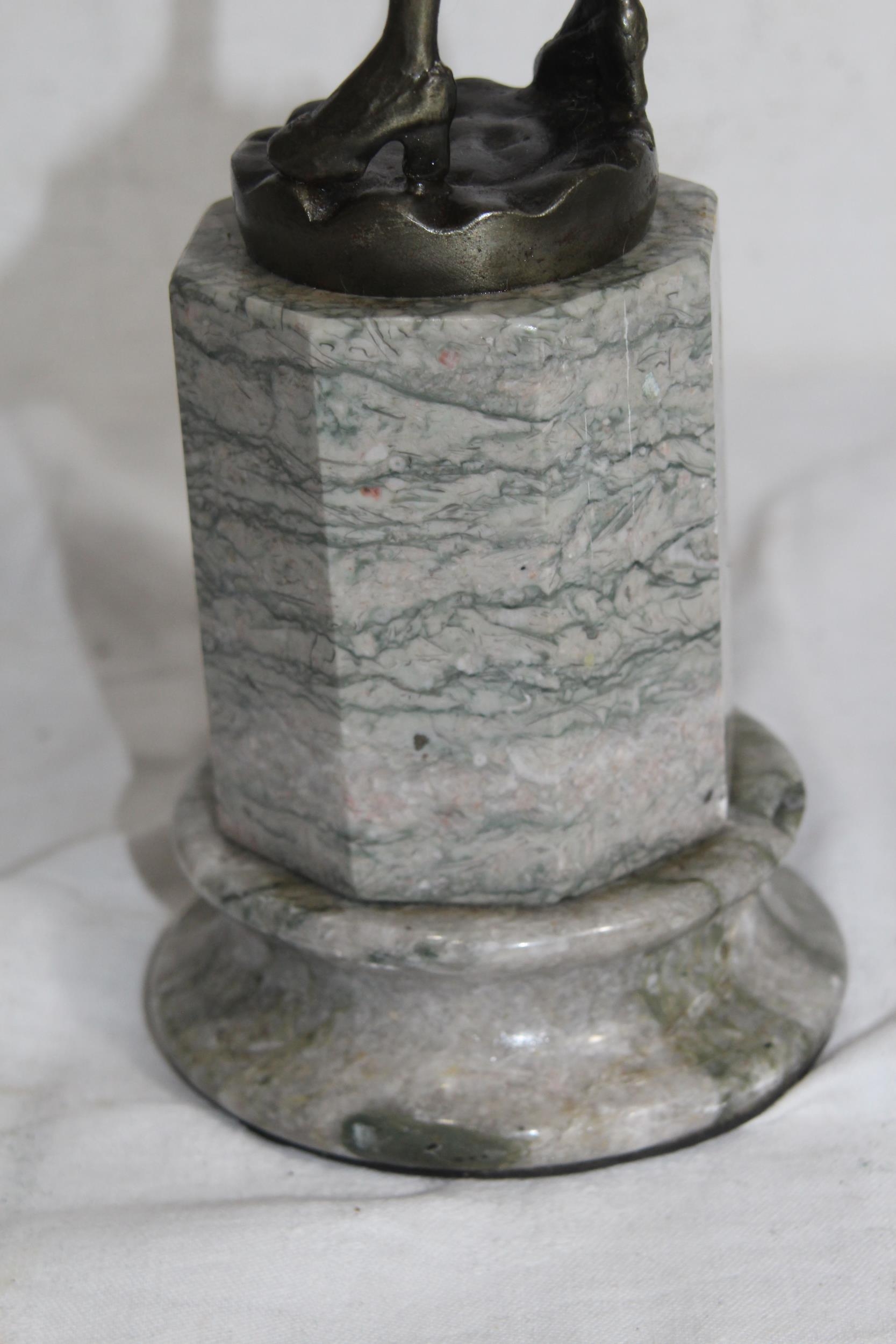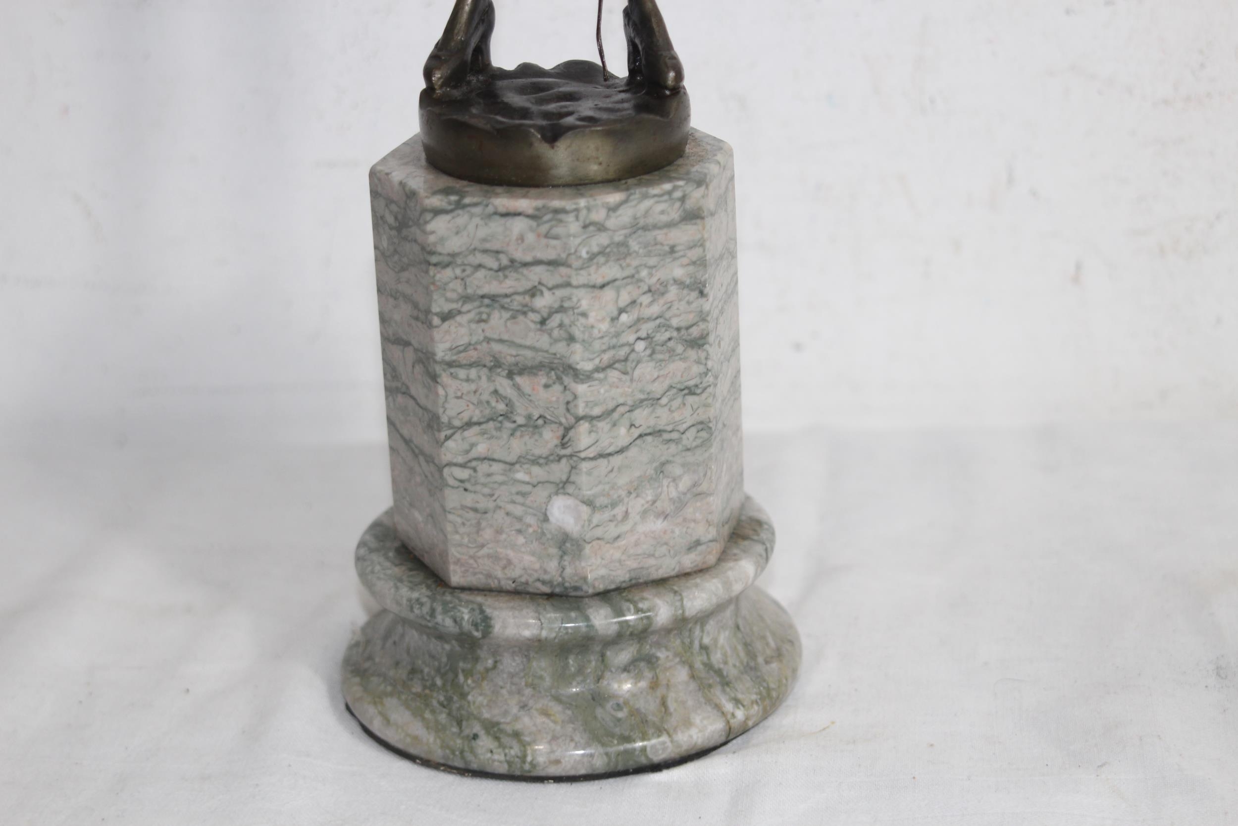 BRONZE FIGURE RIDING CROP ON MARBLE BASE - BASE A/F43CM
