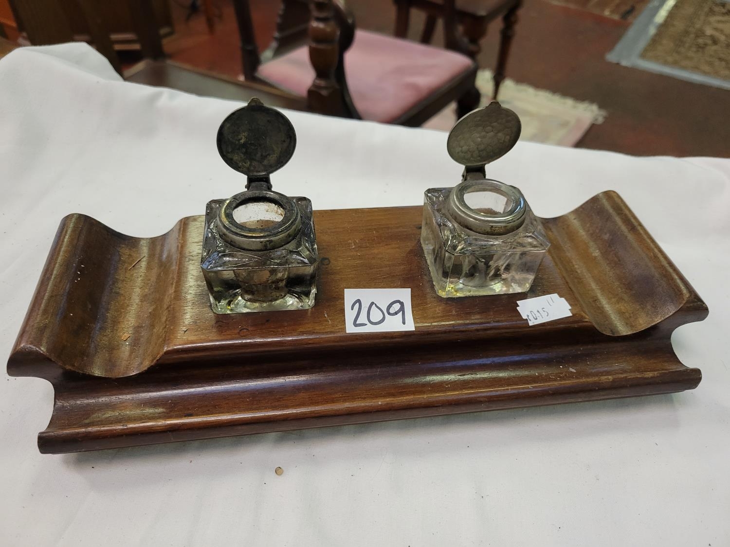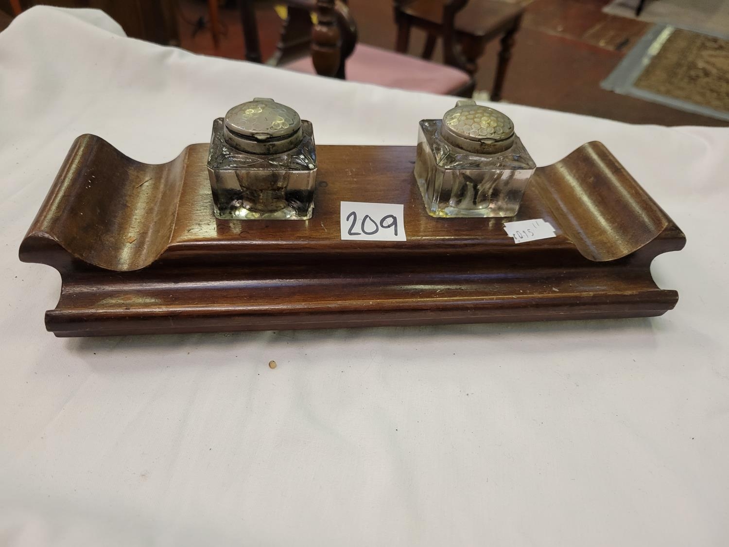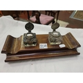 Vintage Mahogany Desk Tidy with Glass Ink Pots.
