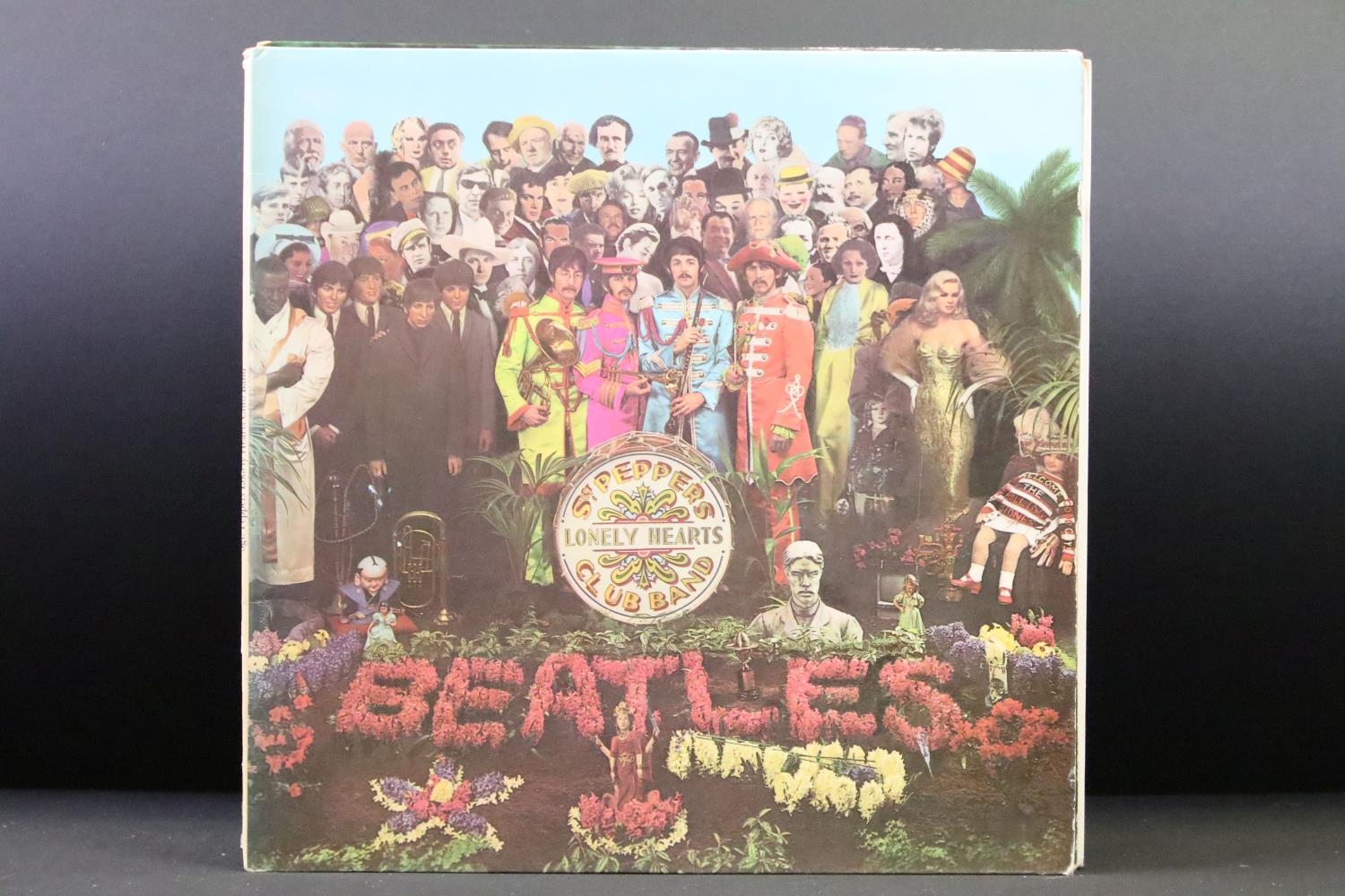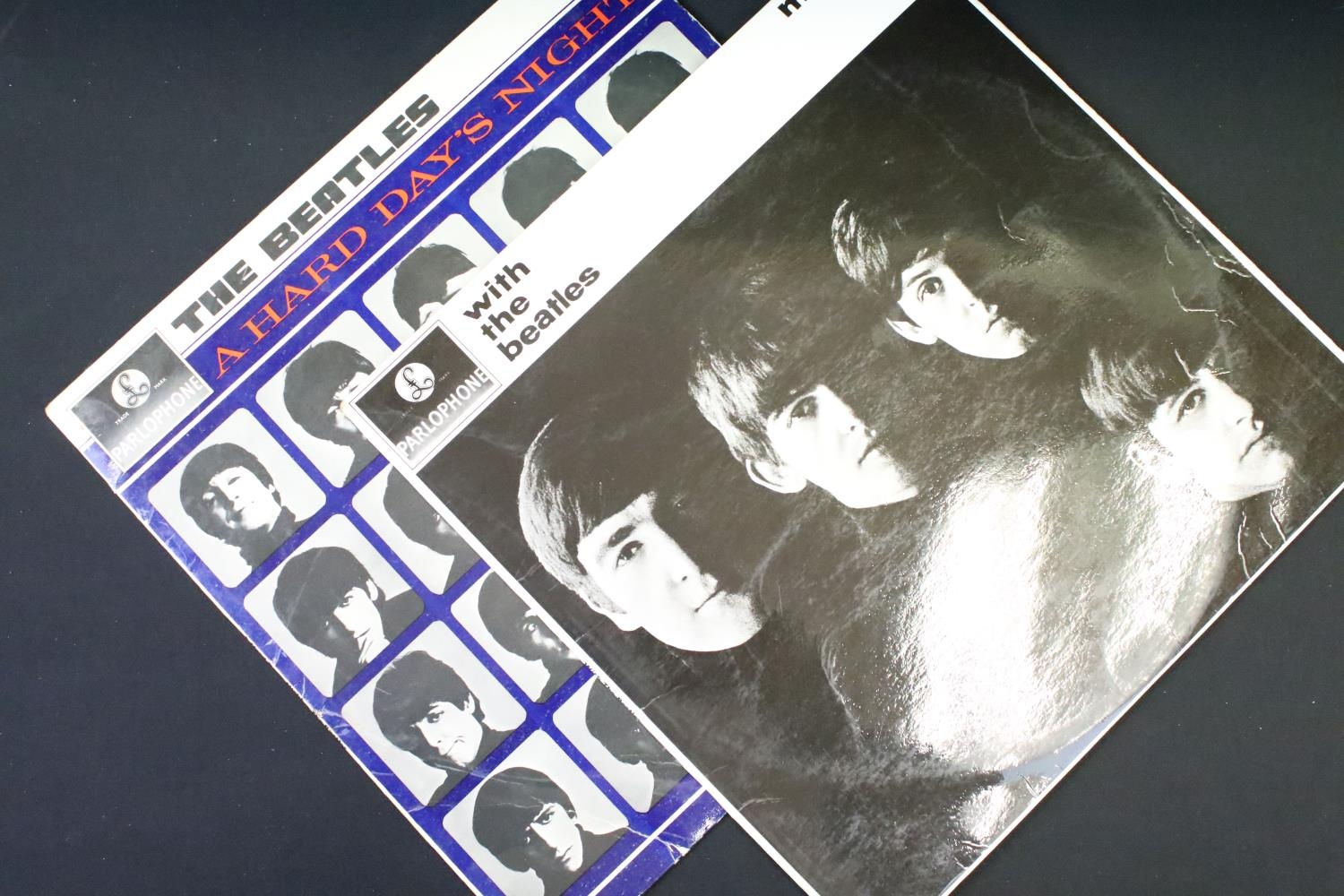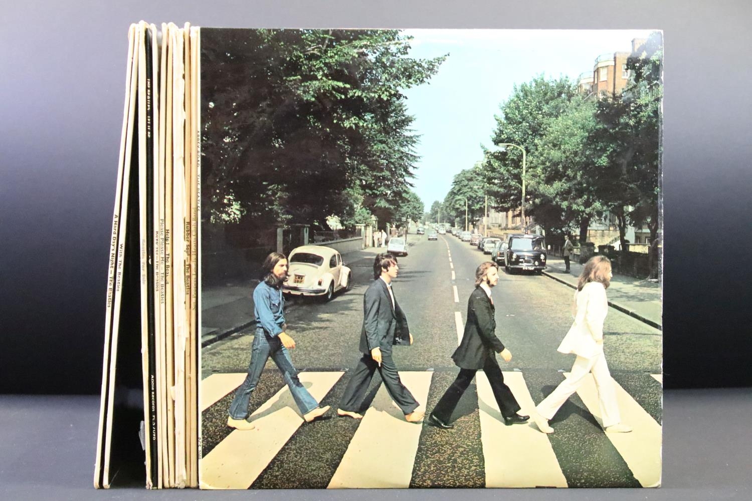 Vinyl - 11 Beatles LPs to include Abbey Road (misaligned apple), White Album (stereo top loader No. 0500782 with poster and 4 photos, black inners spine has losses), Sgt Pepper (mono no inserts), Rubber Soul, Help!, Please Please Me, Revolver, Let It Be, Beatles For Sale, With The Beatles, A Hard Days Night. Vg+ overall.