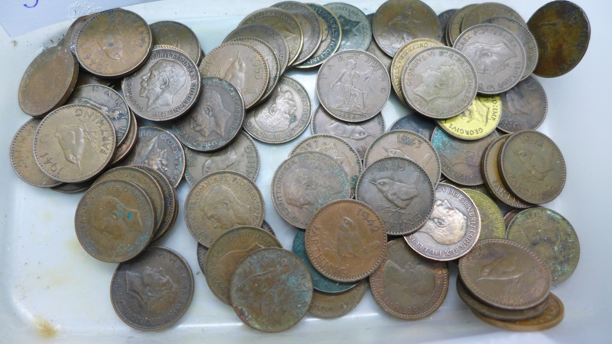 A collection of 80 farthings, assorted years