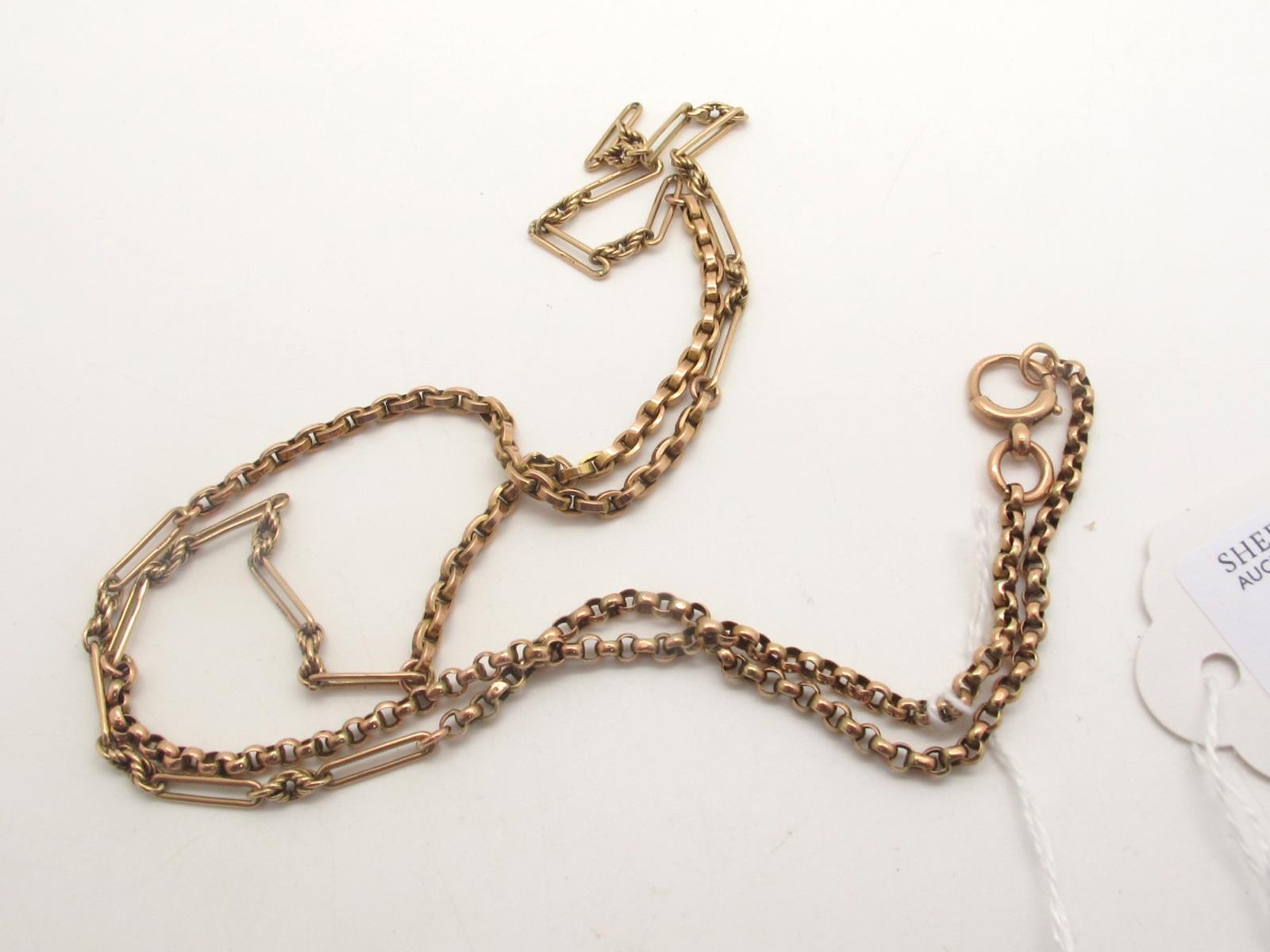 A Fancy Link Chain, stamped "9c", to oversize bolt ring (overall weight 11.5grams).