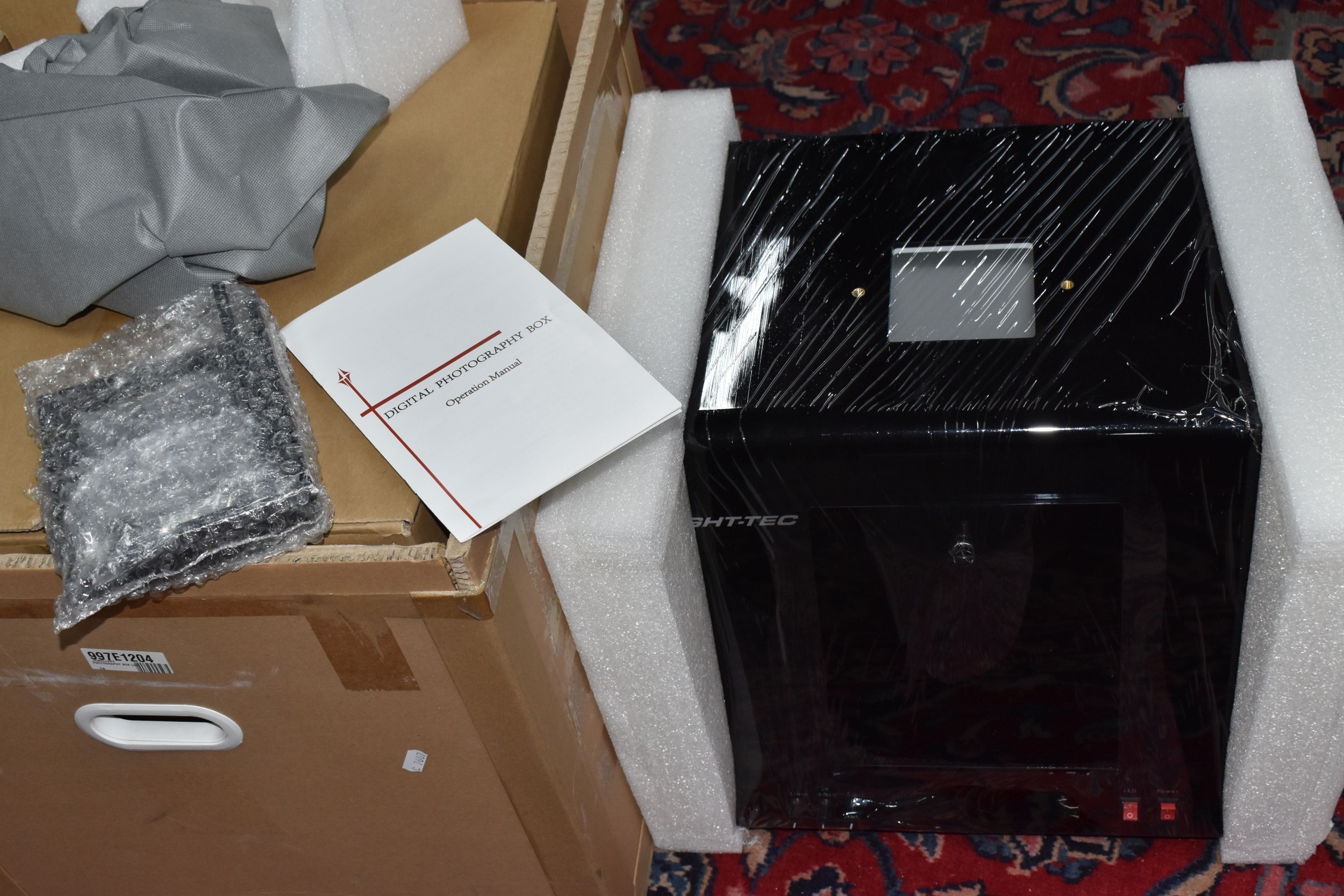 A BOXED LARGE JEWELLERY PHOTOGRAPHY LIGHT BOX, missing plug, not tested, viewing is advised to satisfy requirements, we cannot guarantee the working order of this product or if all parts are present (condition report: not tested, we cannot guarantee the working order, viewing is advised)