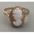 A SUBSTANTIAL 375 stamped/hallmarked ring size P with CAMEO inset, gross weight 2.42g approx