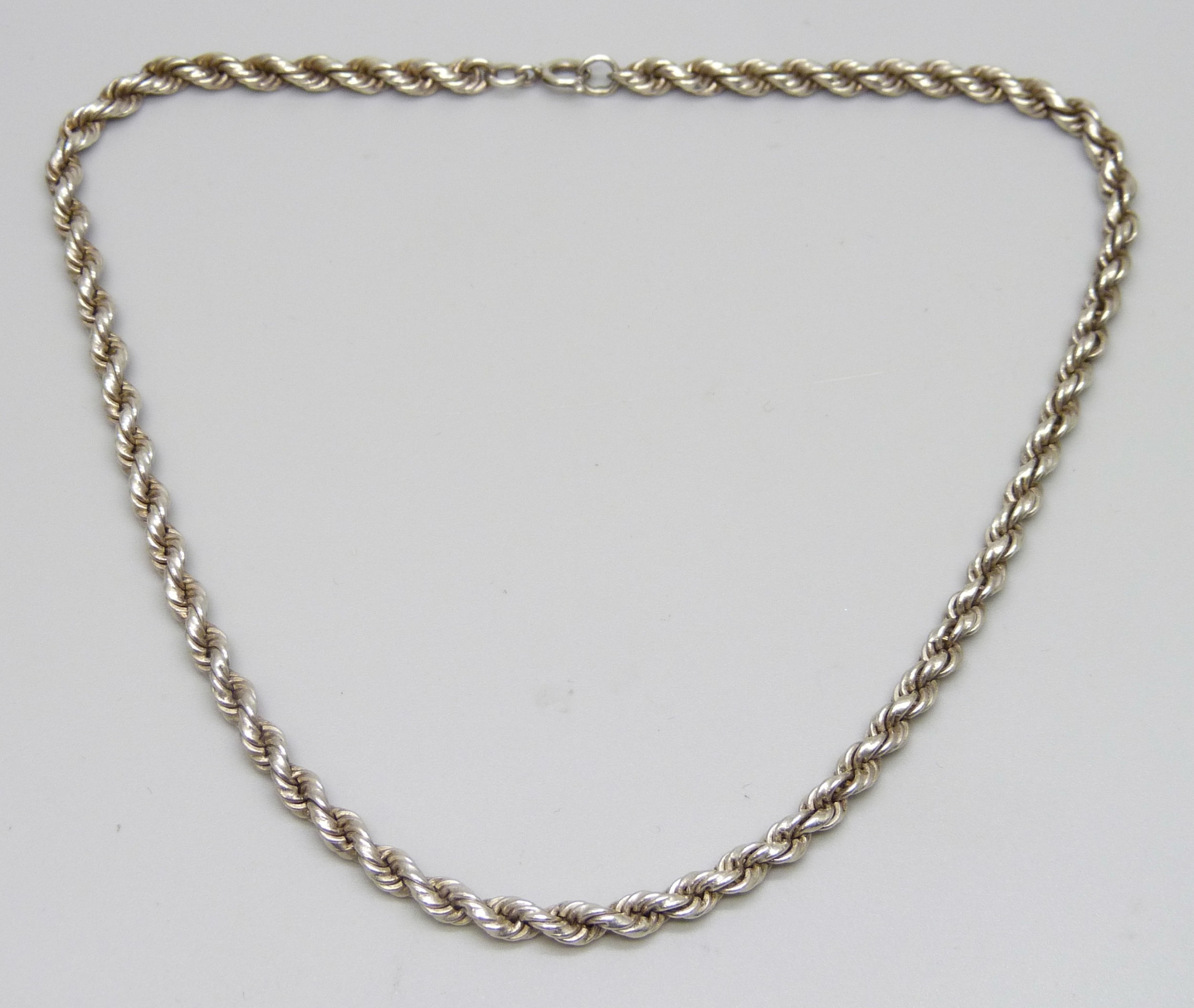 A silver rope twist chain choker necklace, 20g, 35.5cm