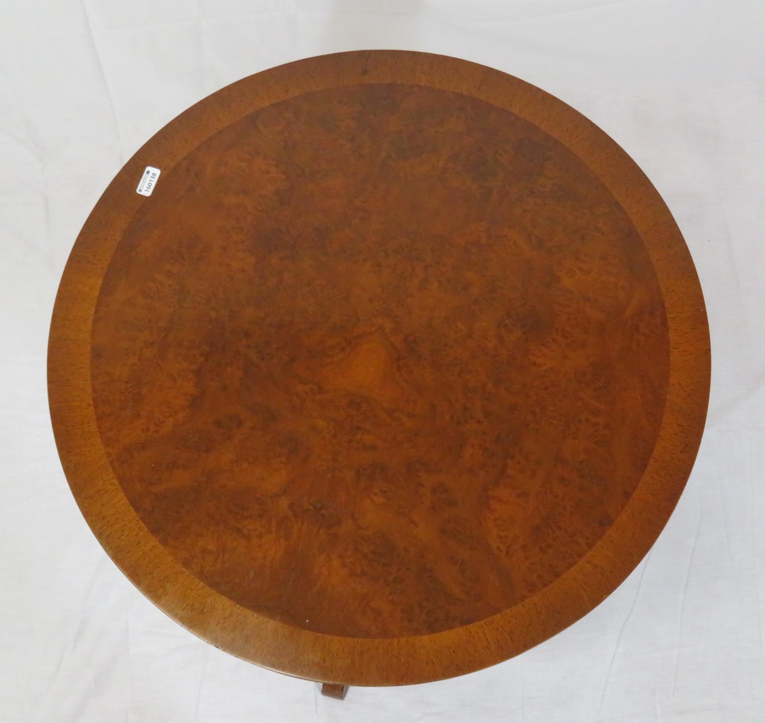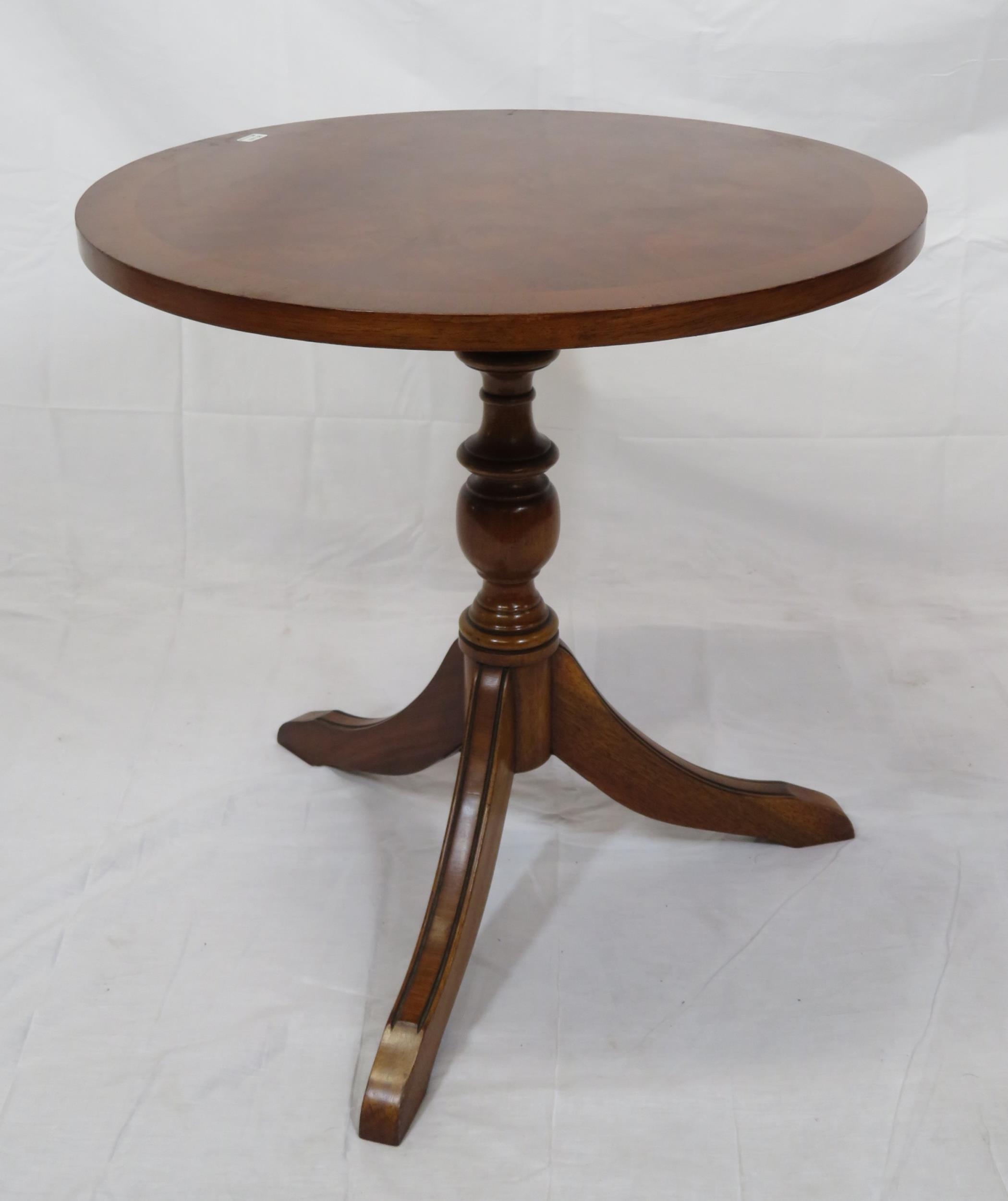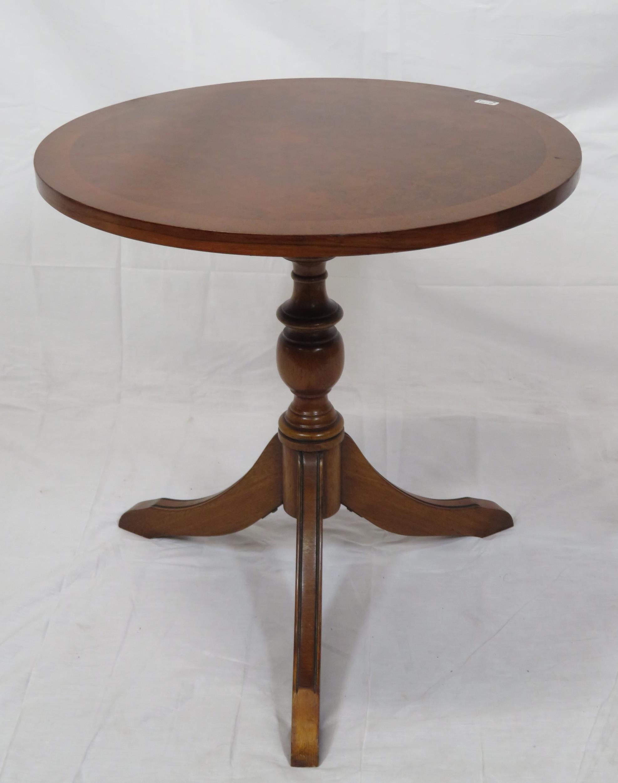 Edwardian design inlaid walnut occasional table with round top, on tripod