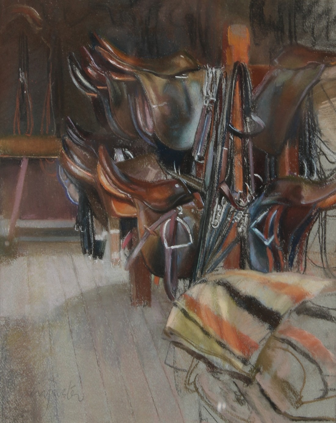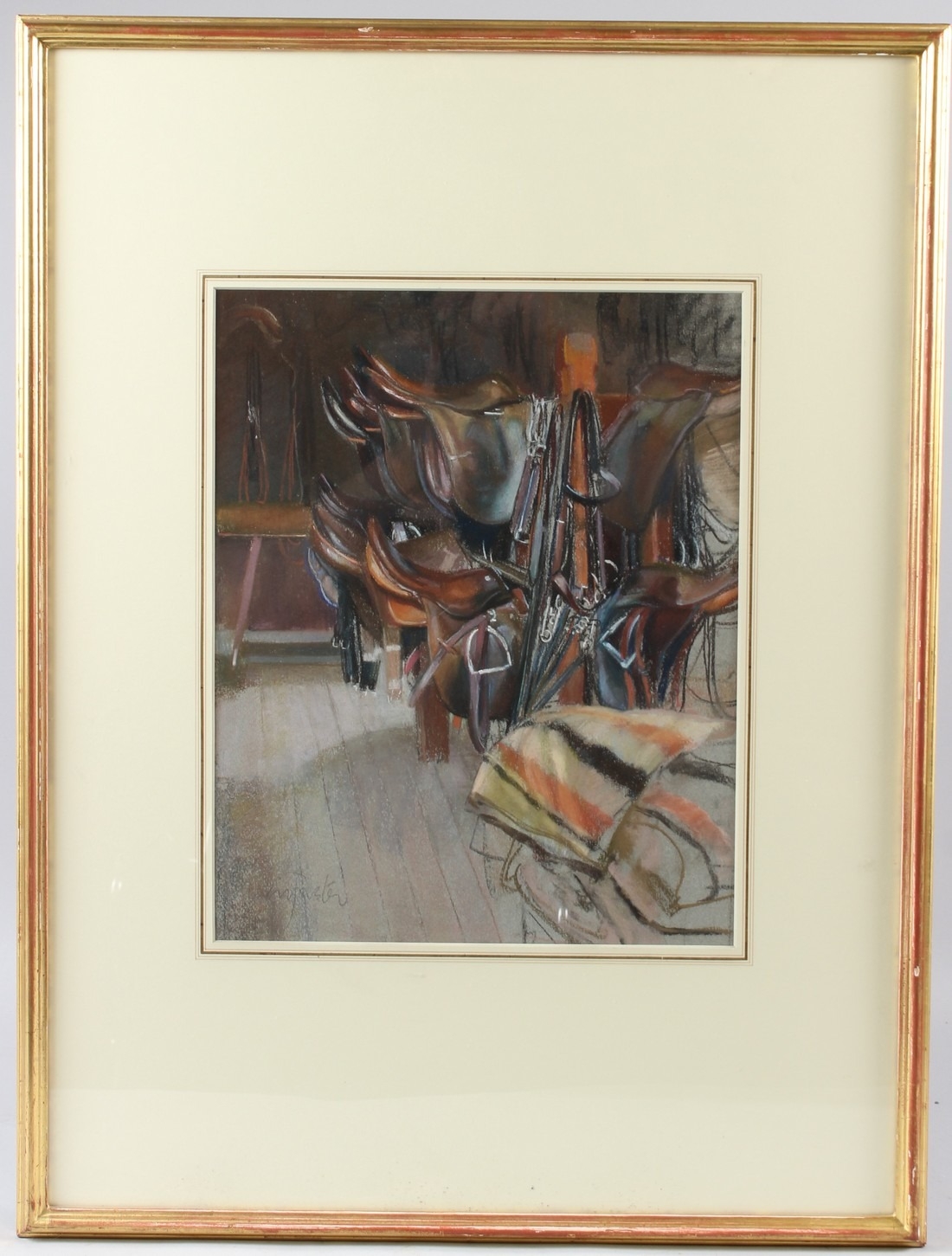 NEIL FOSTER 'Badminton Tackroom' pastel signed Chris Beetles Gallery label 38 x 30cm