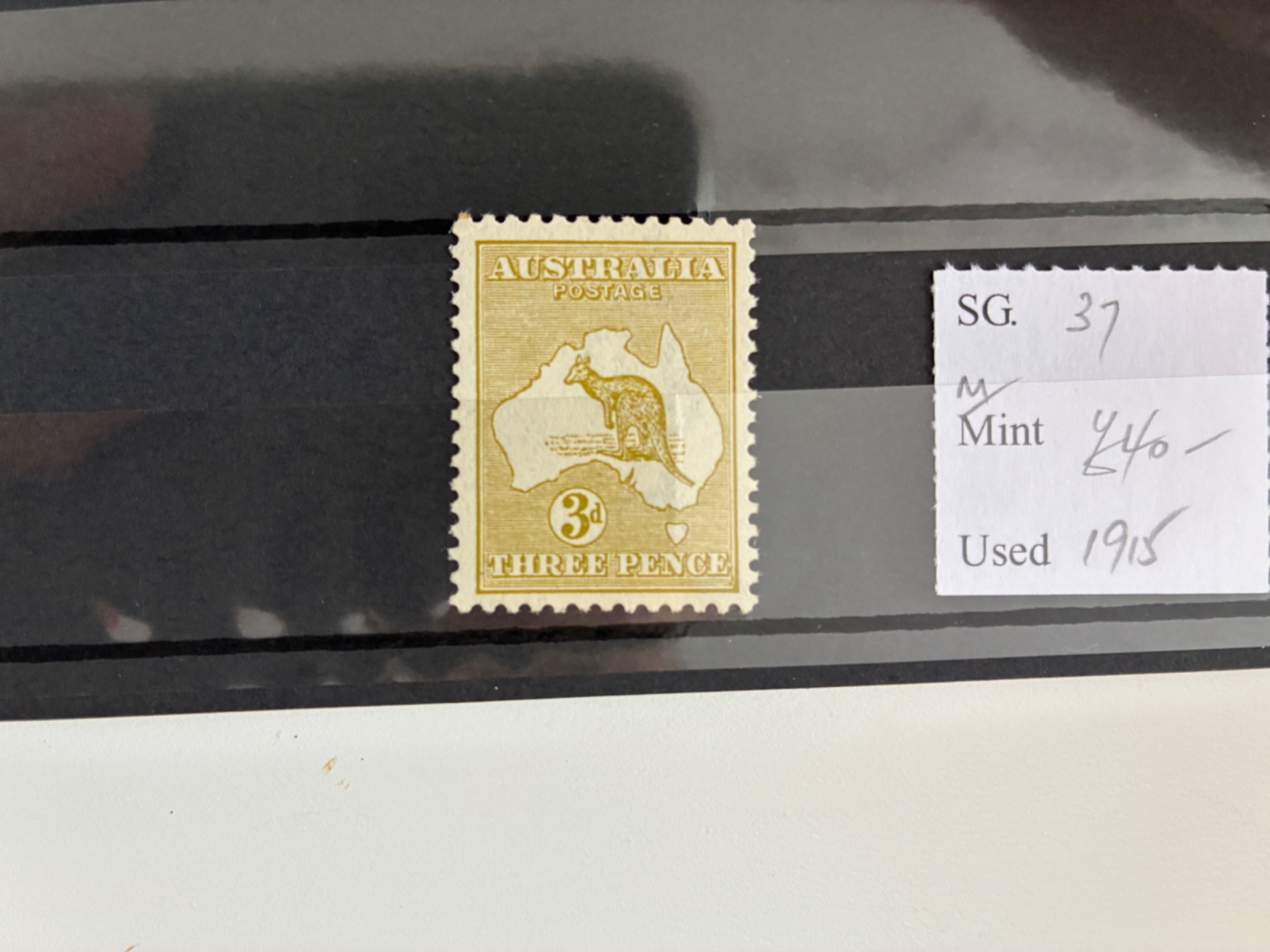 Australia 1915 3d yellow-olive, die I, m/m (SG 37) Cat £40
