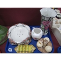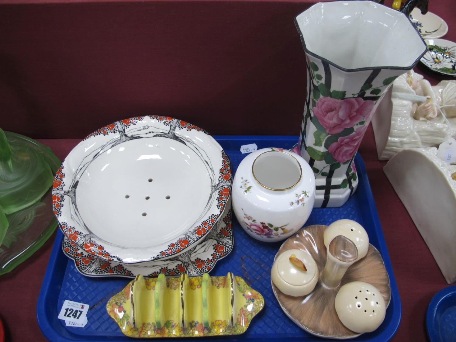 Crown Ducal 'Orange Tree' Salad Bowl and Stand, Carlton Ware 'Mushroom' cruet, W & R Carlton Ware vase, Royal Winton toast rack etc:- One Tray.