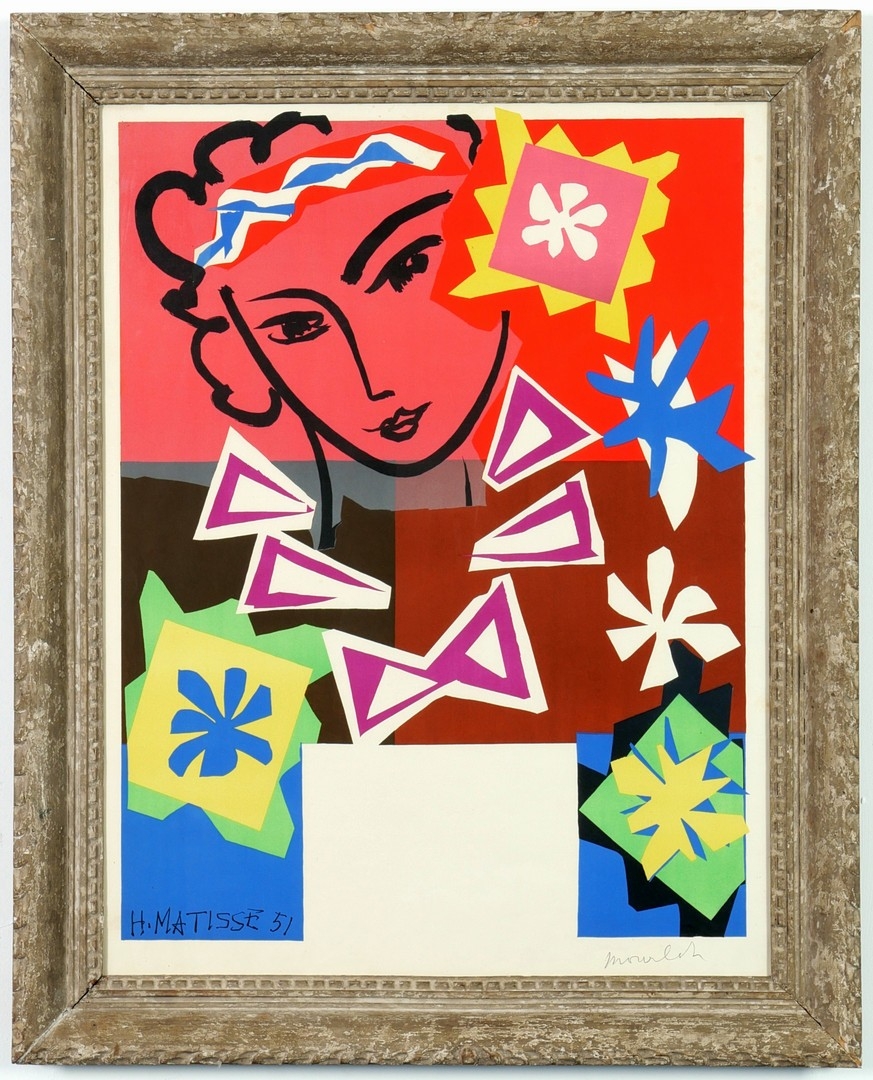 HENRI MATISSE. BAL DES ARTS DECORATIFS MME POMPADOUR. original poster on light wove paper, signed in the plate, printed by Mourlot : Edition:1500, French Montparnasse frame, 79cm x 58cm.
