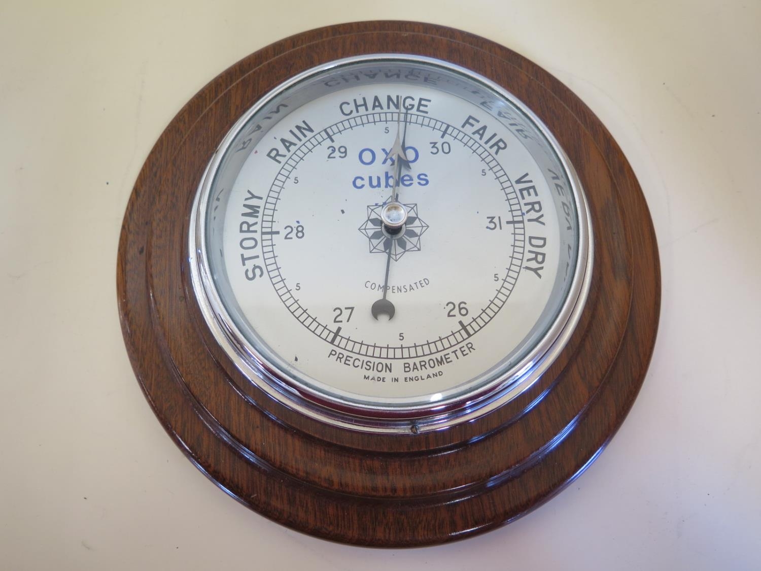 A mahogany case aneroid barometer 6 inch silvered dial, chrome bezel