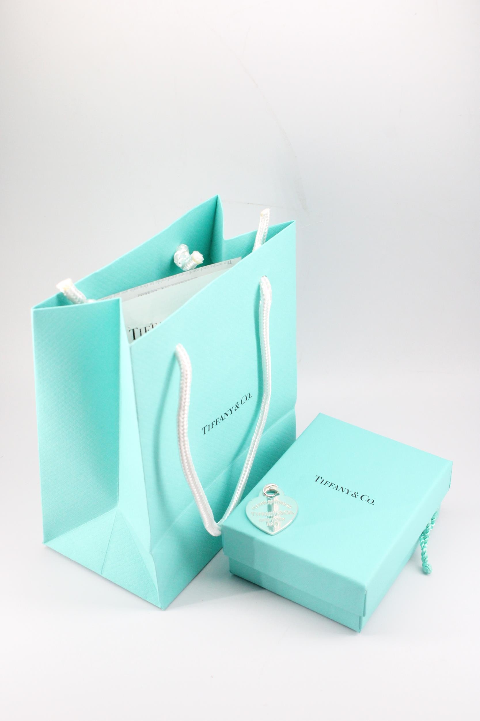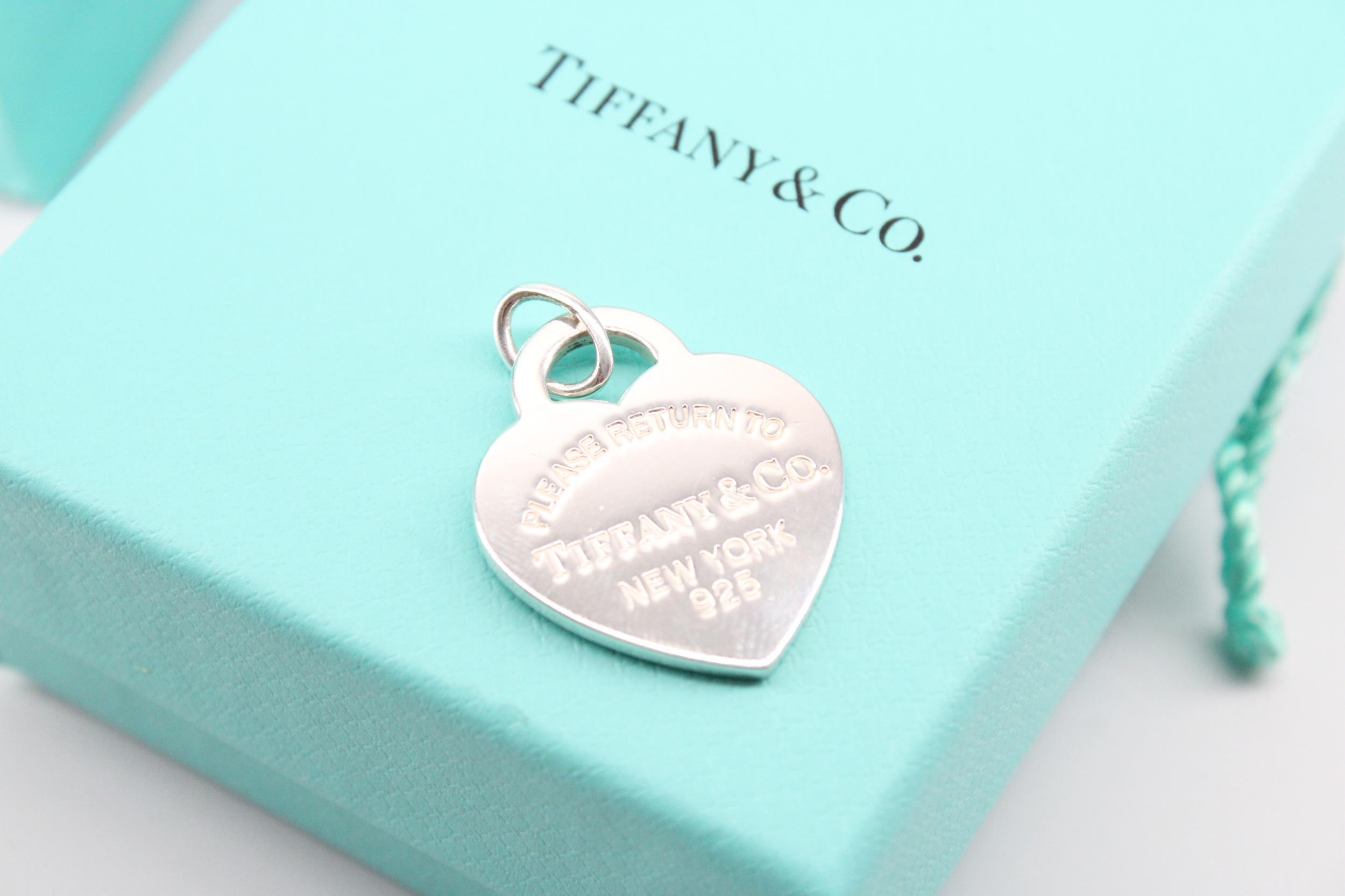 A Tiffany & Co. sterling silver 'Please Return To Tiffany' charm - approx weight 8.42g, approx width 2.5cm - with box, bag and in as new condition