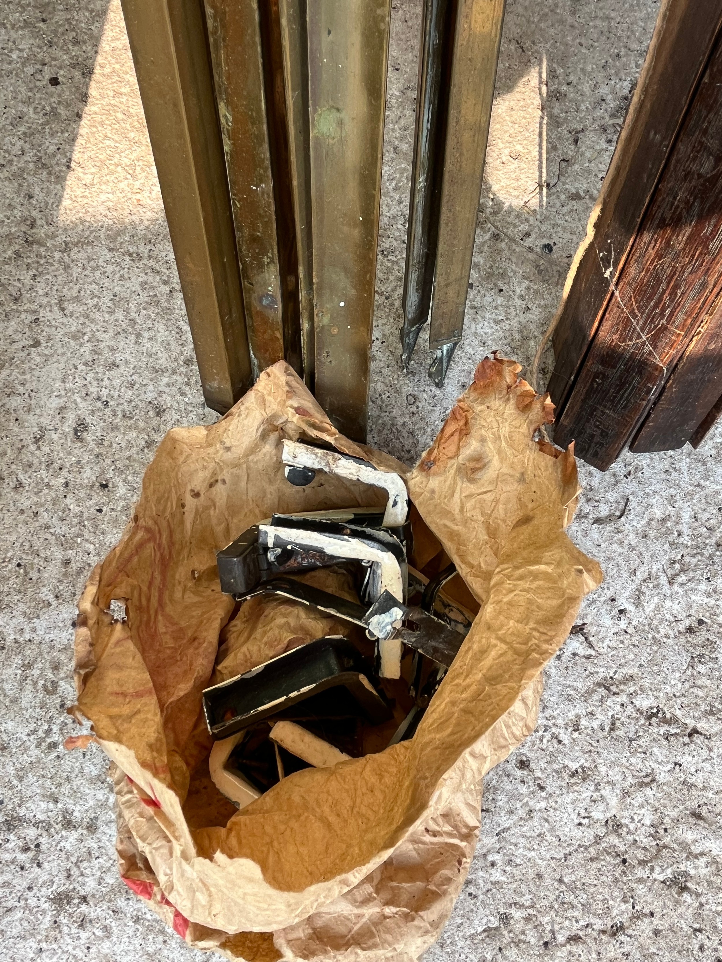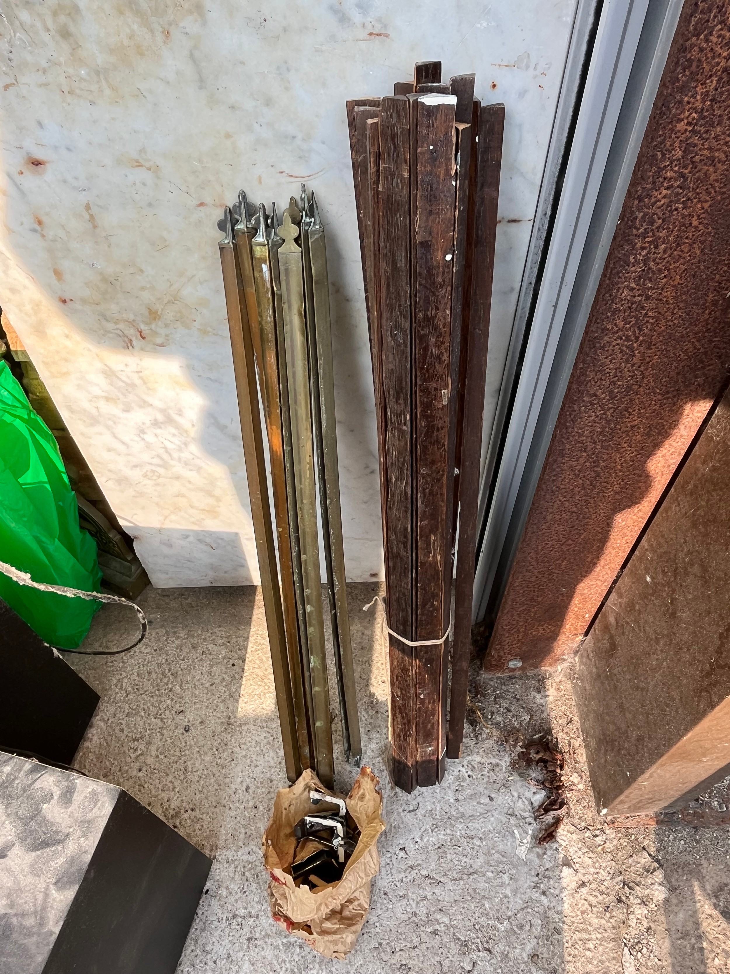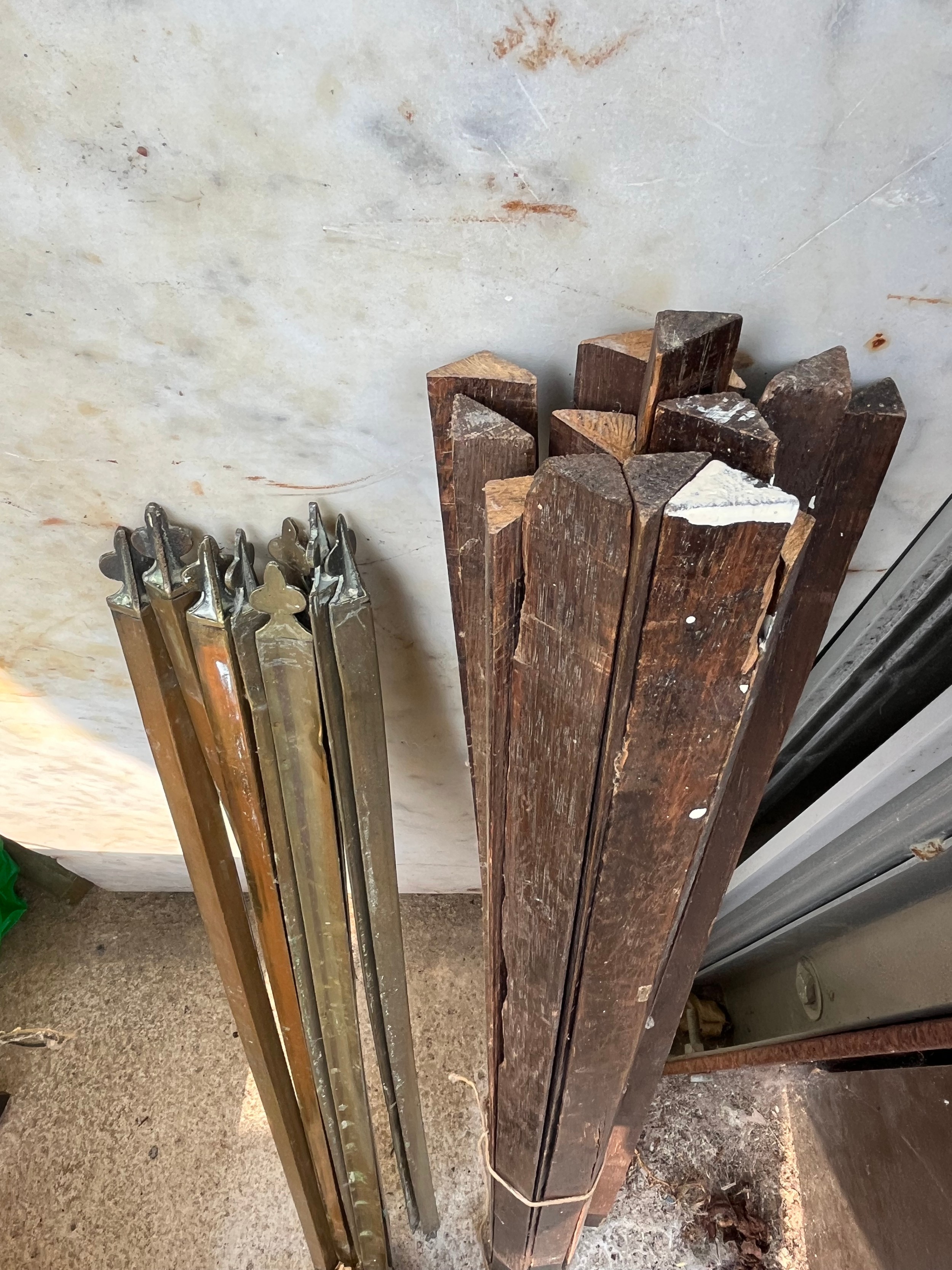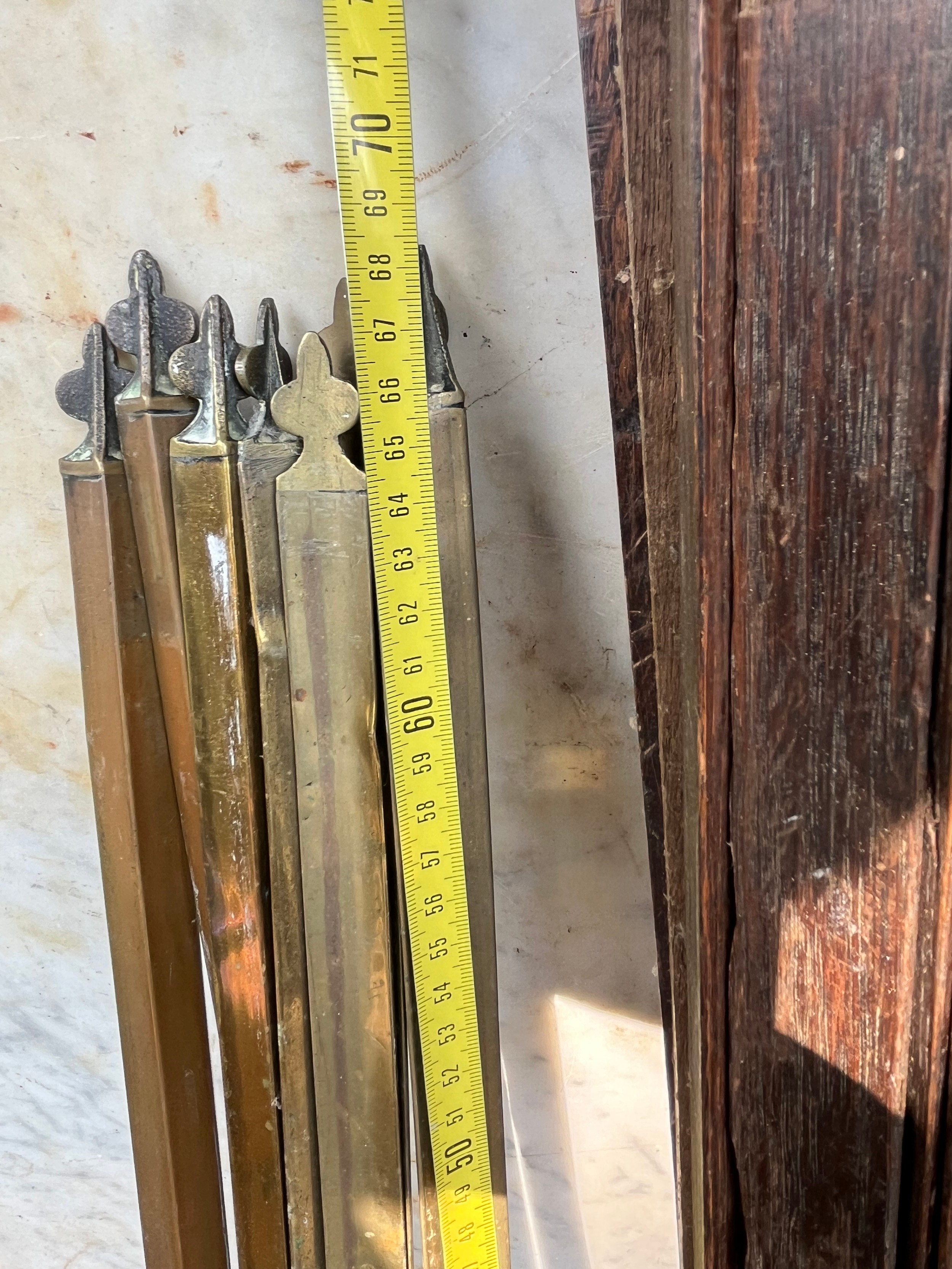 Quantity of wood and brass stair rods with some clamps