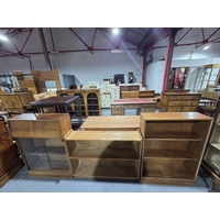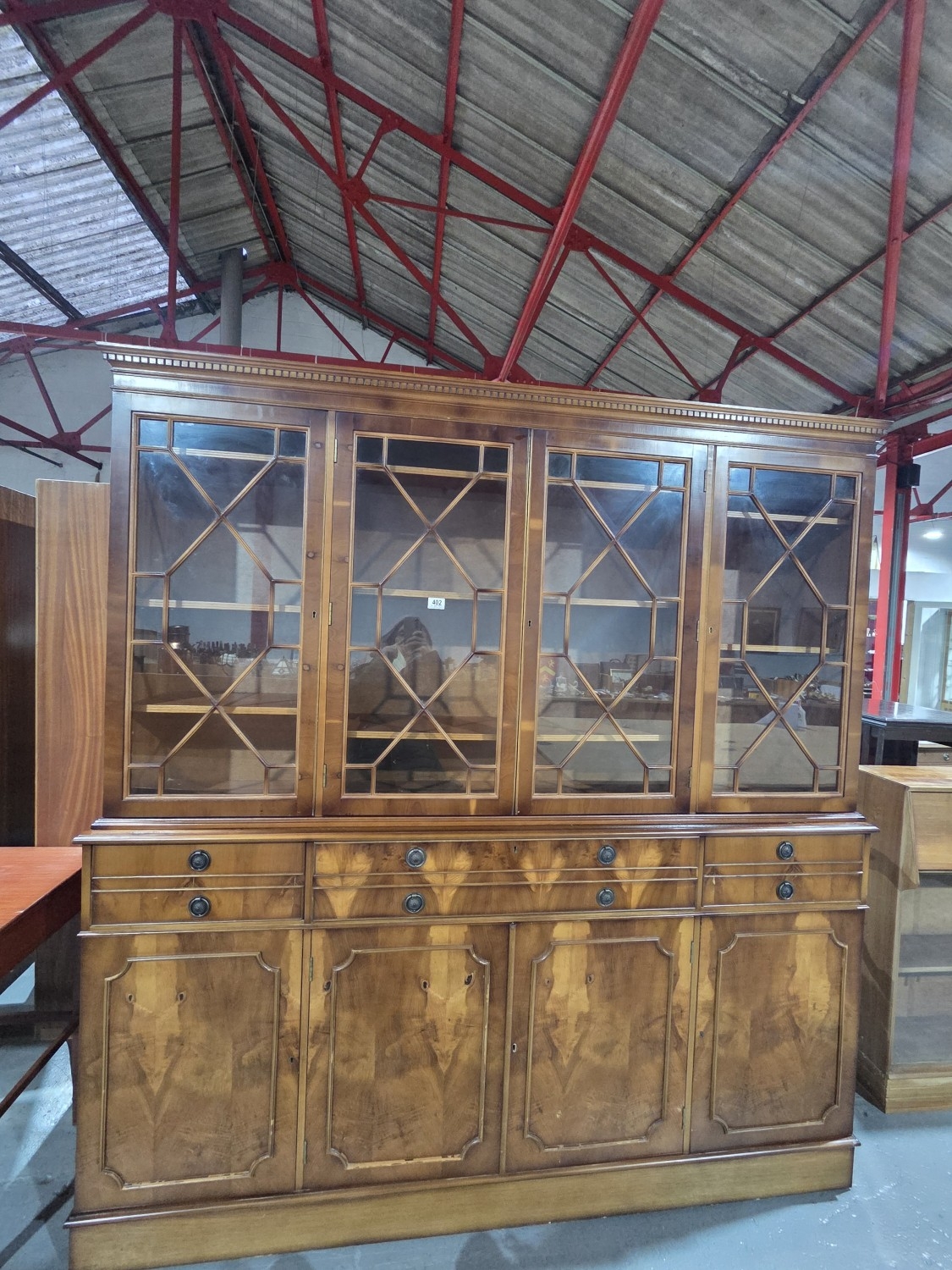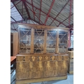 A two sectioned yew wall unit with glazed doors H196cm W186cm D38cm