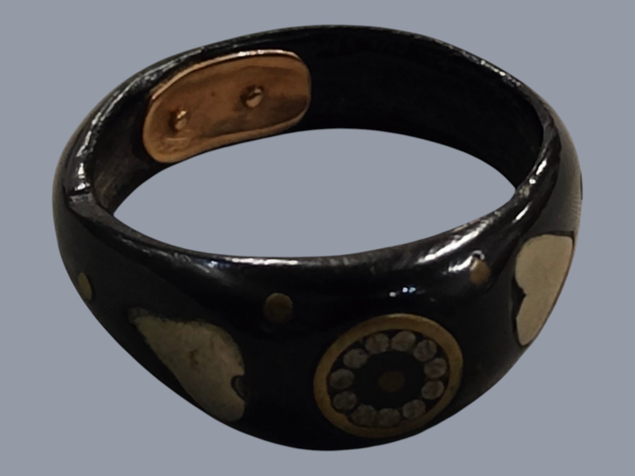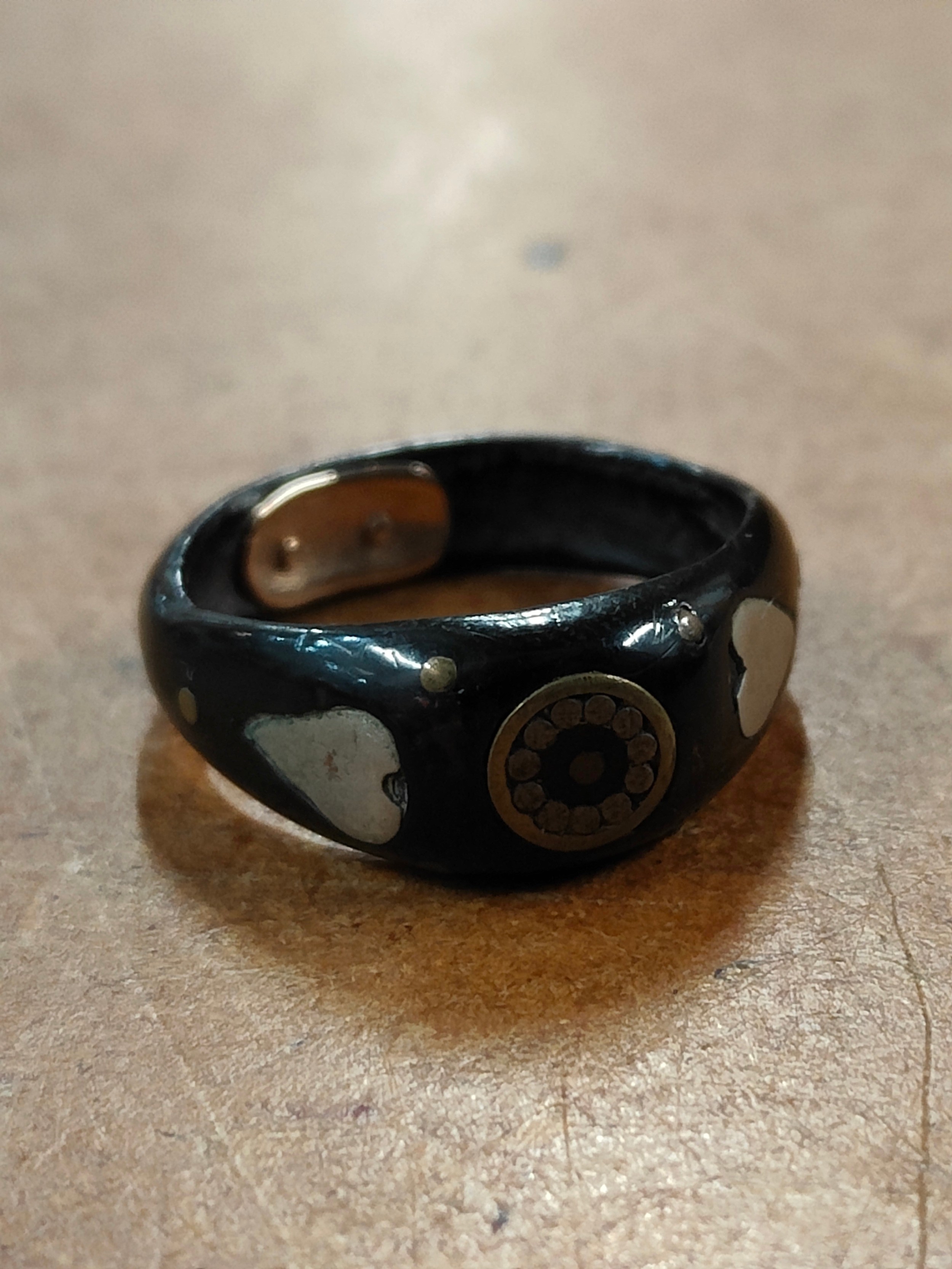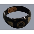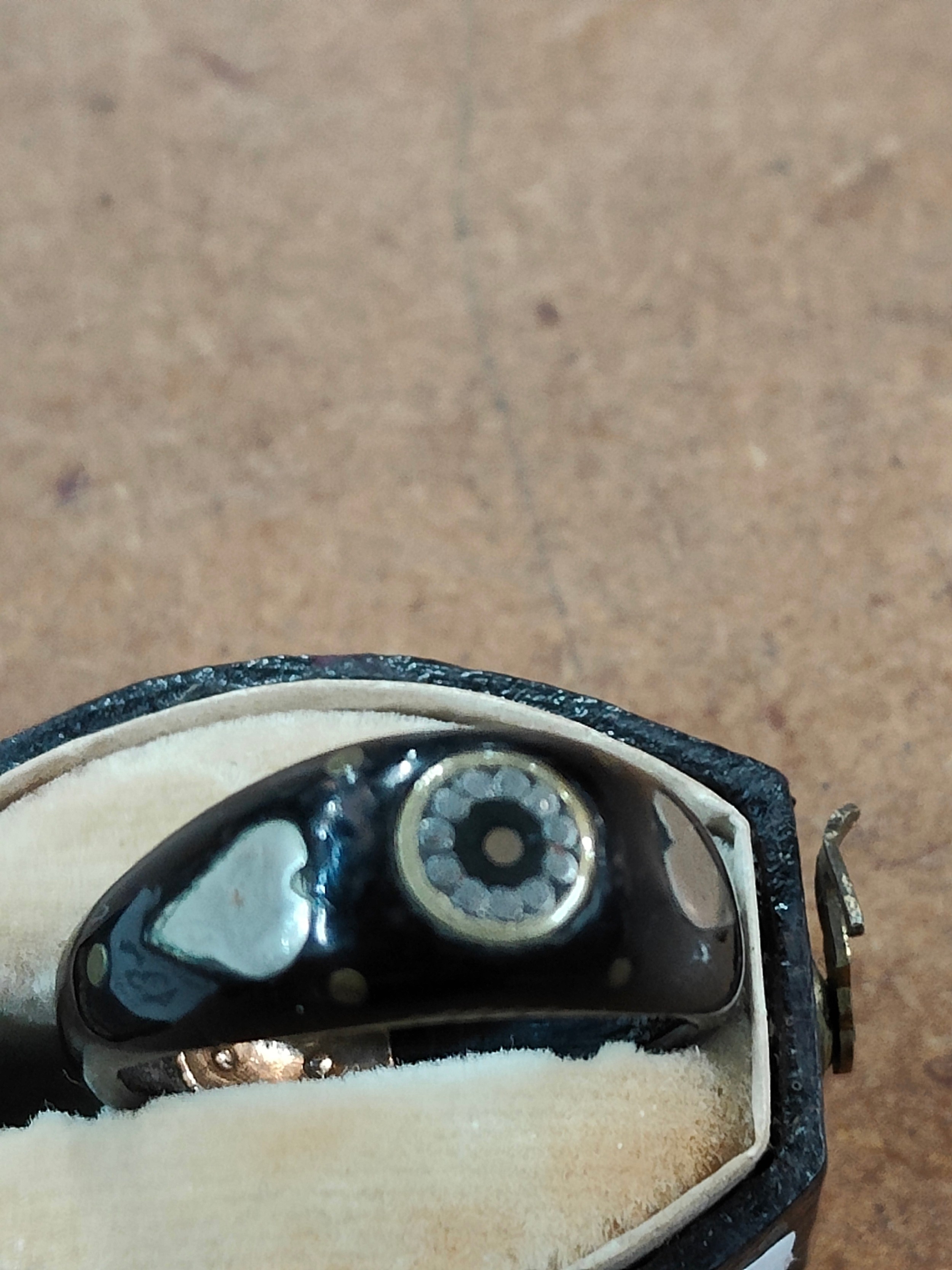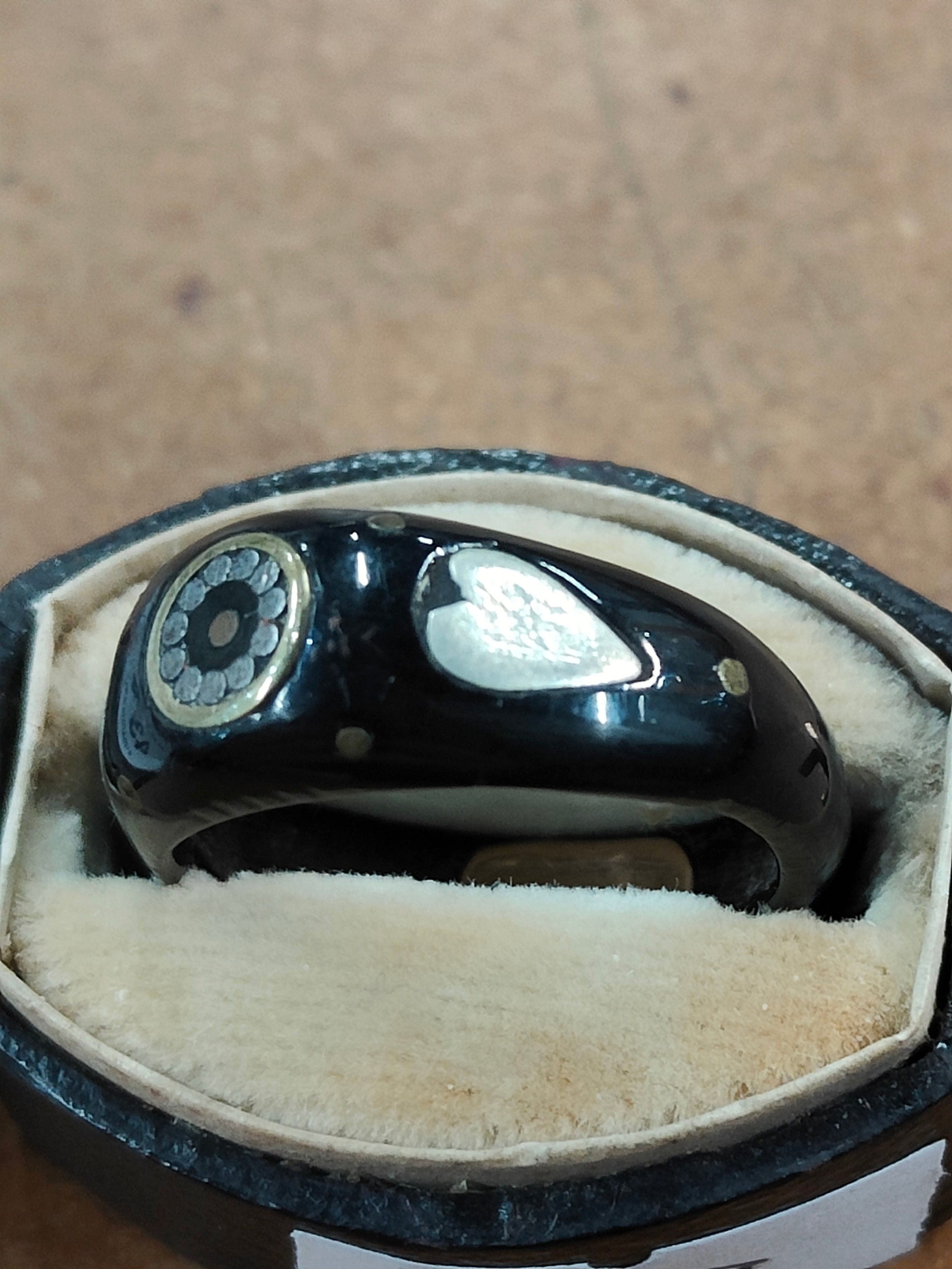 VICTORIAN SILVER AND GOLD ENAMEL MOURNING RING IN PERIOD BOX