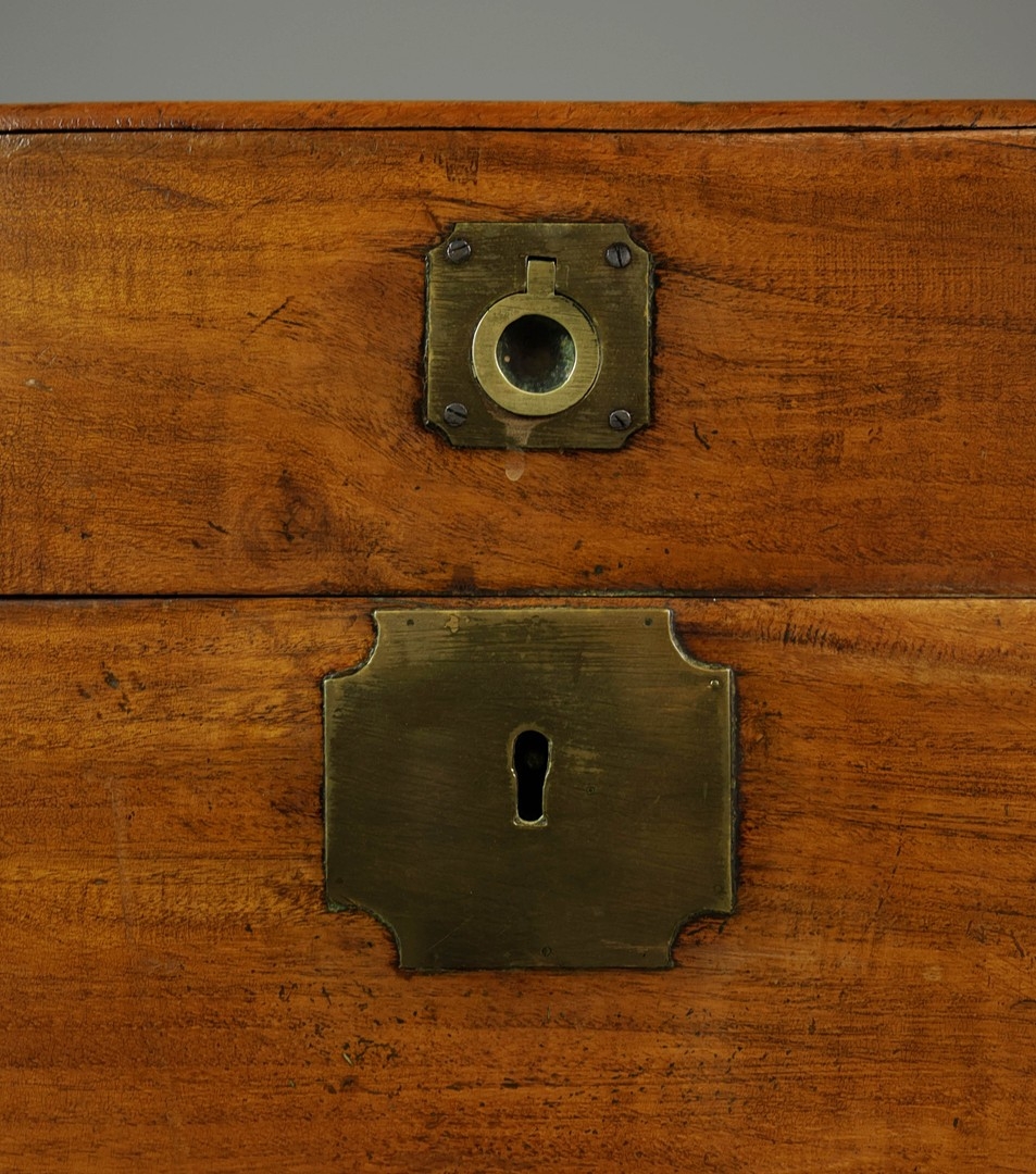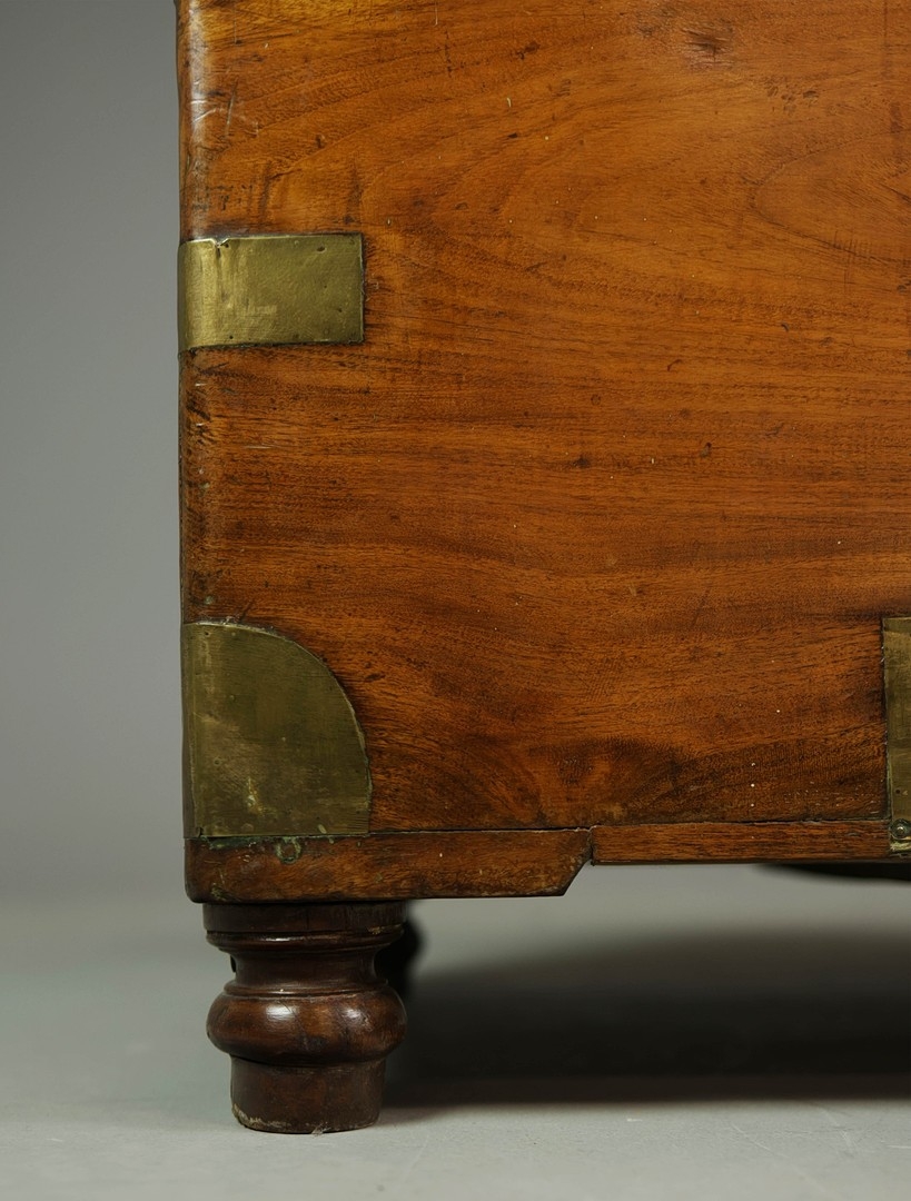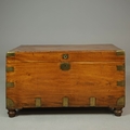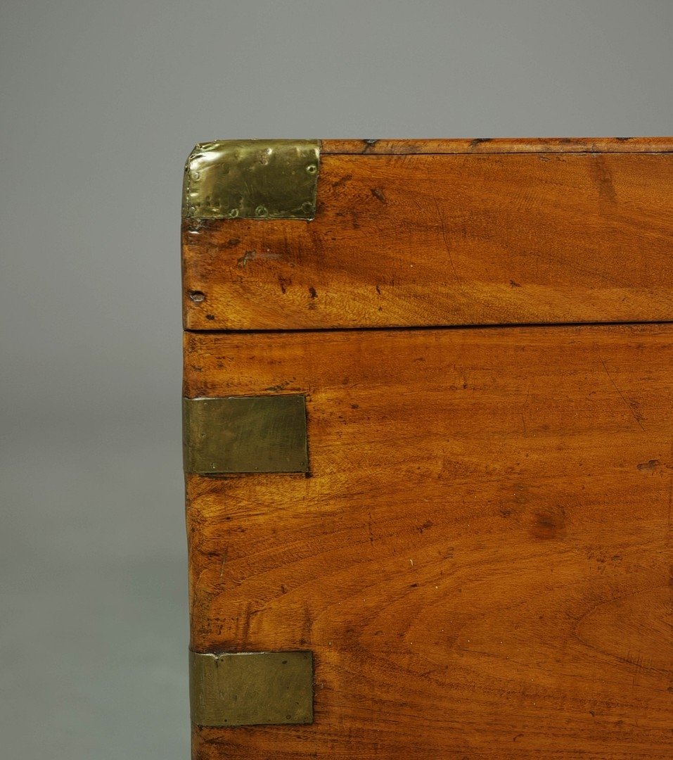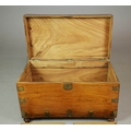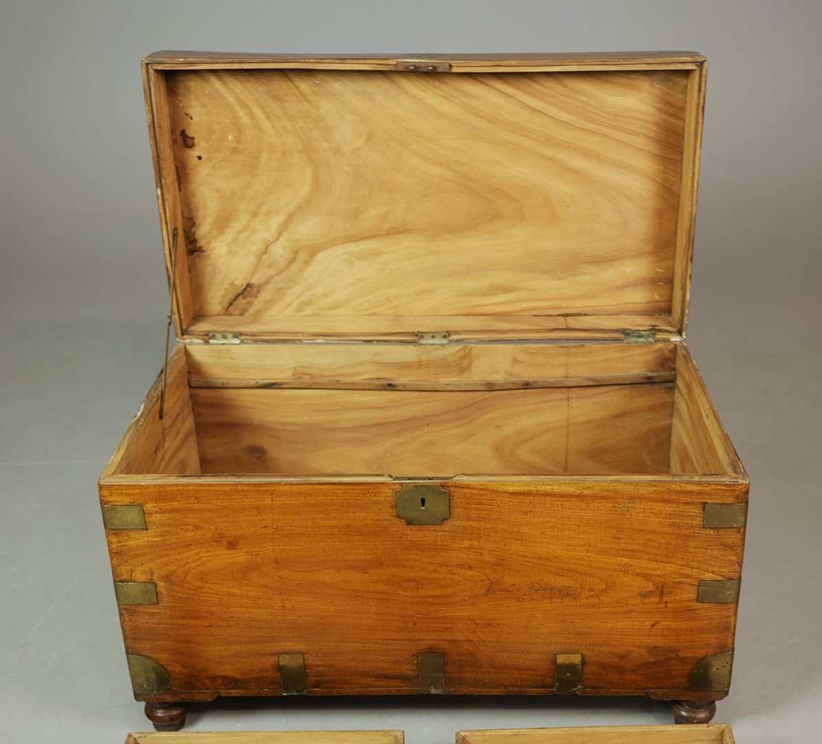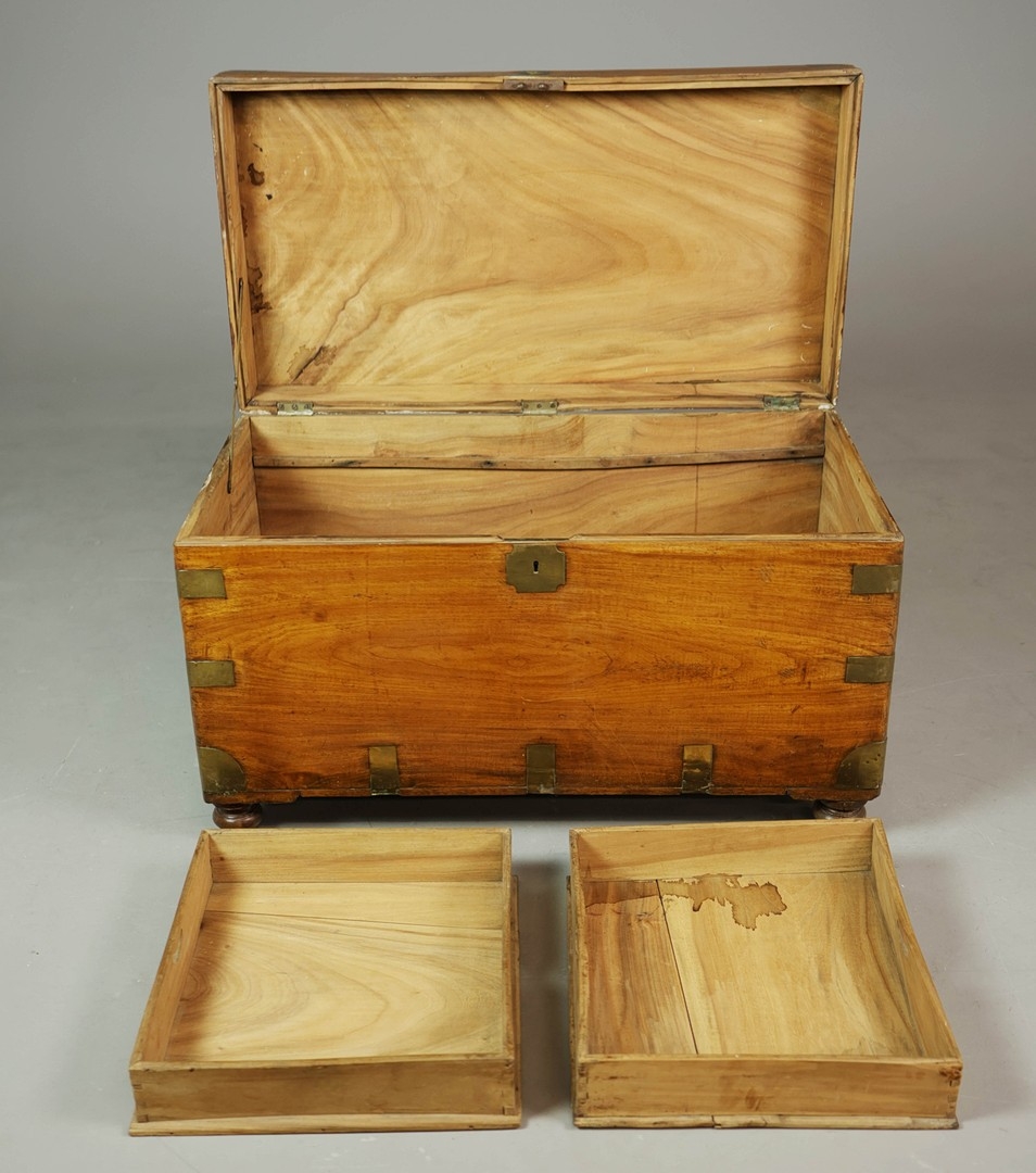 19TH CENTURY CHINESE EXPORT CAMPHORWOOD AND BRASS BOUND TRUNK. with a pair of interior trays, 58cm H x 96cm W x 52cm D.