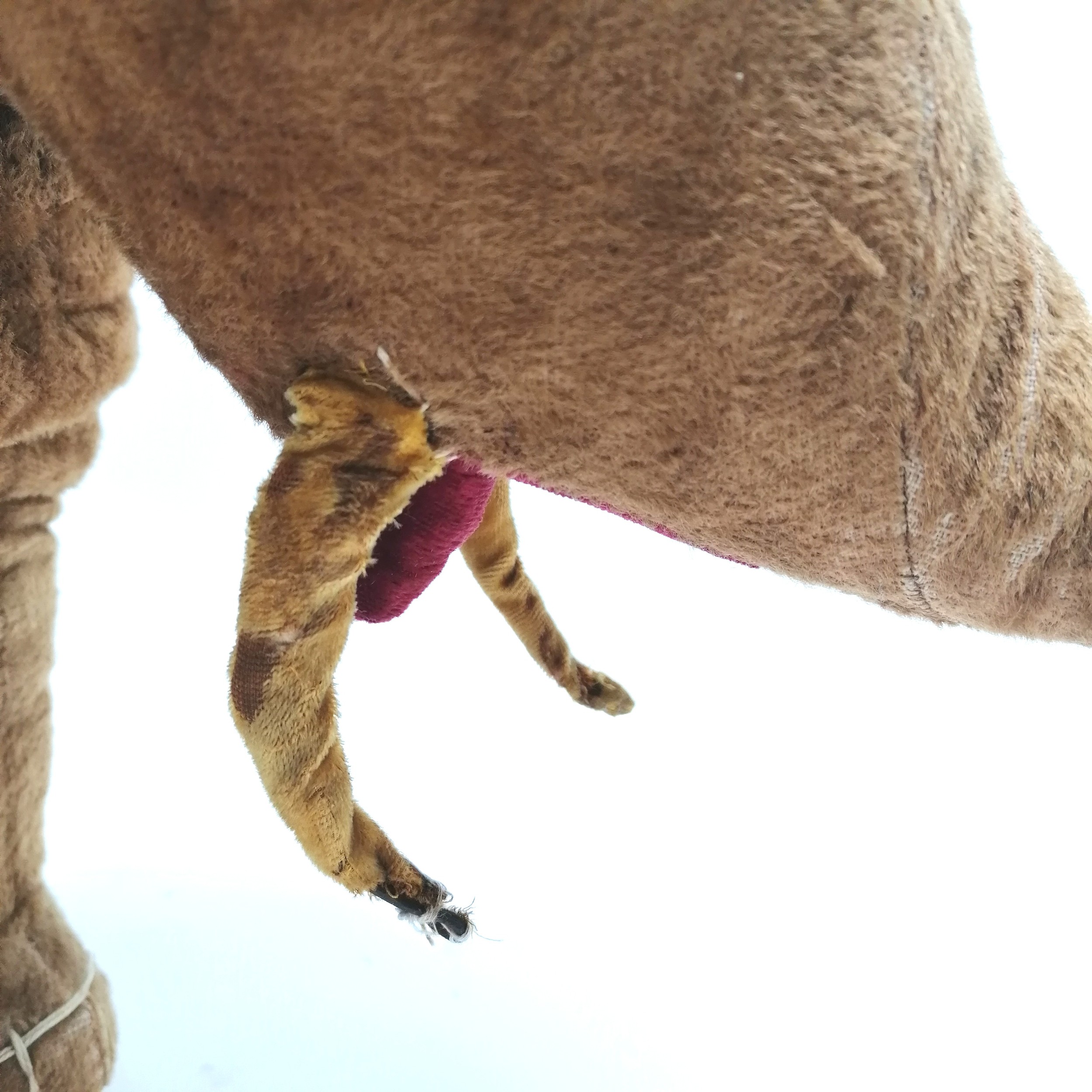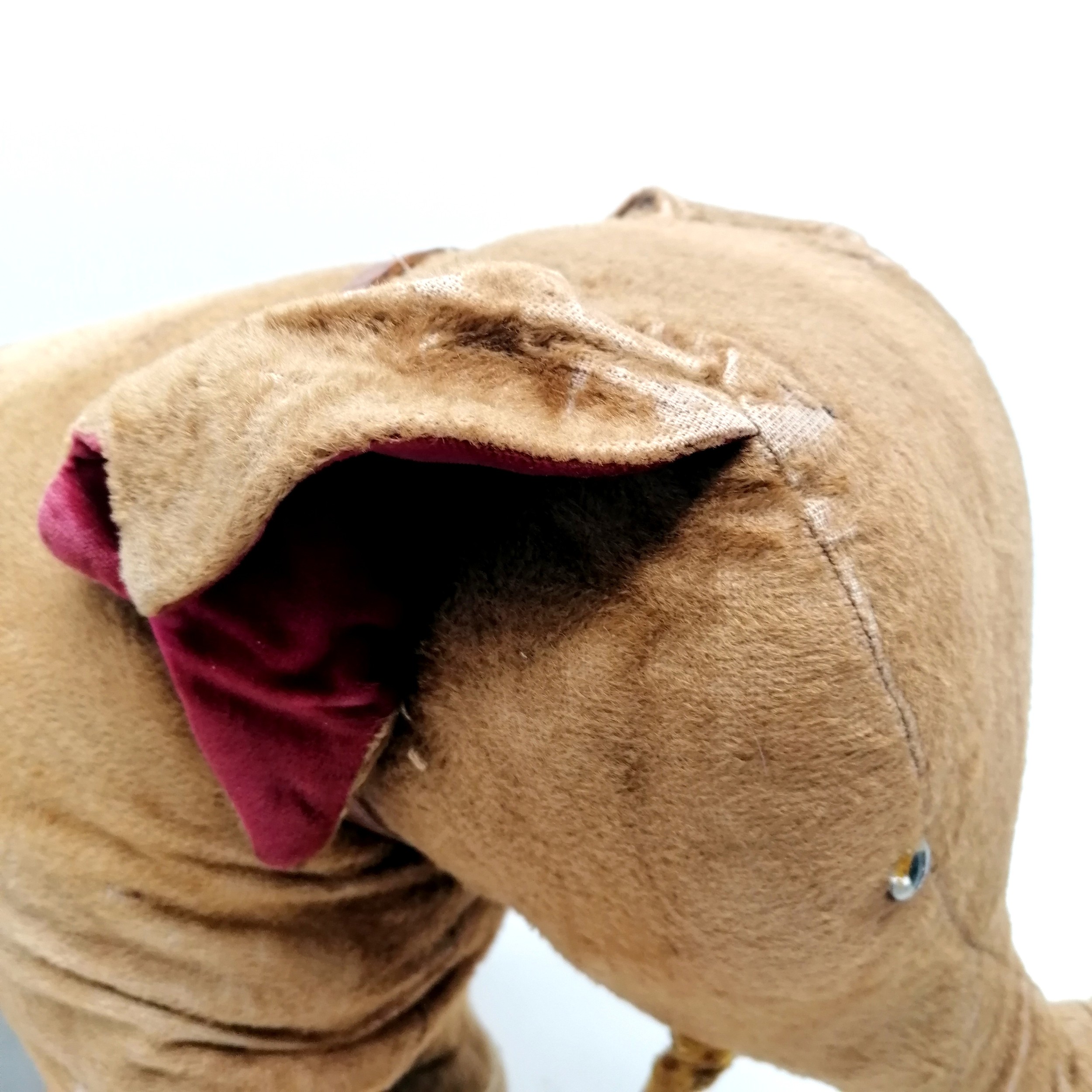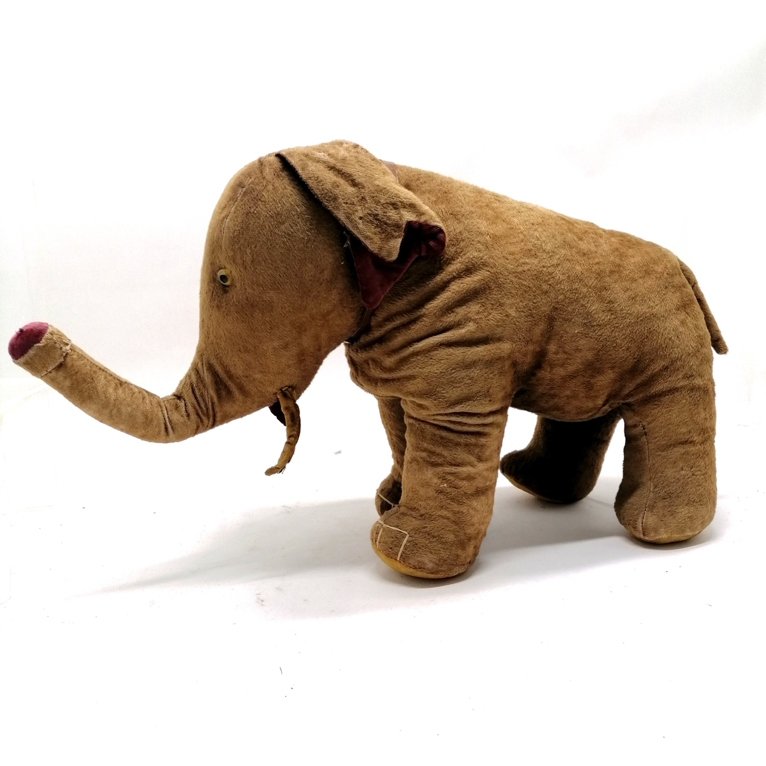 Vintage plush elephant with red ears, button eyes and stitched feet 73cm long x 39cm high - has some signs of wear
