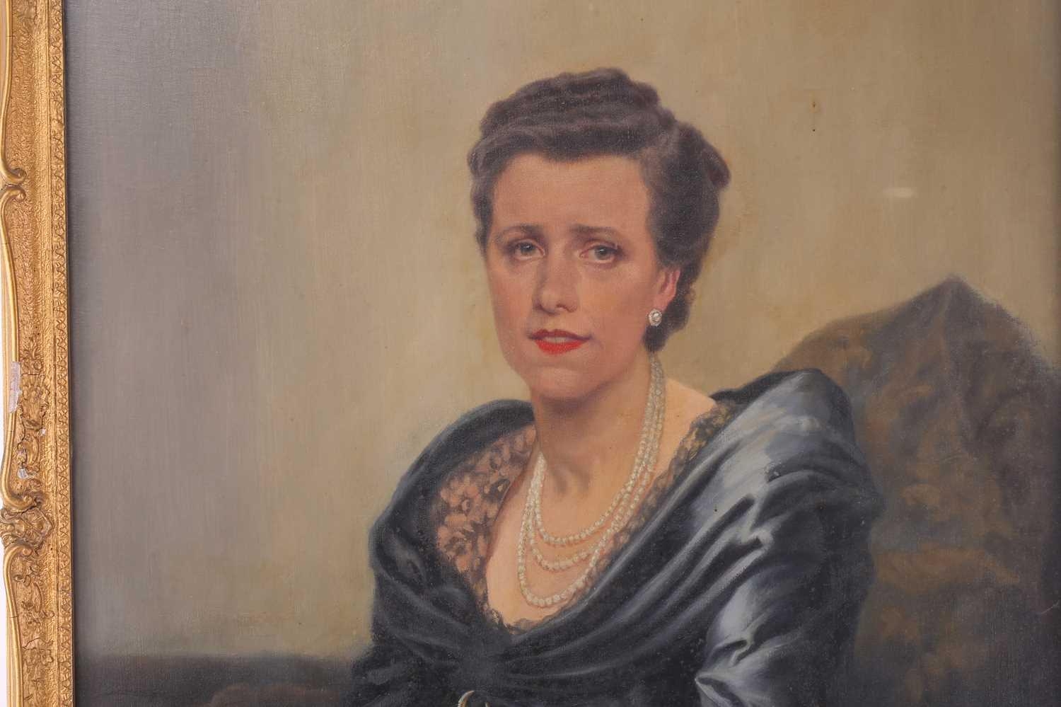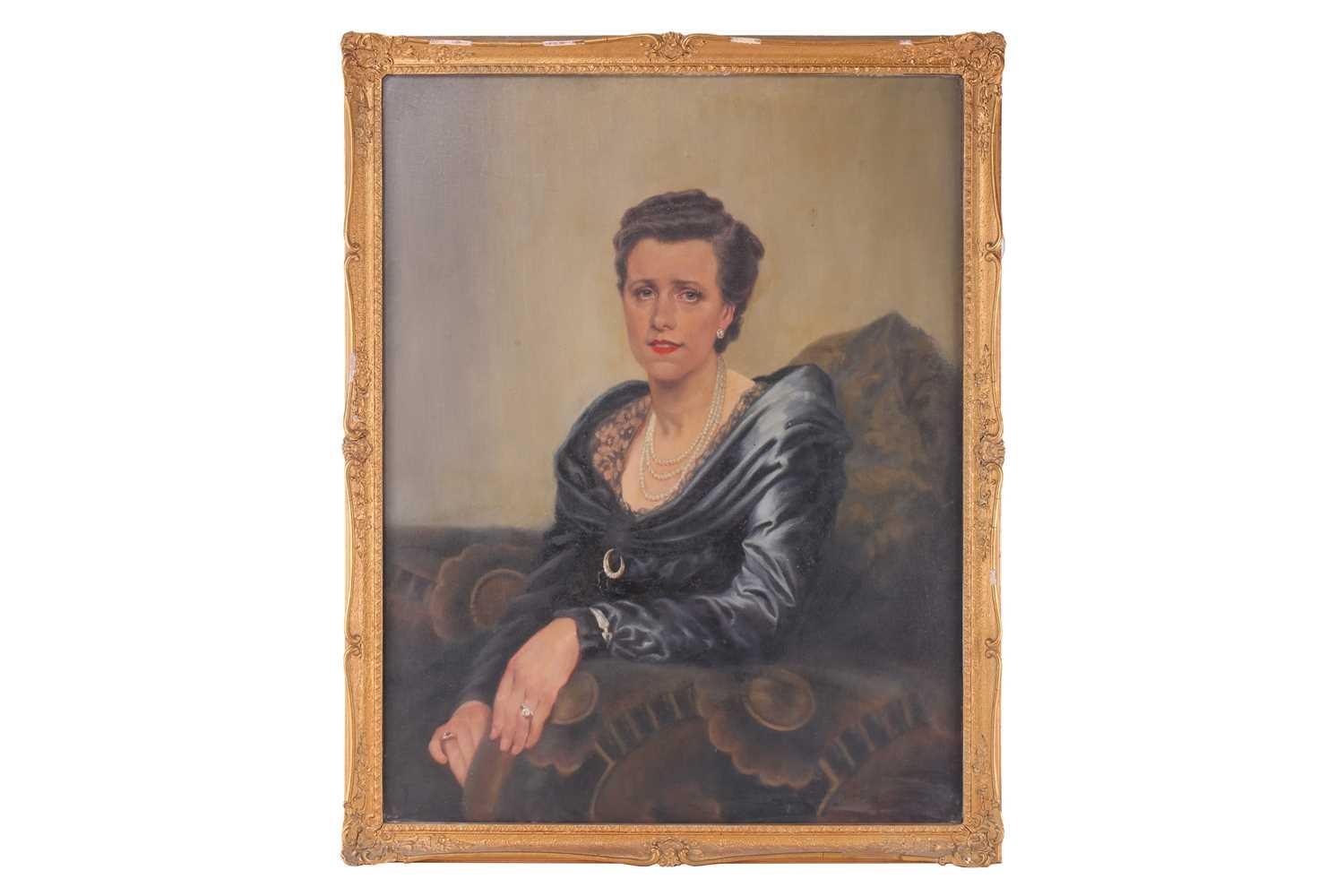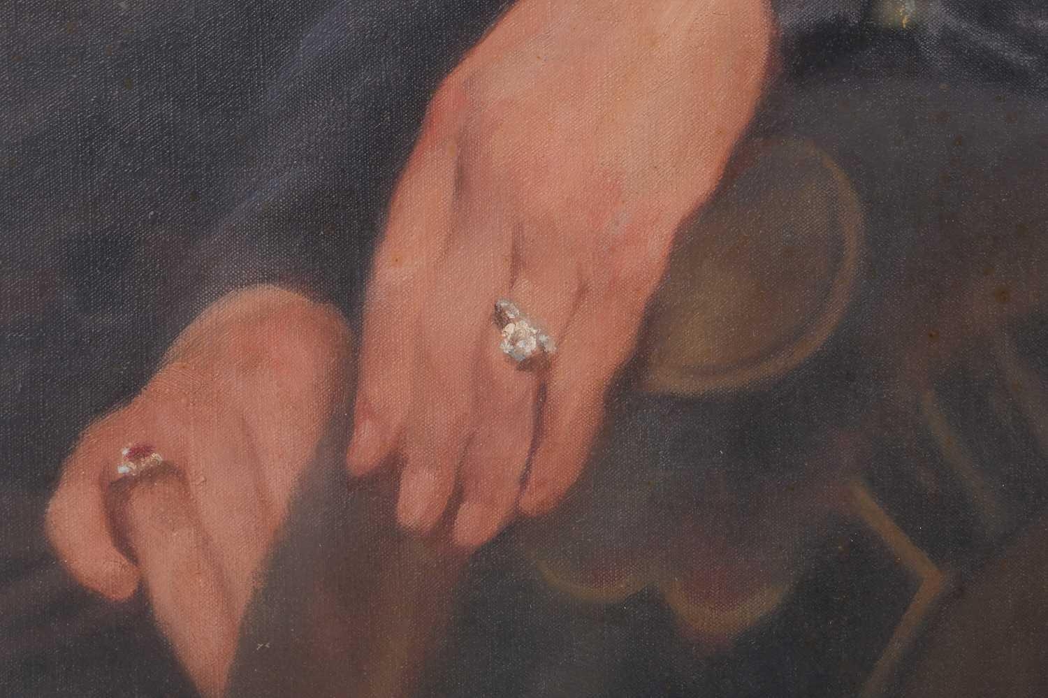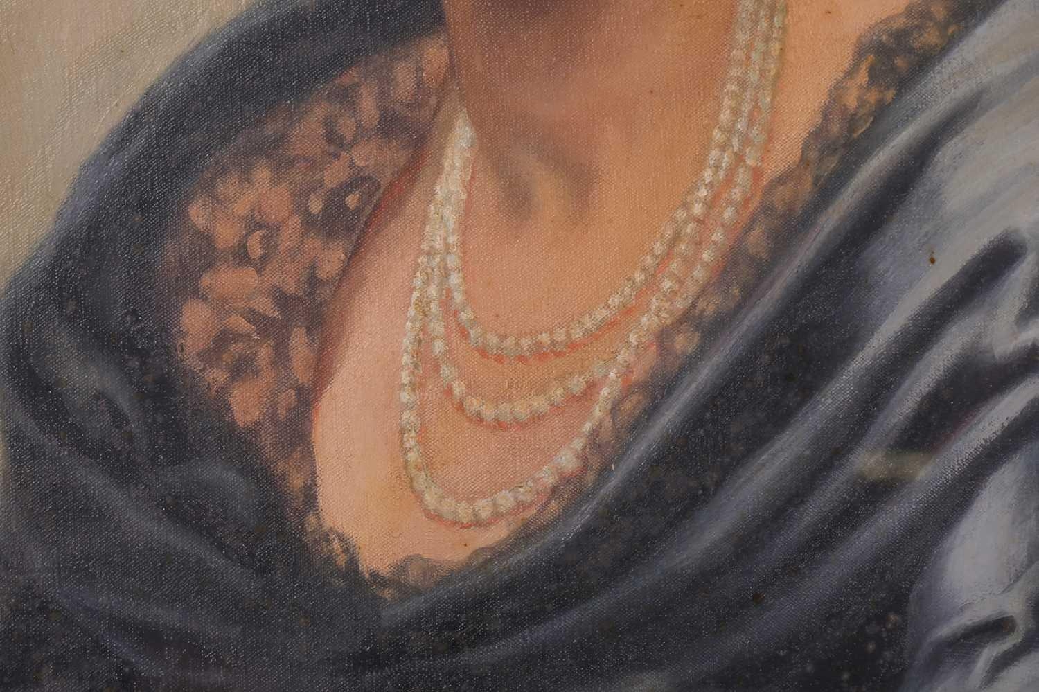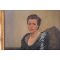 Early 20th-century British school, a half-length portrait of a lady in a blue dress, oil on canvas, 90 cm x 70 cm, glazed in a gilt frame 101 x 80 cm