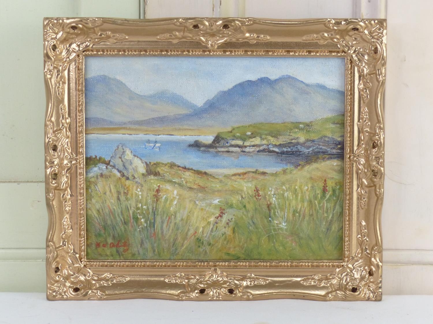 A small framed oil painting, 'Morning Lough, Ballinhad, Connemara', signed K O'Doherty, 31cm x 26cm.