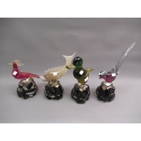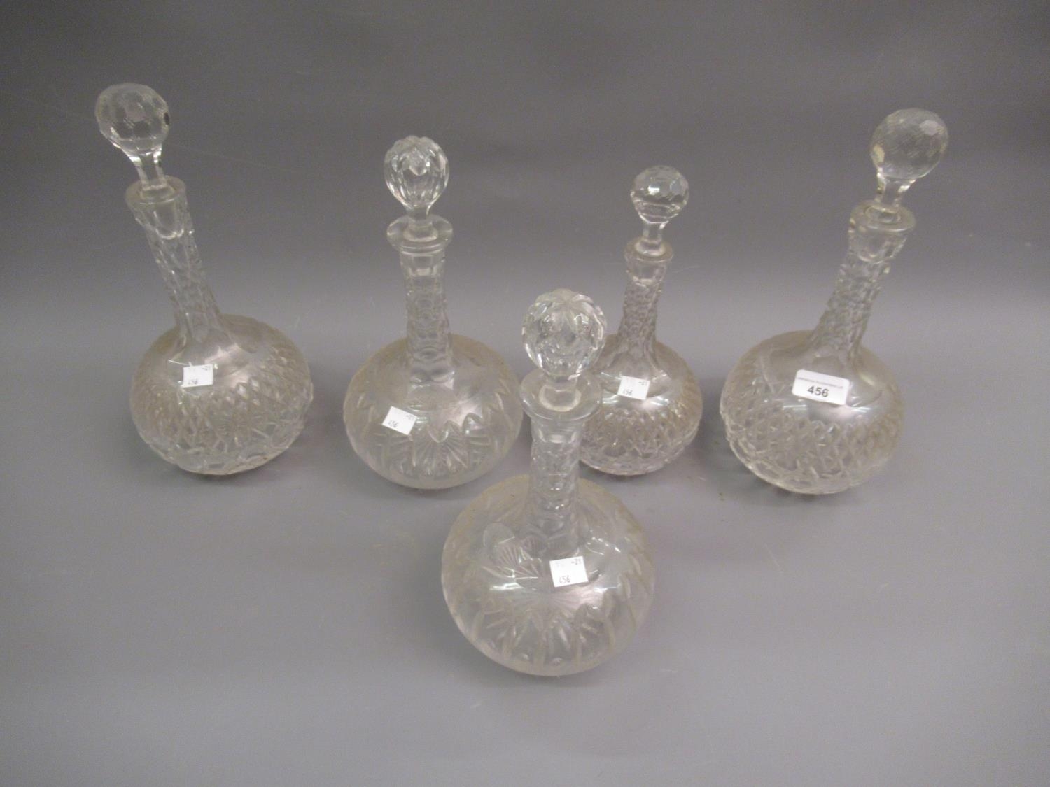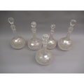 Five various cut glass sherry decanters with stoppers