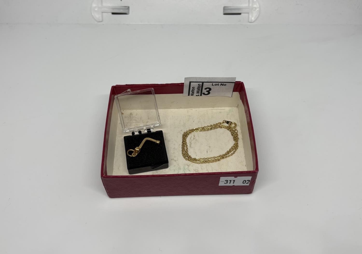 9ct Gold barge windlass pendant with a chain, 1.2g of gold - Only 10% buyer's premium