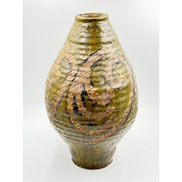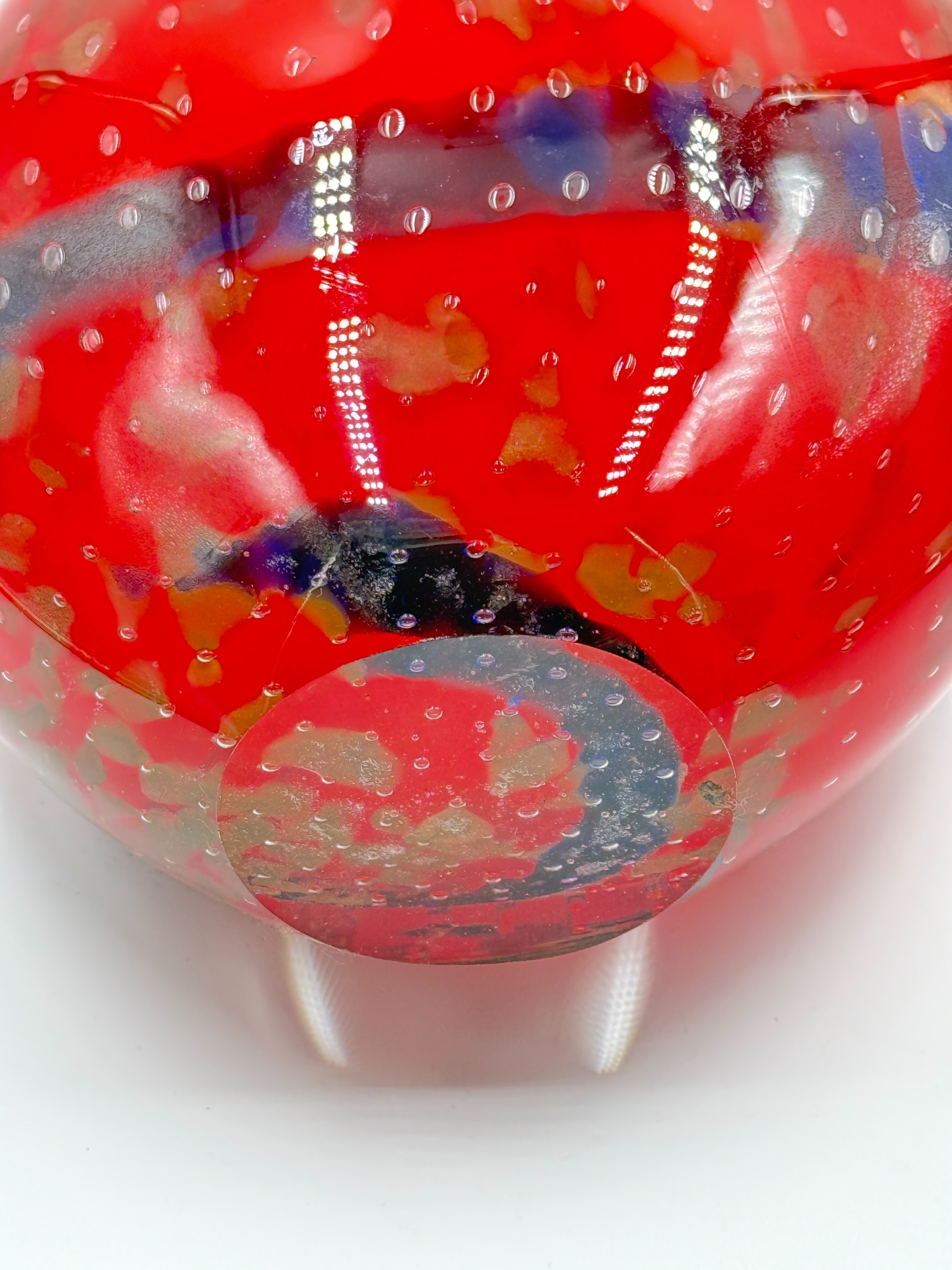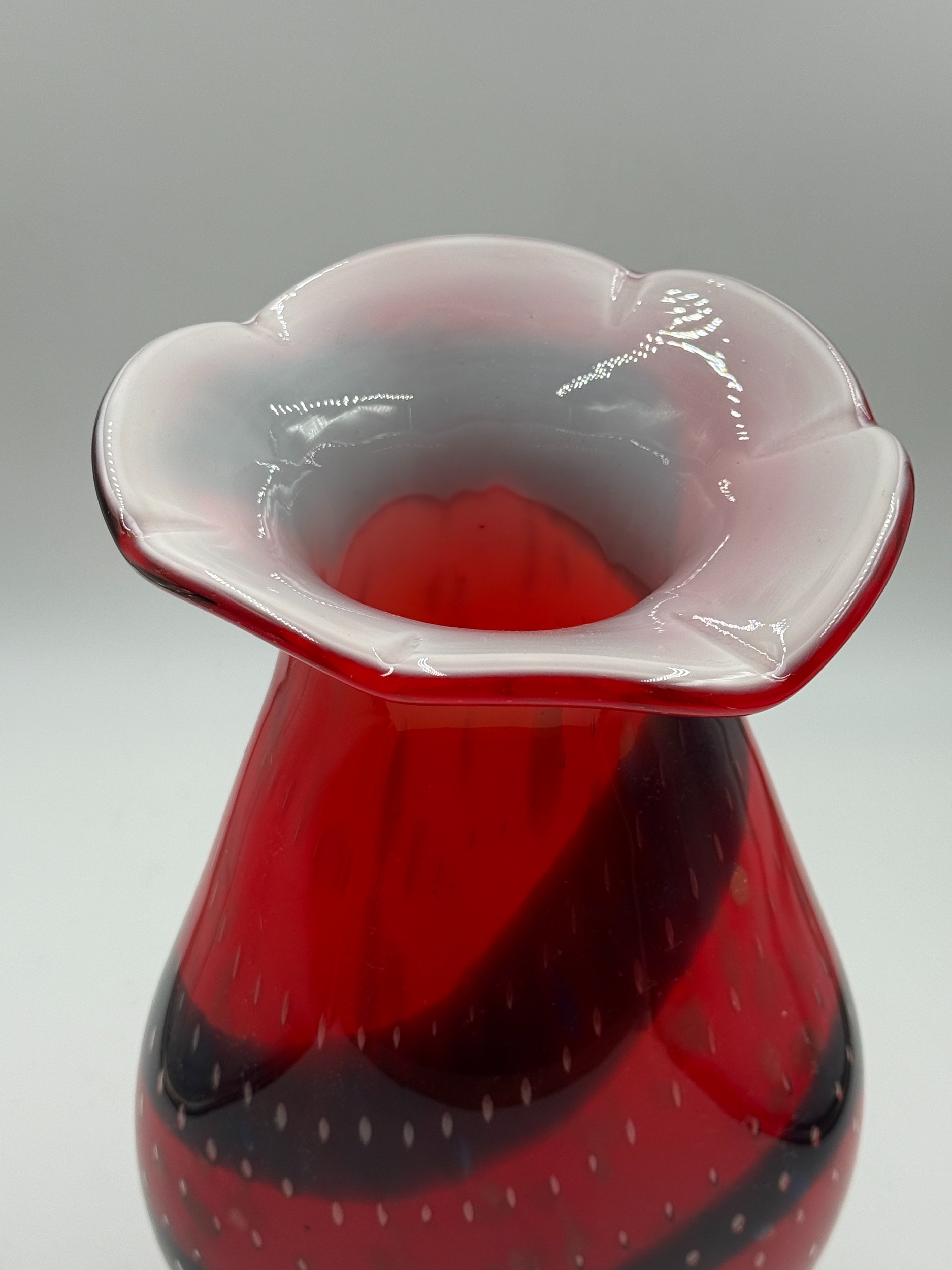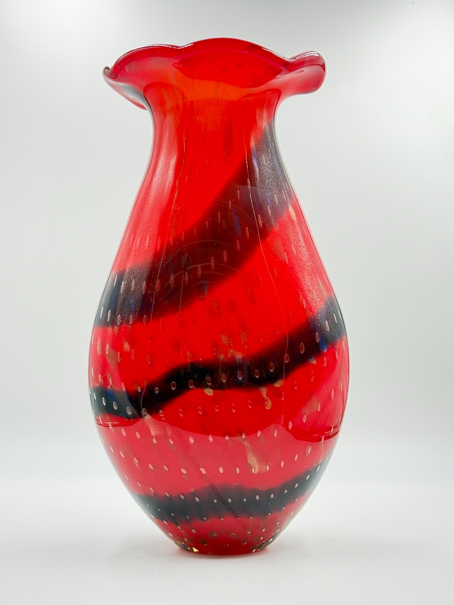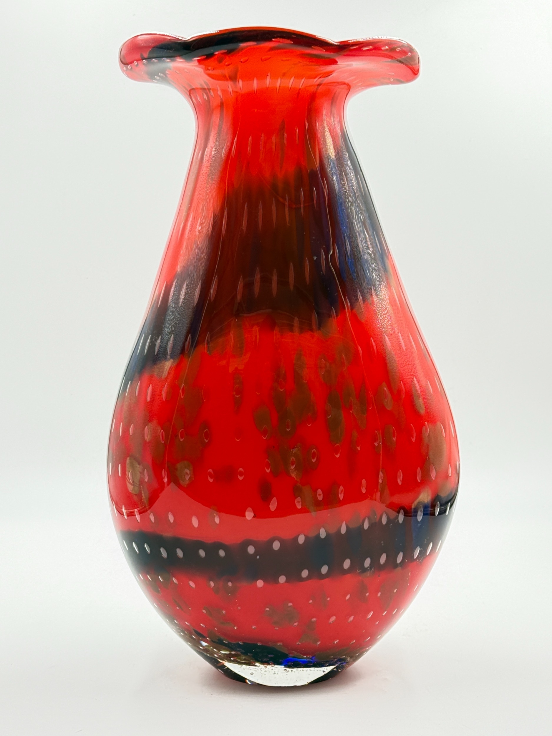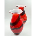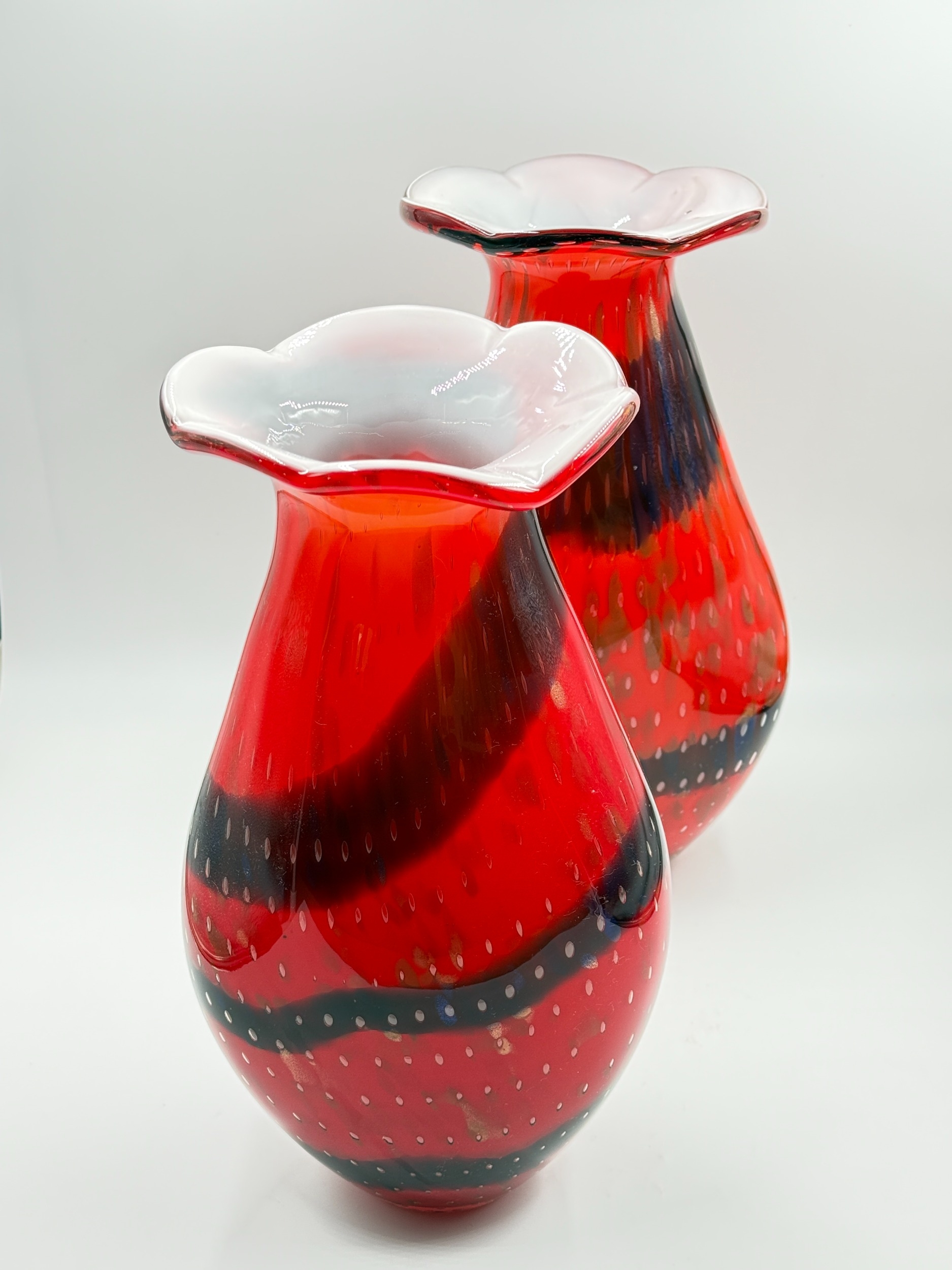 A pair of Murano style red and blue art glass vases with bubbled decoration - approx. 36cm high