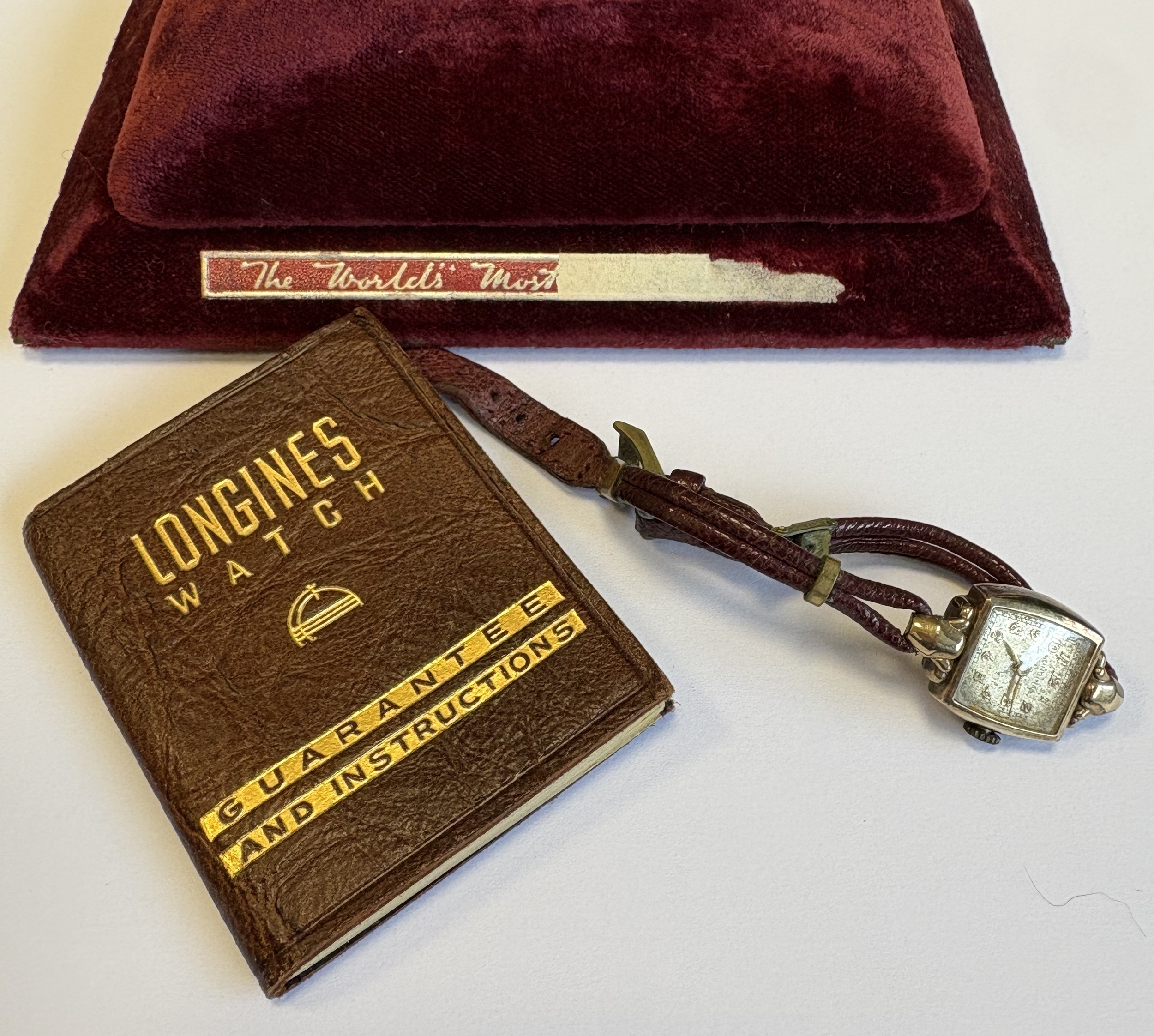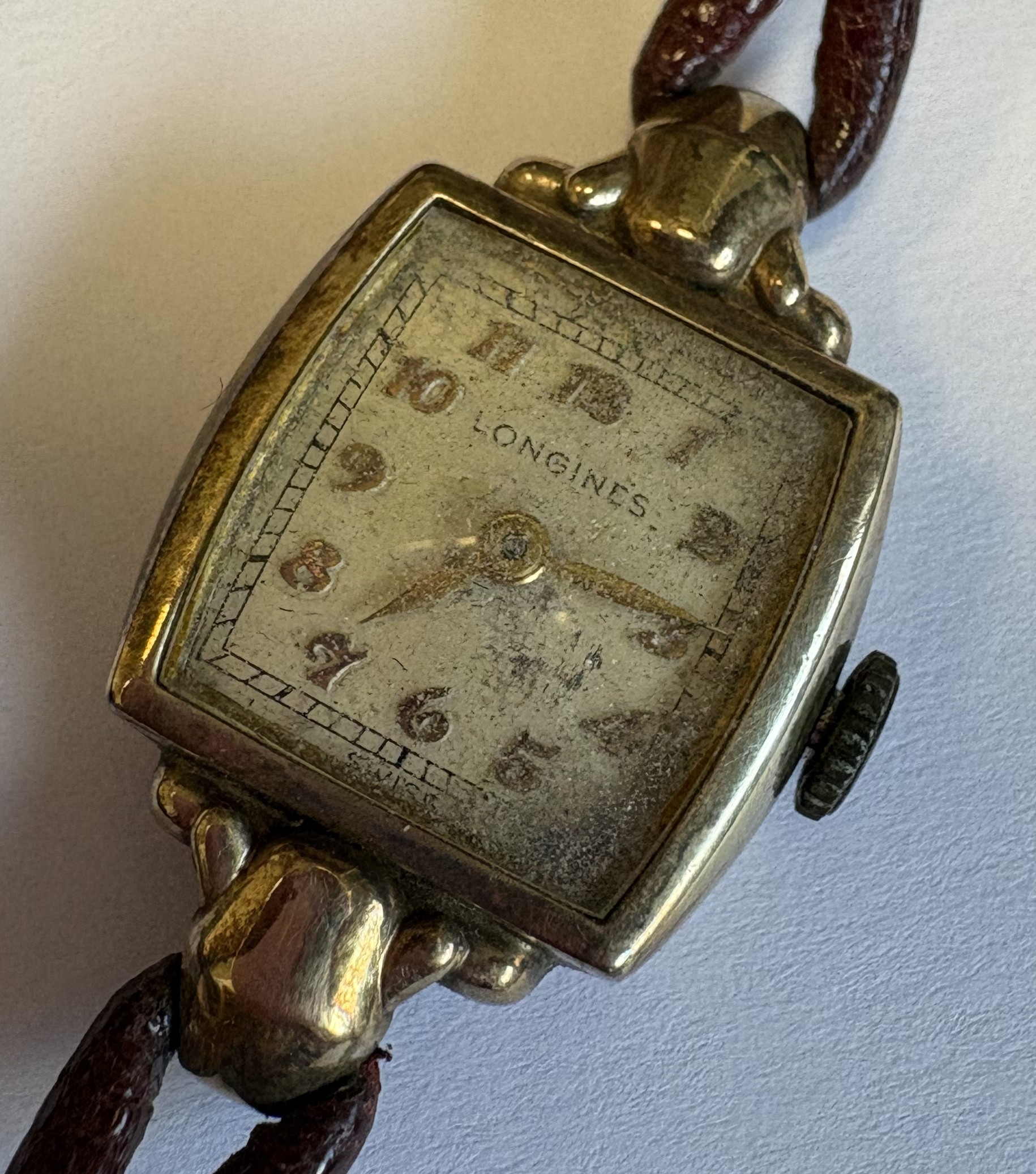 A small gold Longines wristwatch in box. Est. £40 - £60.