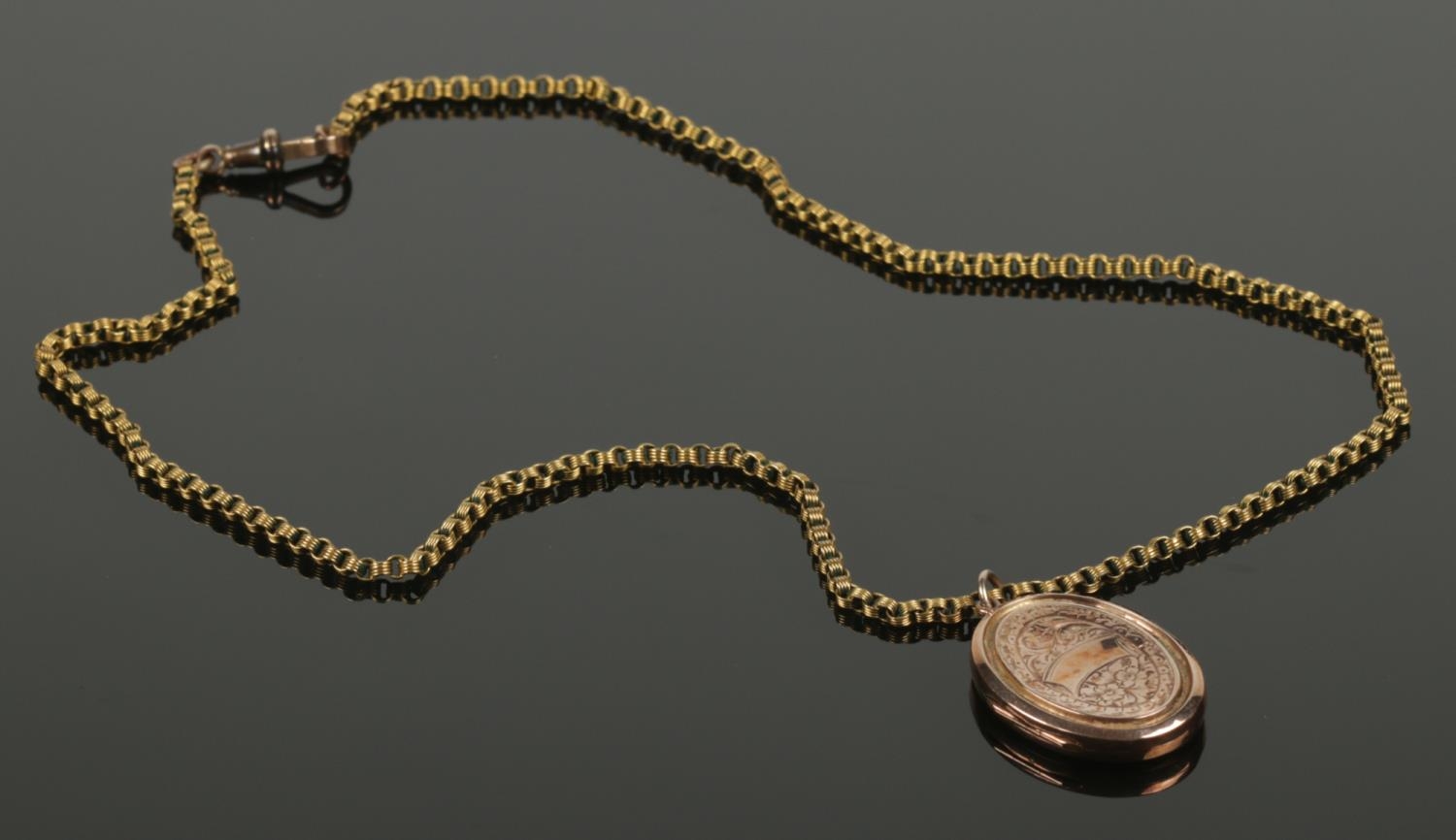 A 9ct gold front and back locket on rolo link chain. Chain stamped gold. (gross weight 12.5g).