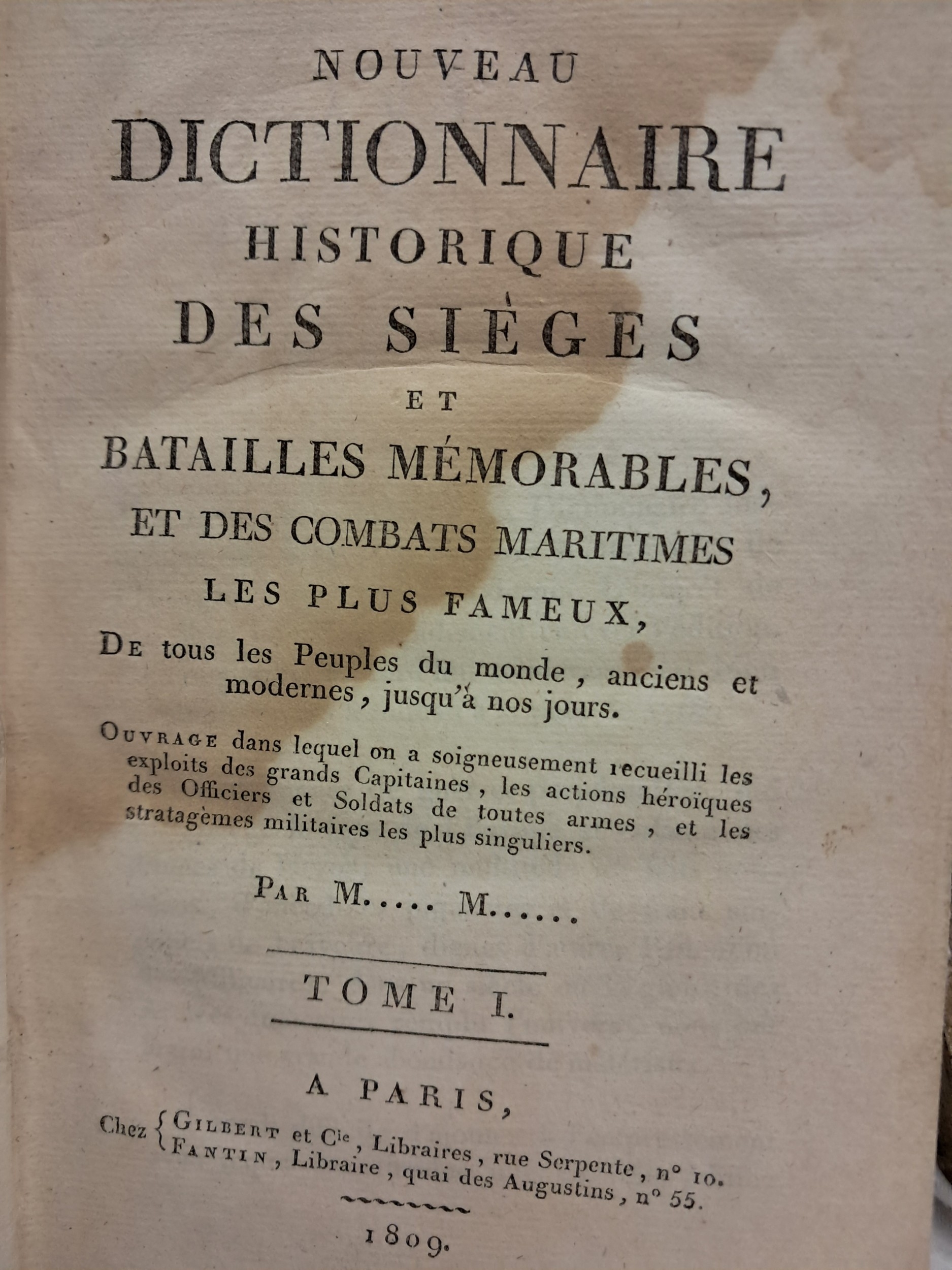 Nouveau Dictionnaire "Historique des Sieges" (6 Volumes) 1809 (6 Volumes) Published 1821 Nouveau Dictionnaire "Historique des Sieges" (6 Volumes) 1809
