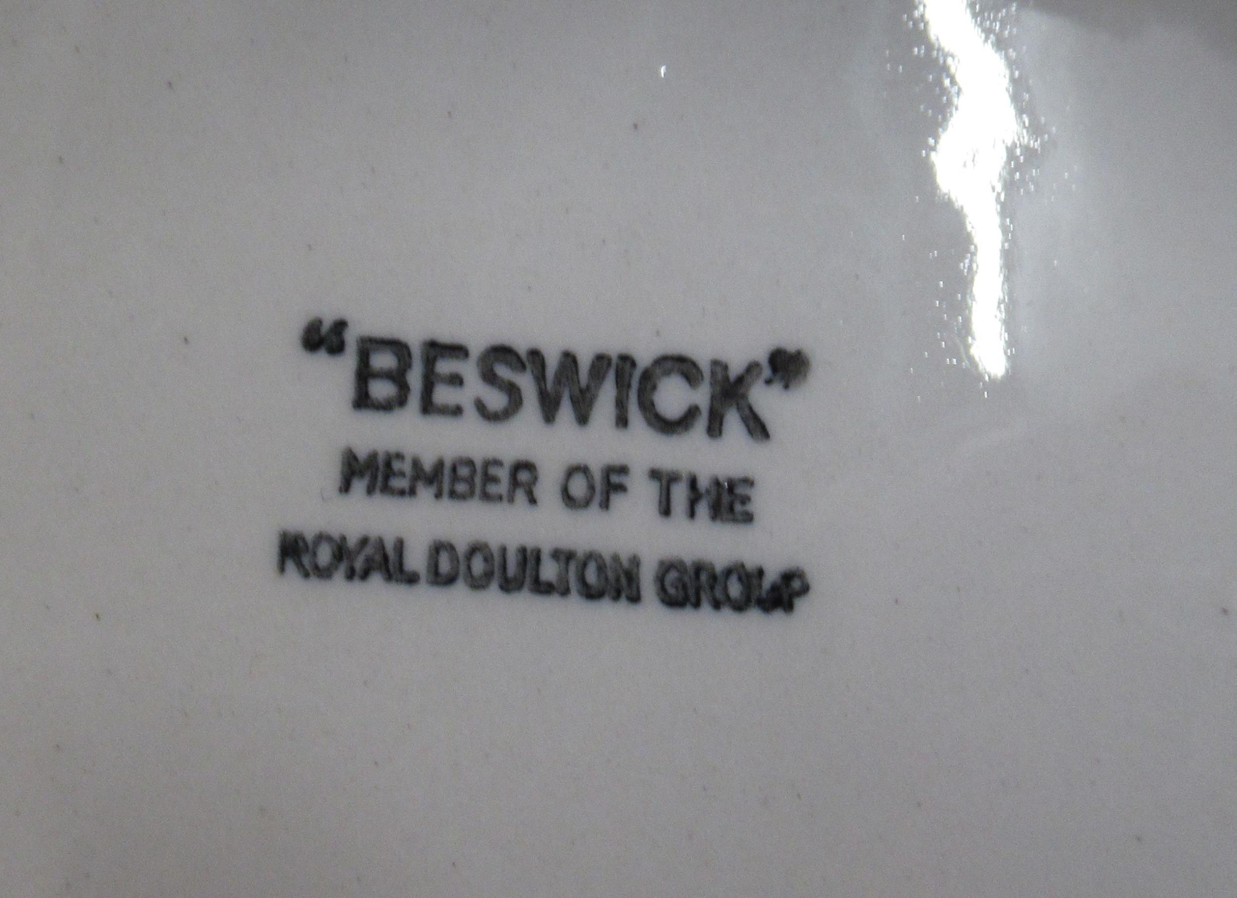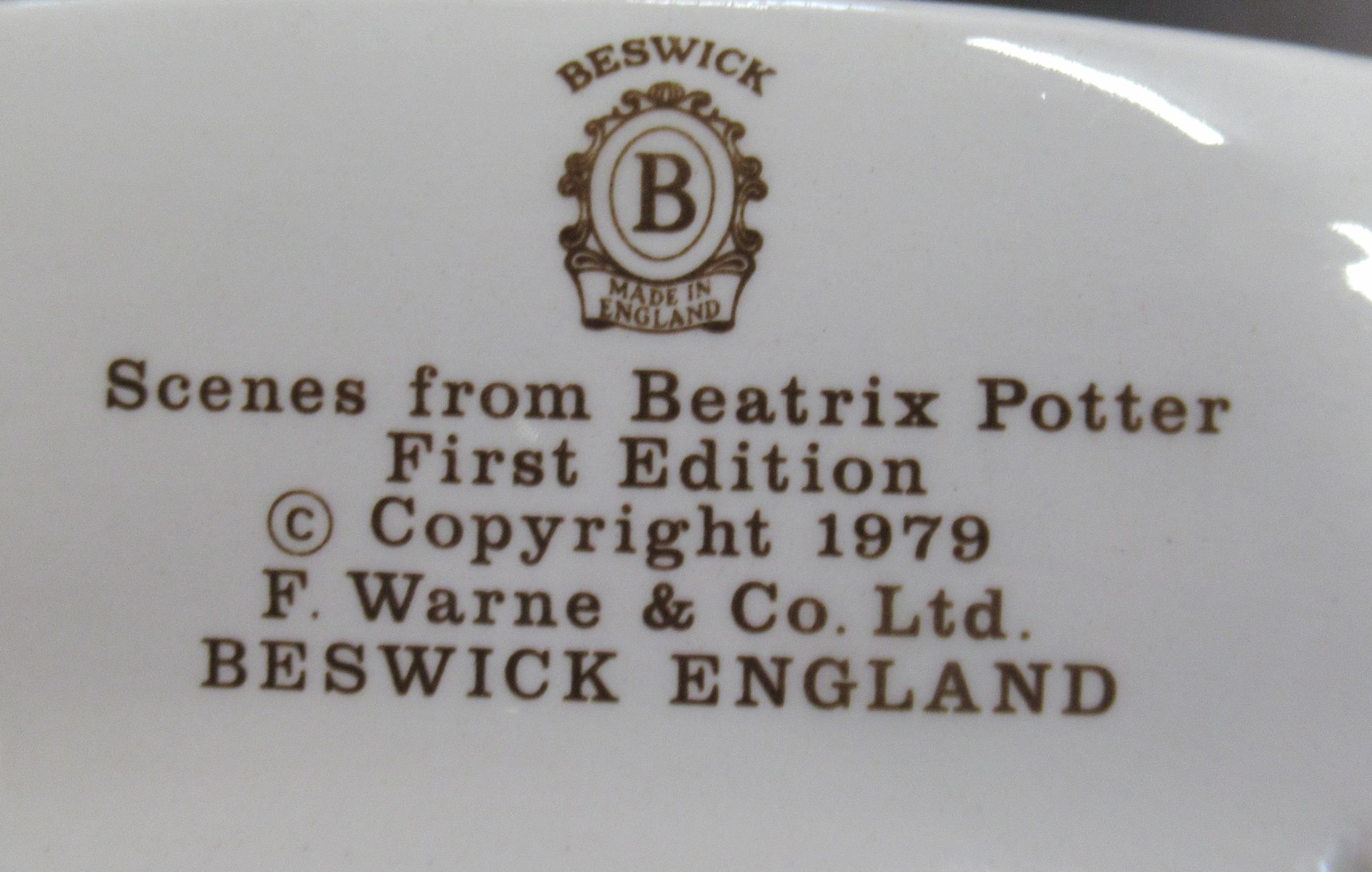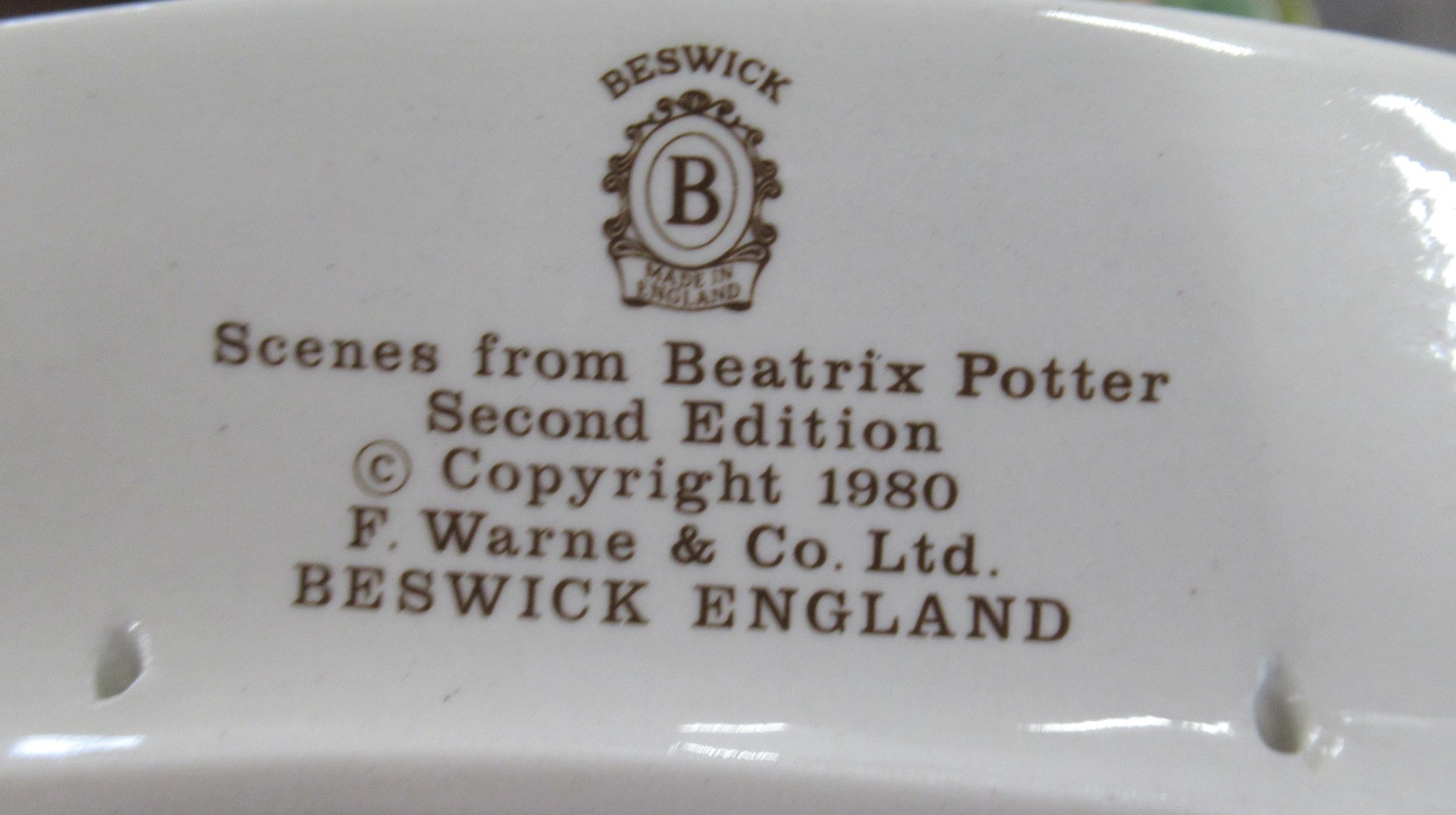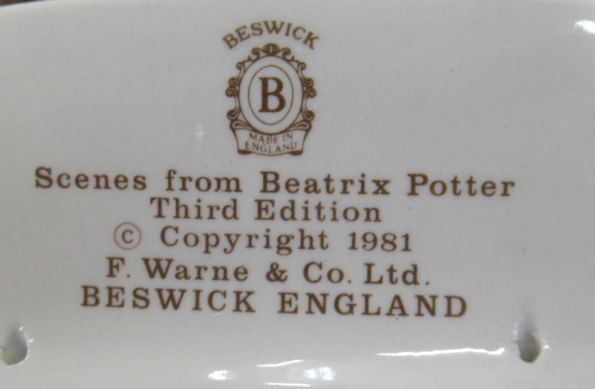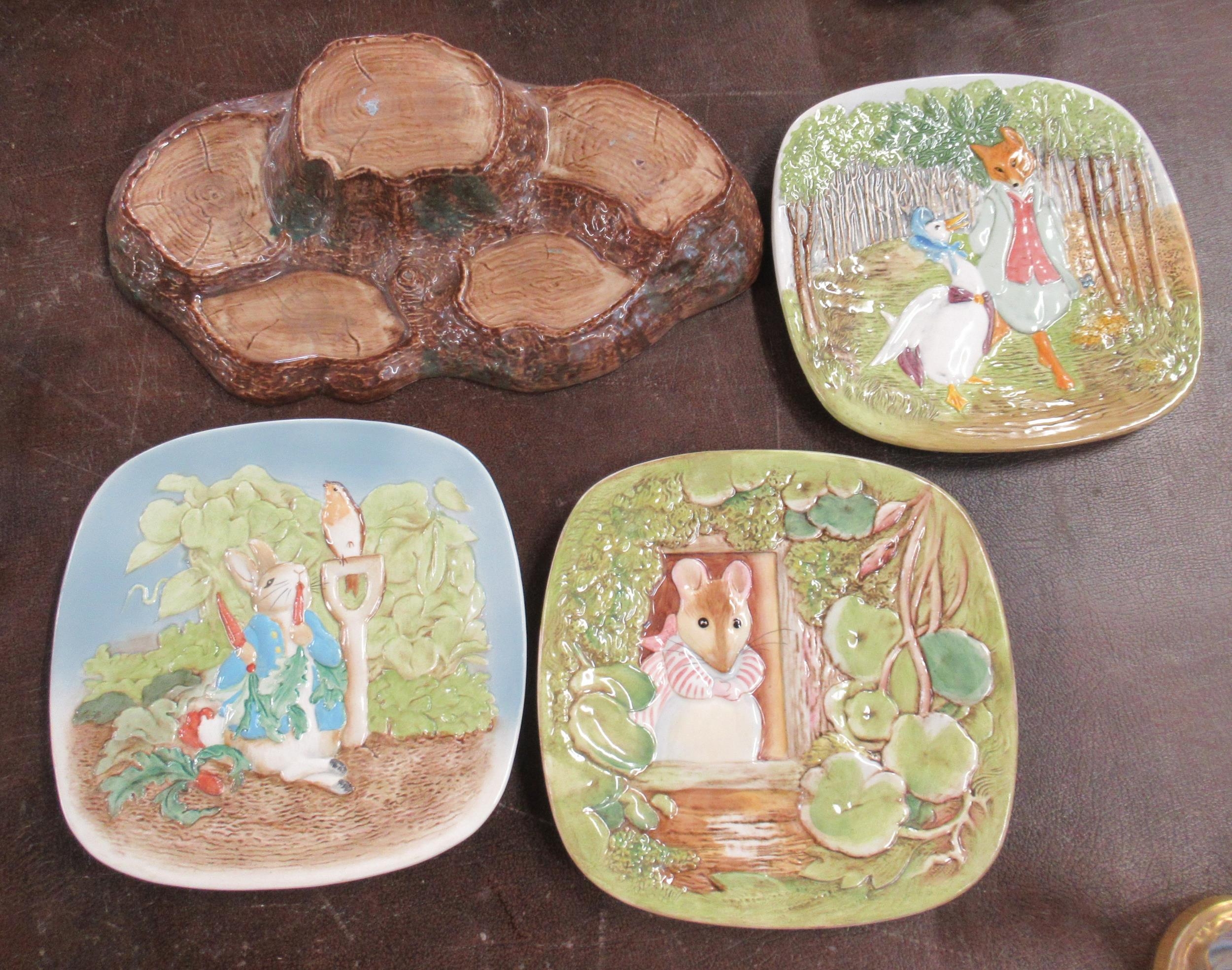 A Beswick stand, for figures, together with three Beswick Beatrice Potter scene plates