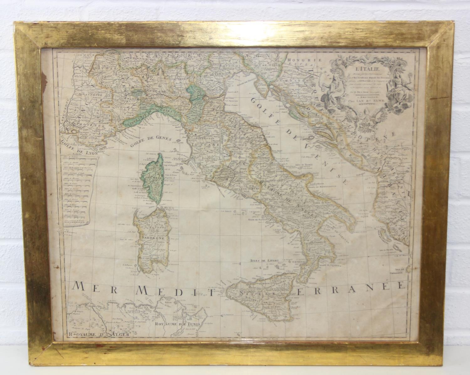 Jan Barend Elwe, L`Italie Dressee sur les Observations de Mrs. de l`Academie Royale des Sciences, an antique hand coloured map depicting Italy and other parts of the Mediterranean, dated 1792 in plate, in gilt frame, 66cm x 54cm