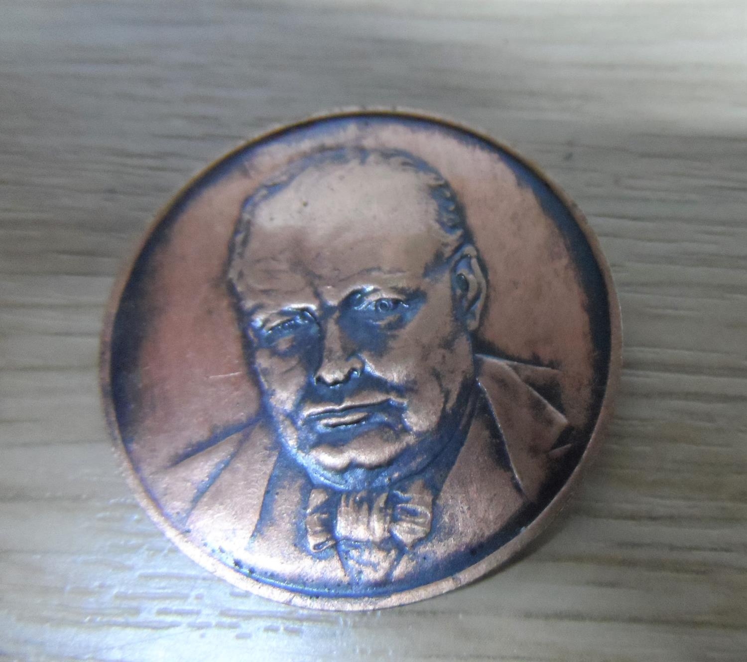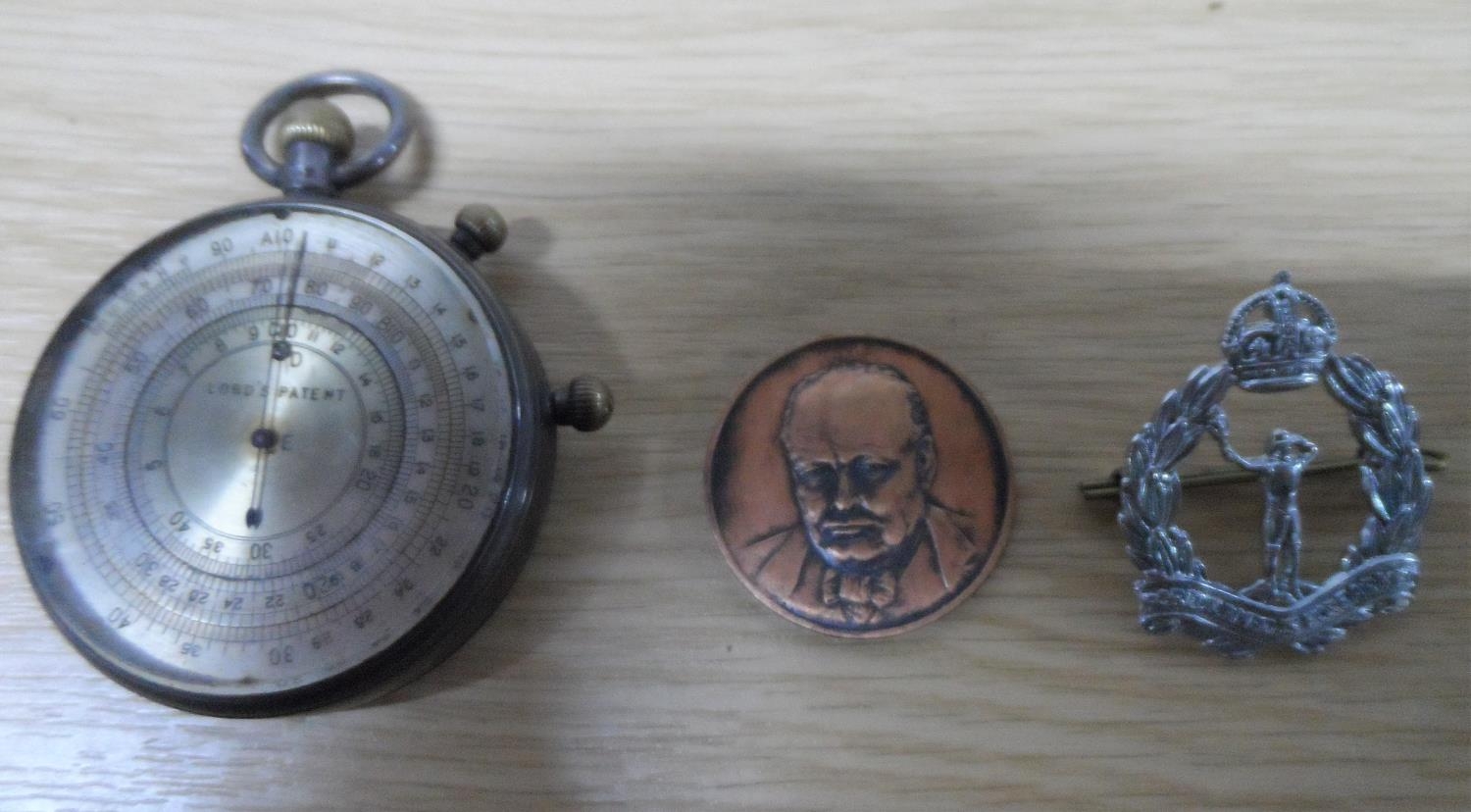 Lords Patent calculator (silver) together with a Winston Churchill bronze medallion etc (3)