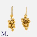 A Pair of Gold Drop Earrings with articulated ball drops. Indistinct marks; tests indicate 22k gold.