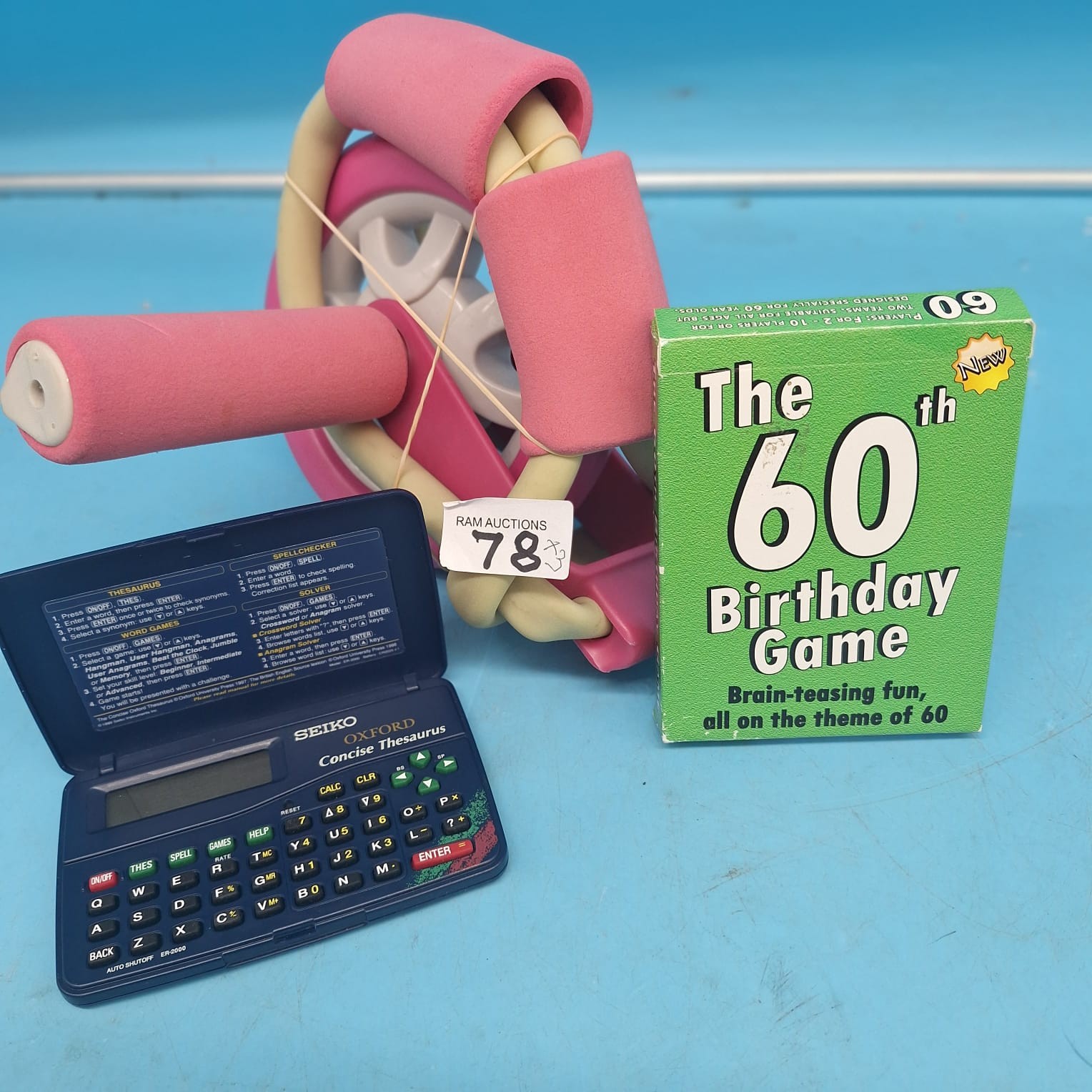 Seiko Oxford Concise Thesaurus (needs battery), 60th Birthday Game and an Avon Ladies Exerciser