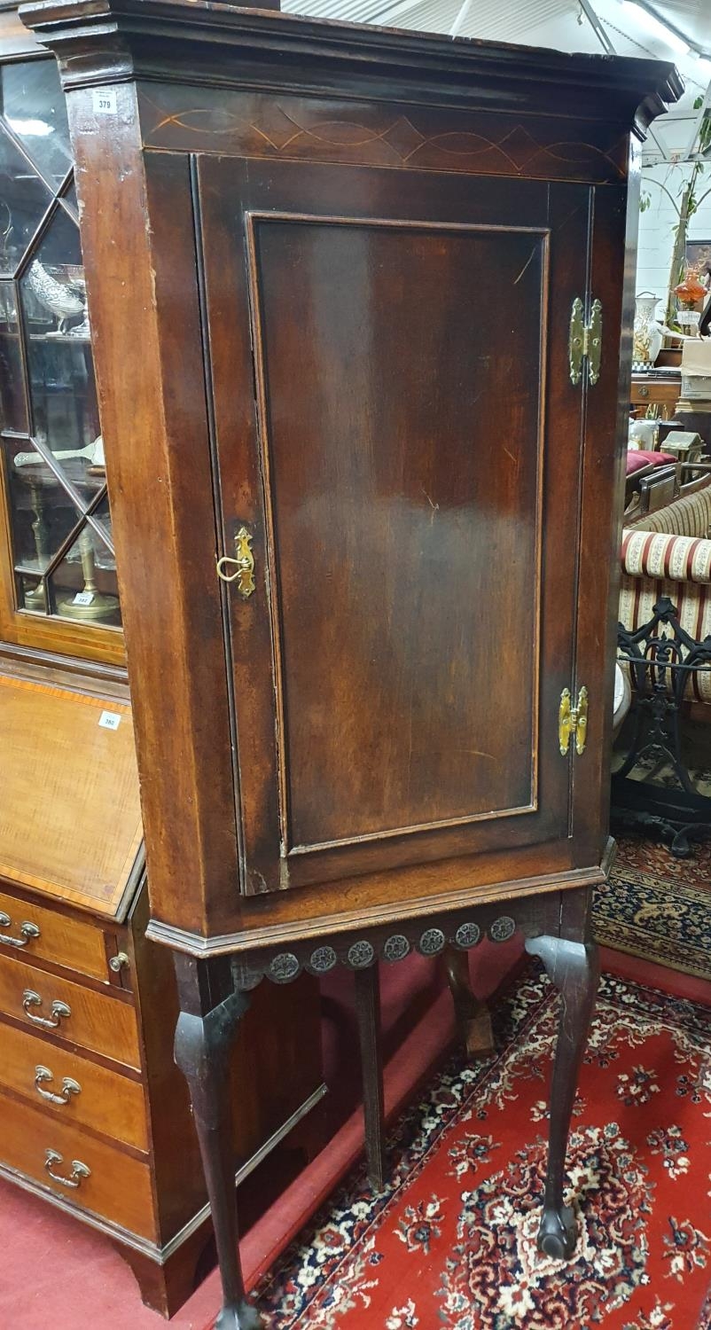 An unusual Georgian Mahogany Corner Cabinet on stand (Oak stand).W 72 X H 176 cms.