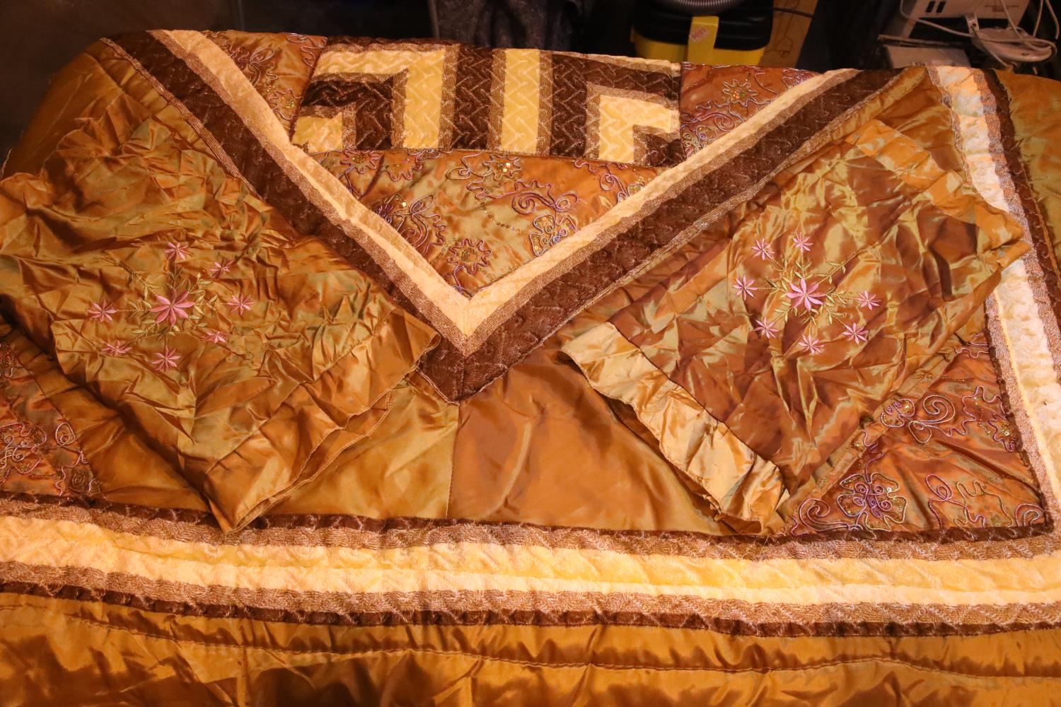 Highly decorated Chinese bed throw with matching pillow cases, 230 x 190 cm. Not available for in-house P&P