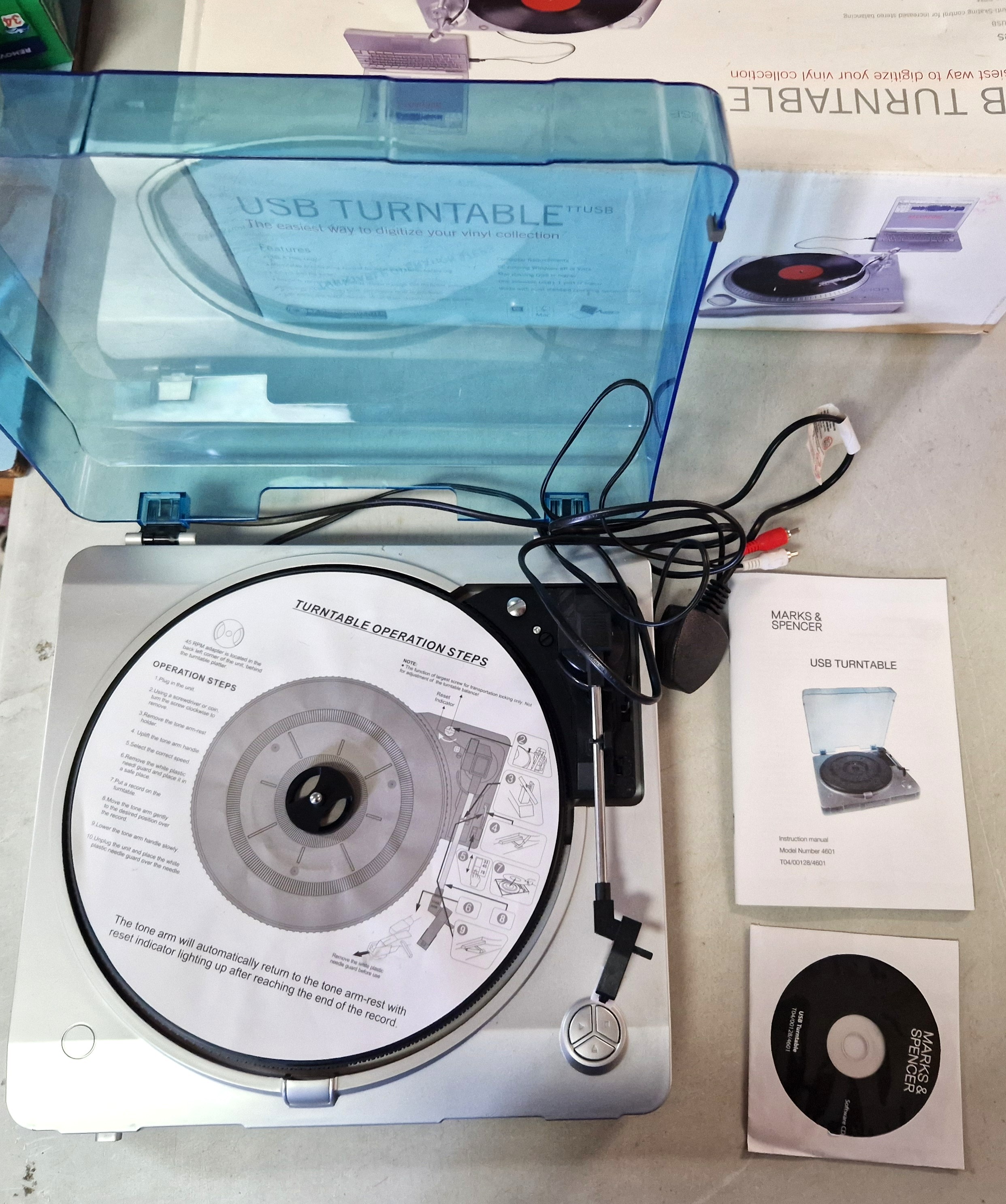 MARKS & SPENCERS USB TURNTABLE With INSTRUCTION MANUAL & CD (Please Note This Lot WILL NOT BE PACKED OR SHIPPED.....COLLECT ONLY !!!!)