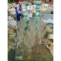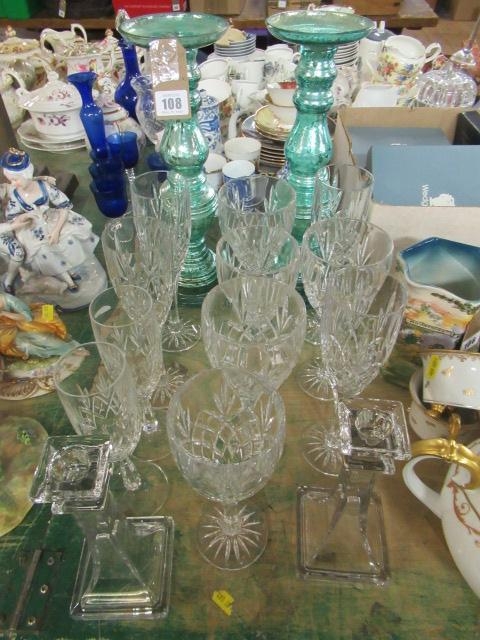 CRYSTAL GLASSES AND A PAIR OF CANDLESTICKS