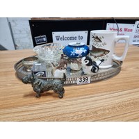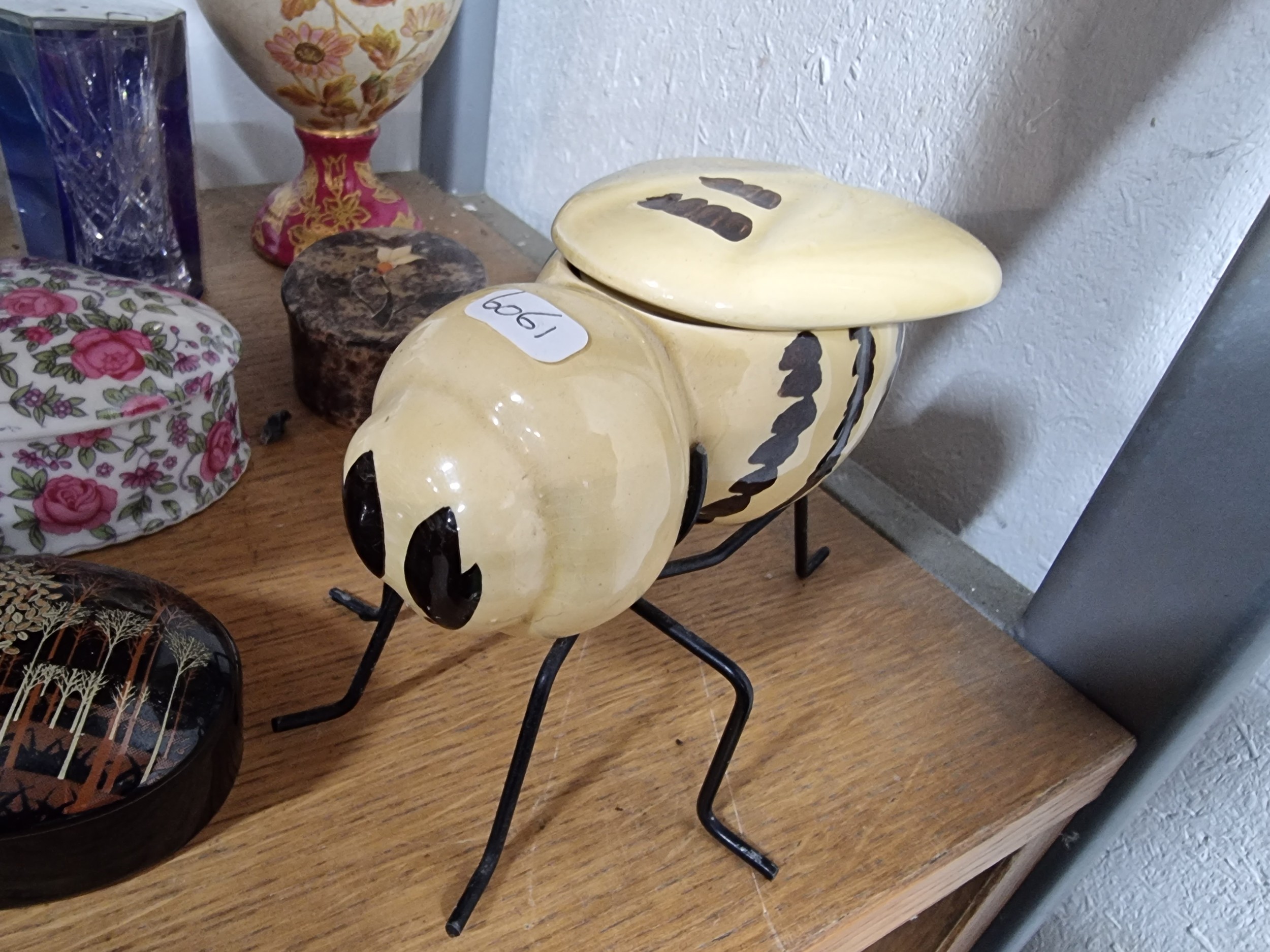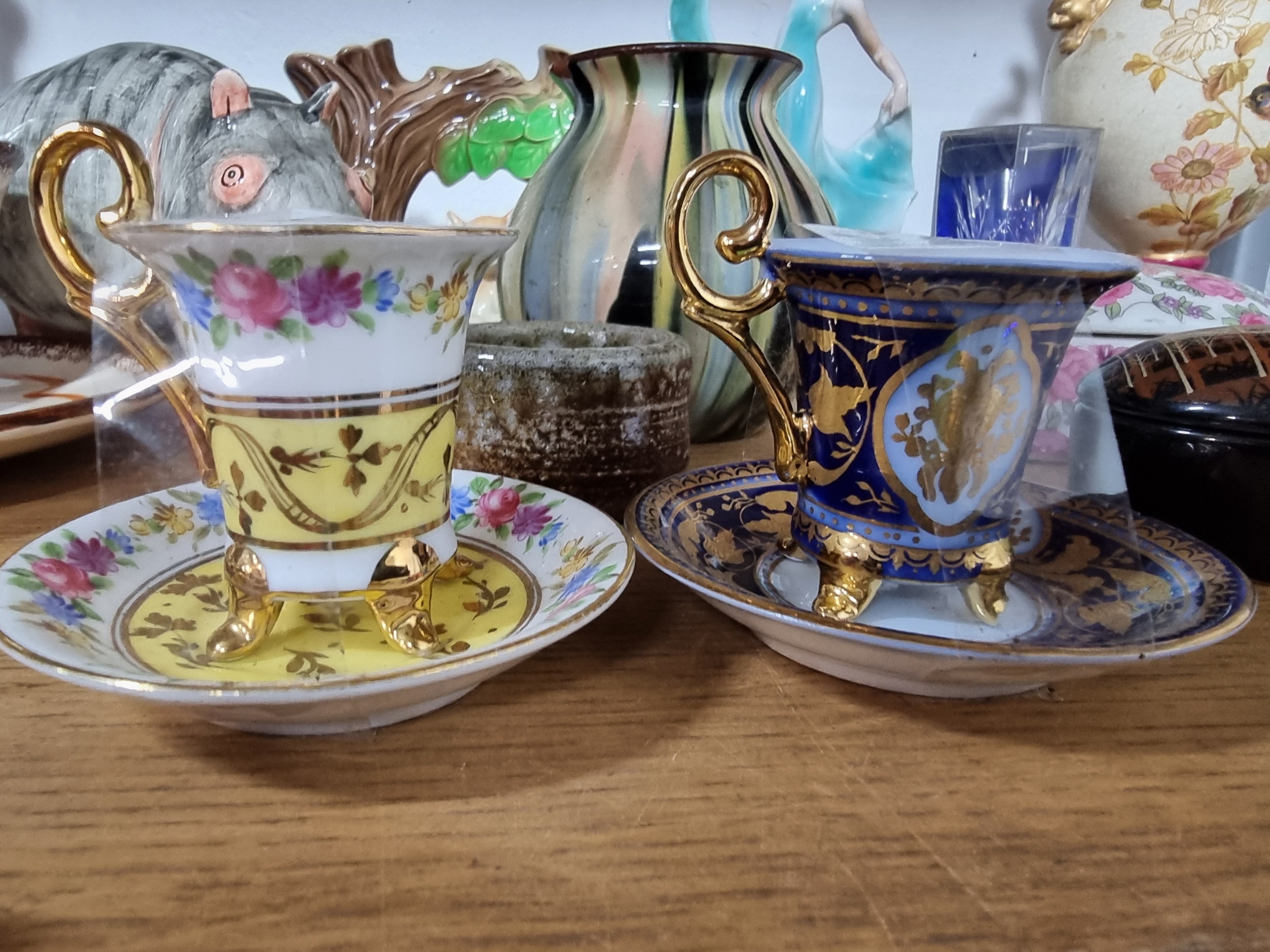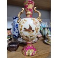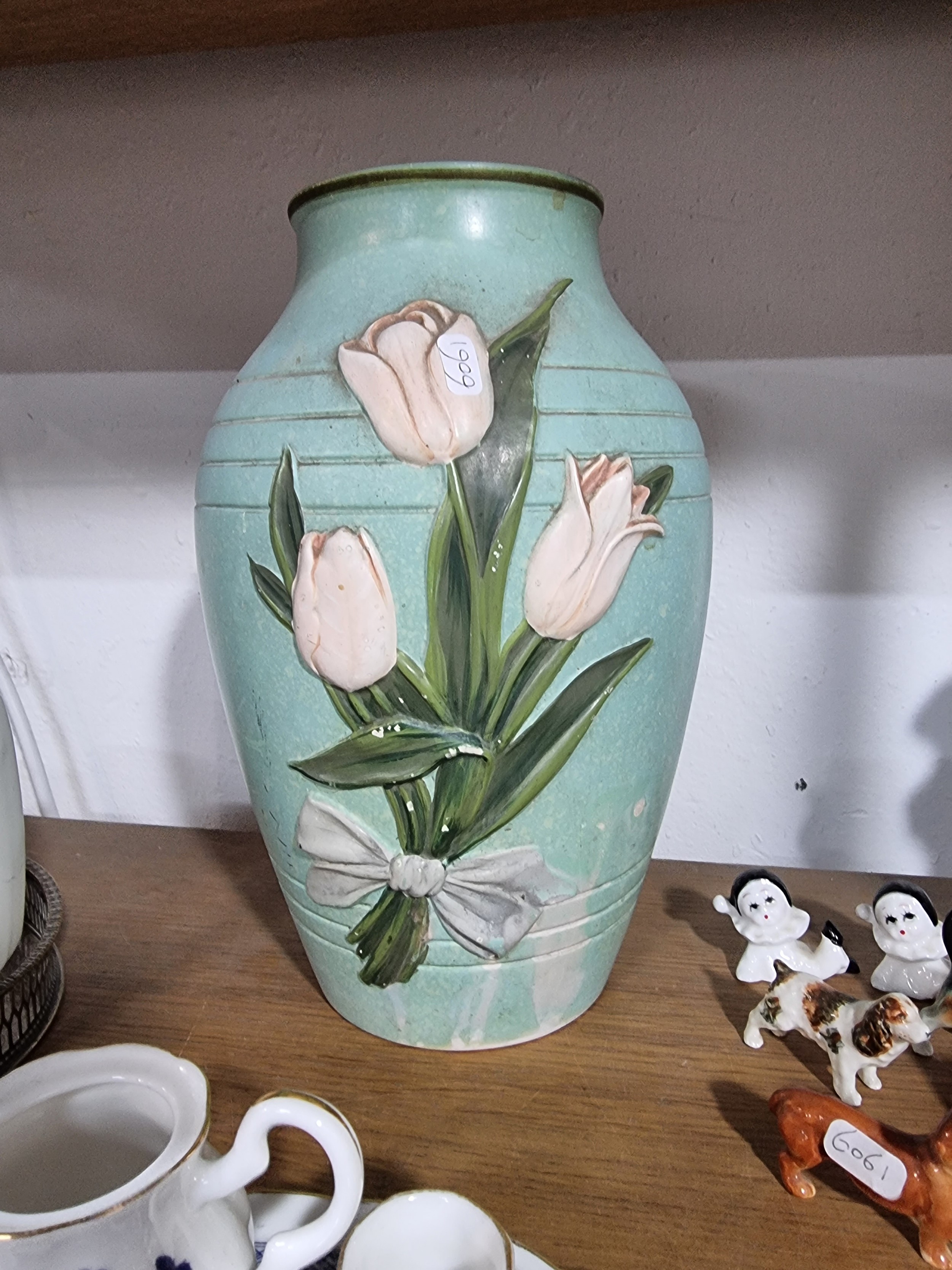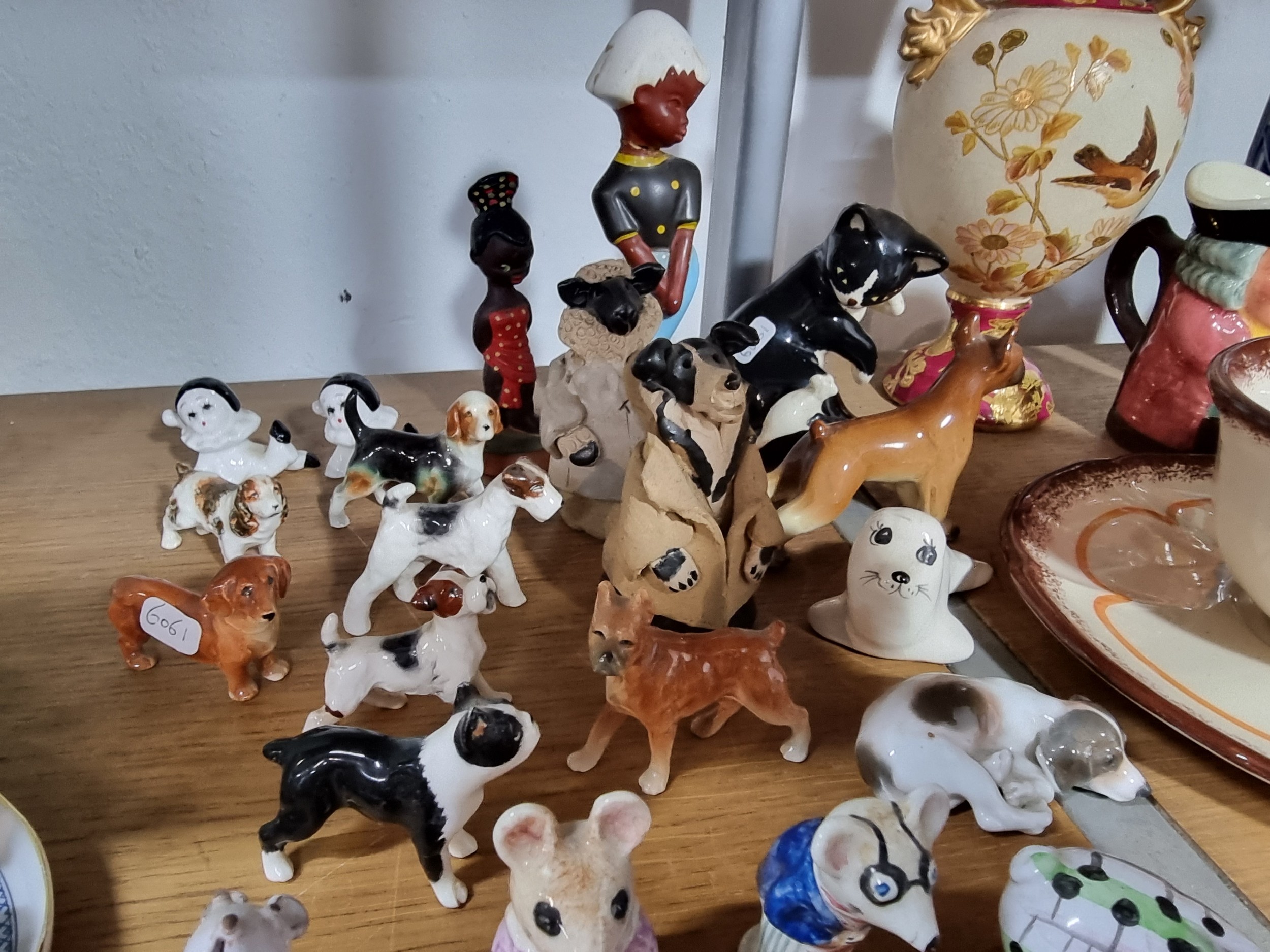 A shelf full of good quality collectables including an interesting antique blue and white Chinese vase with character marks to the base, a large Brentleigh Chelsea vase, a large quantity of figurines, 2 pretty antique hand-painted vases with a bird and floral design (one is af) along with many other collectables, please study photos for more details.