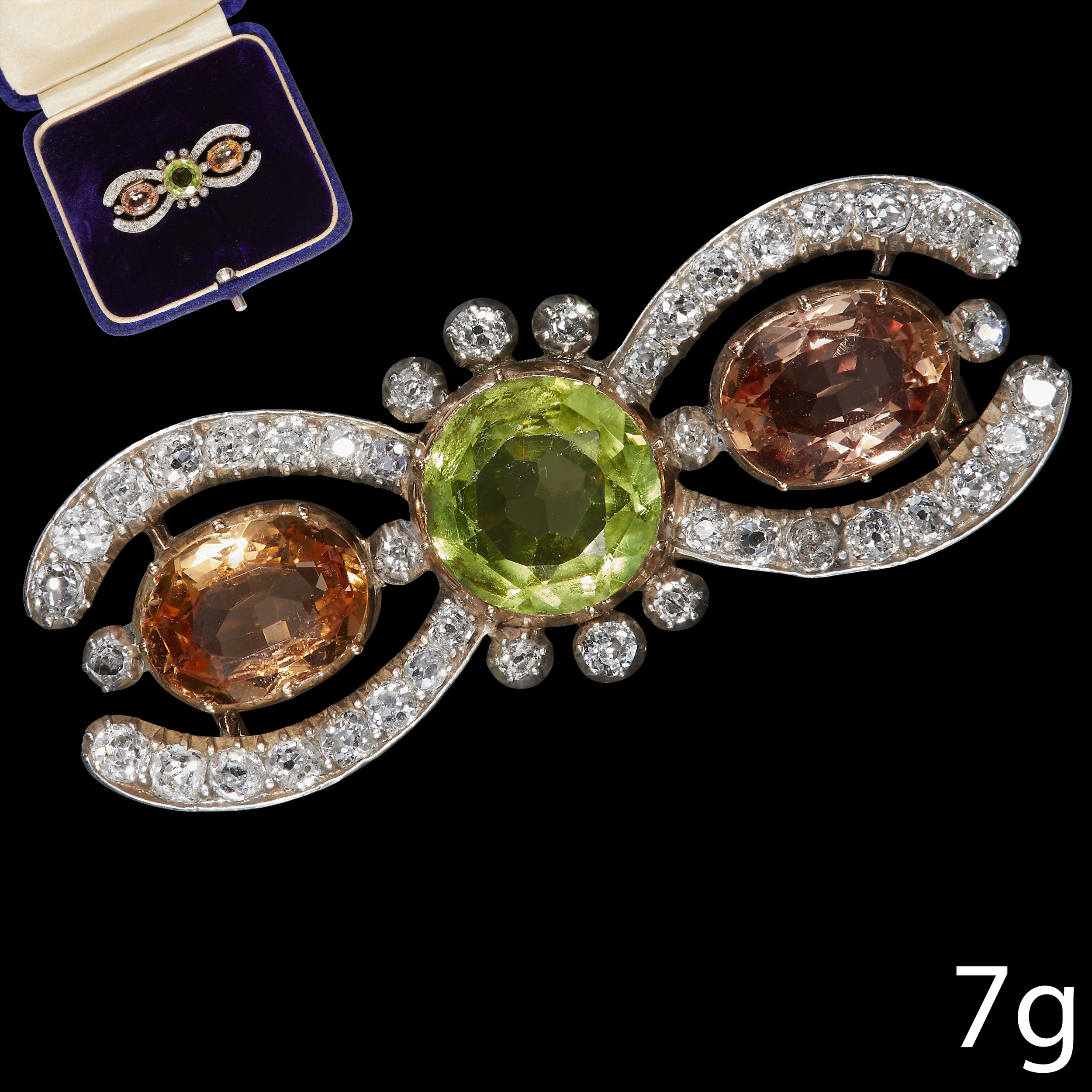 ANTIQUE VICTORIAN PERIDOT TOPAZ AND DIAMOND BROOCH