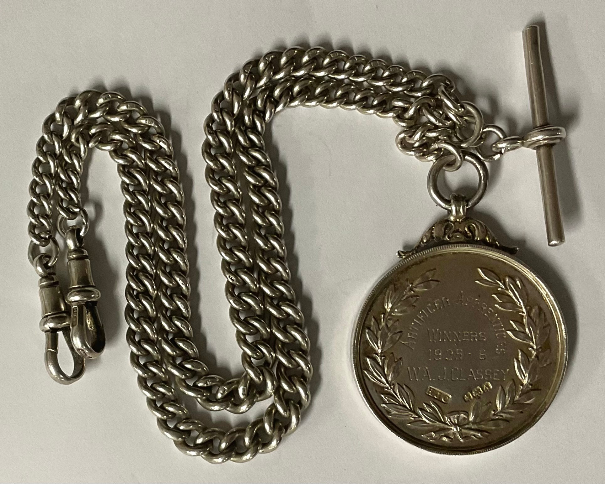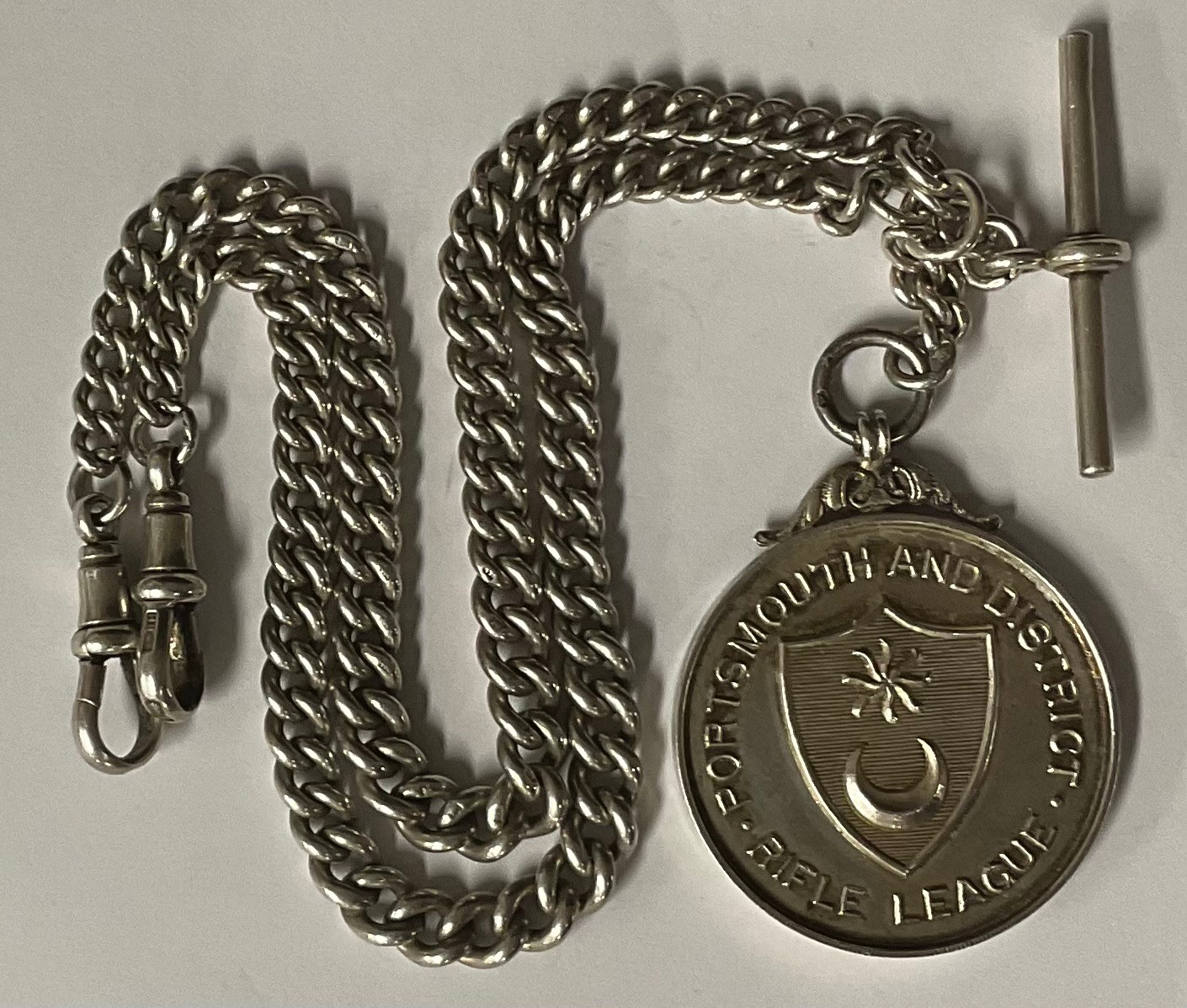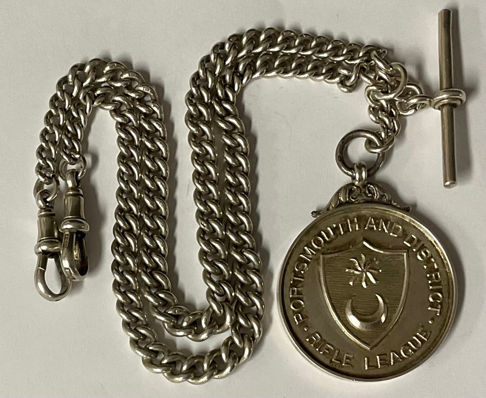 A hallmarked silver double Albert, with Portsmouth Rifle League medallion