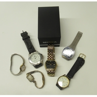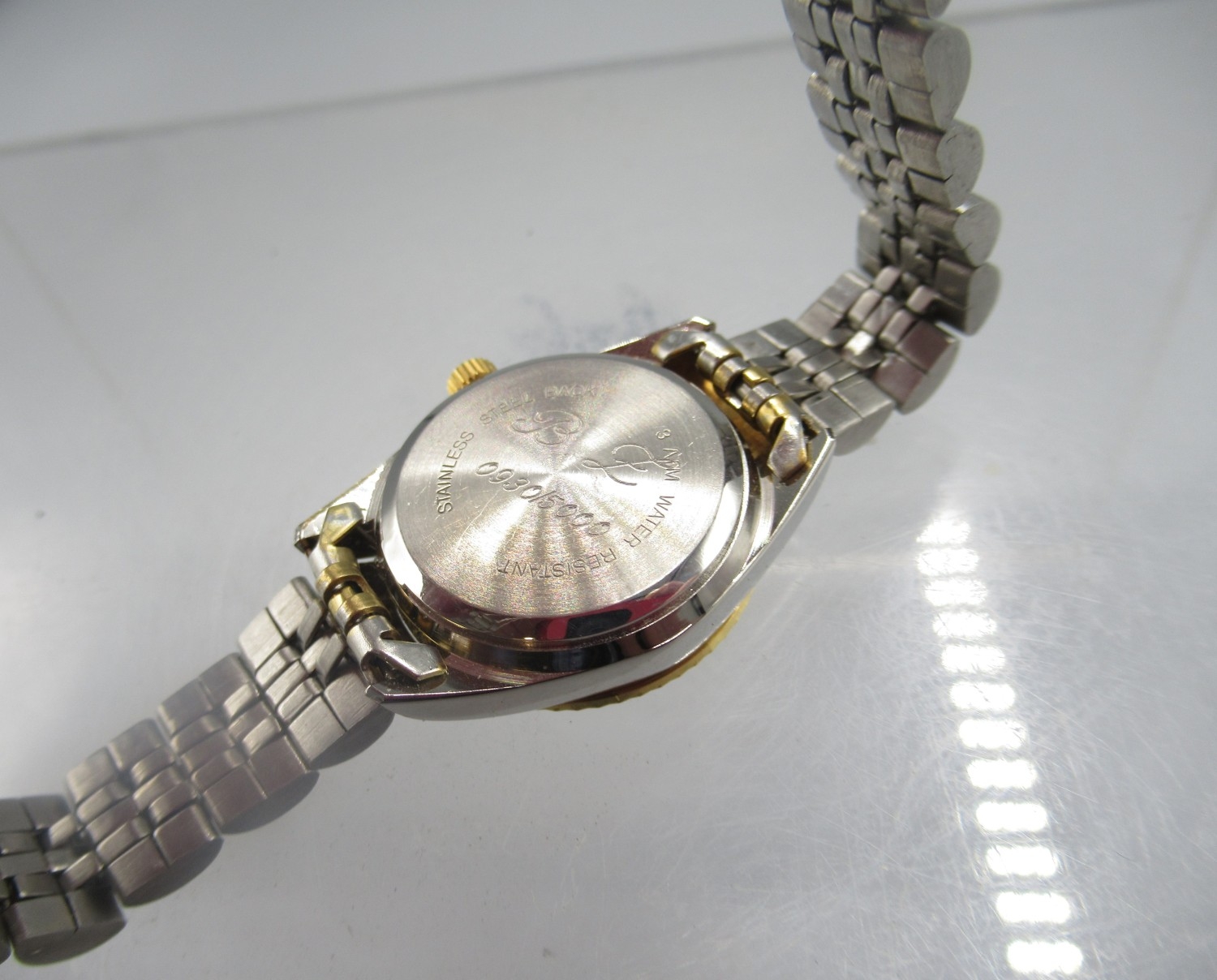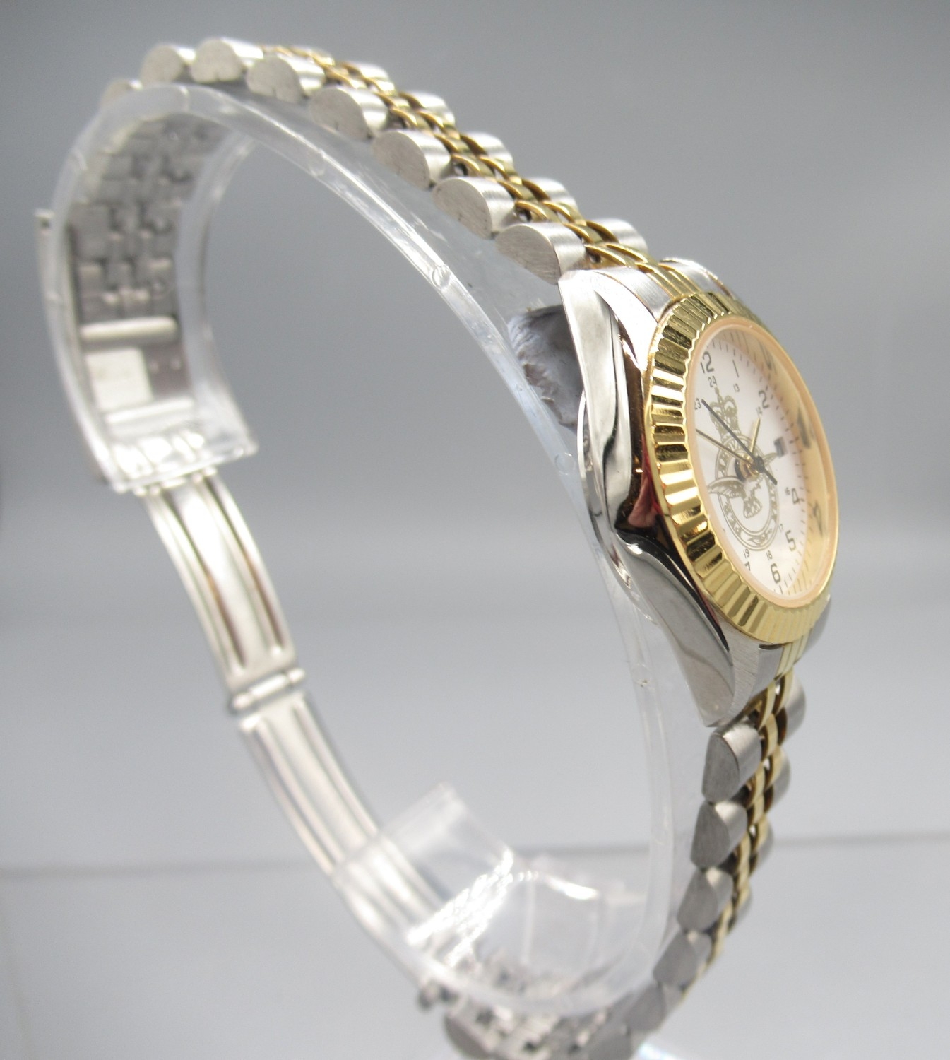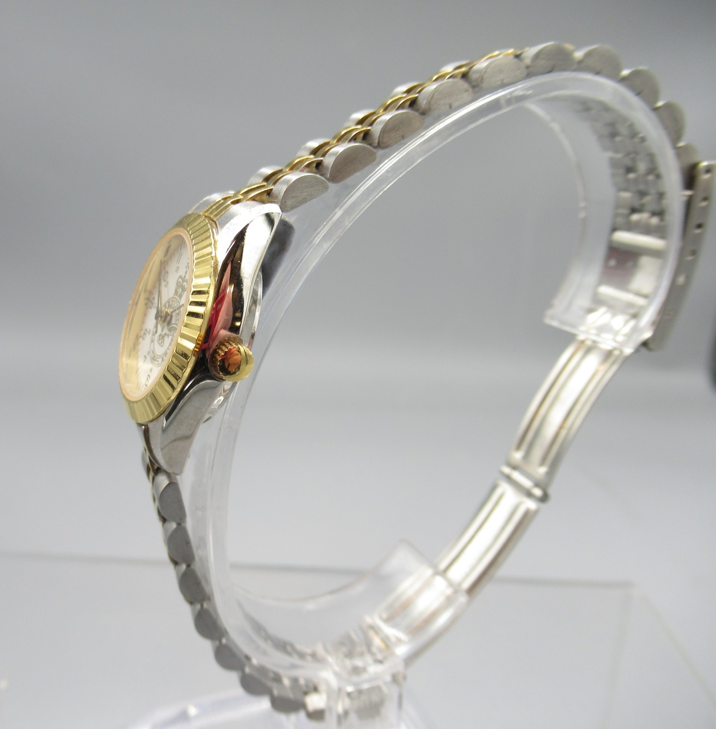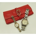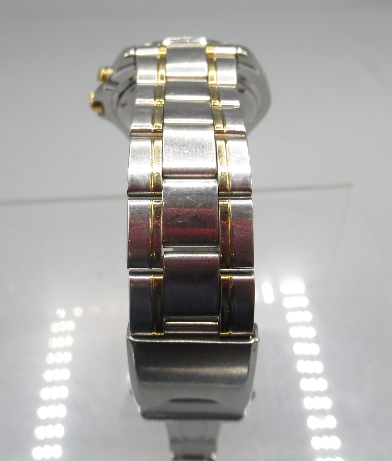 Seiko Kinetic 50m stainless steel and gold plated wristwatch with day/date on matching bracelet, signed cream dial with baton indices and centre seconds, signed screw on case back ref. 5M43-0C80, serial no. 010292, D45.2mm and ladies stainless steel and gold plated quartz wristwatch with date on matching bracelet, R.A.F. Arabic dial dial with centre seconds, snap on case back, limited edition no. 0930/5000, D24.7mm and leather wallet