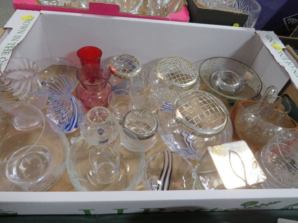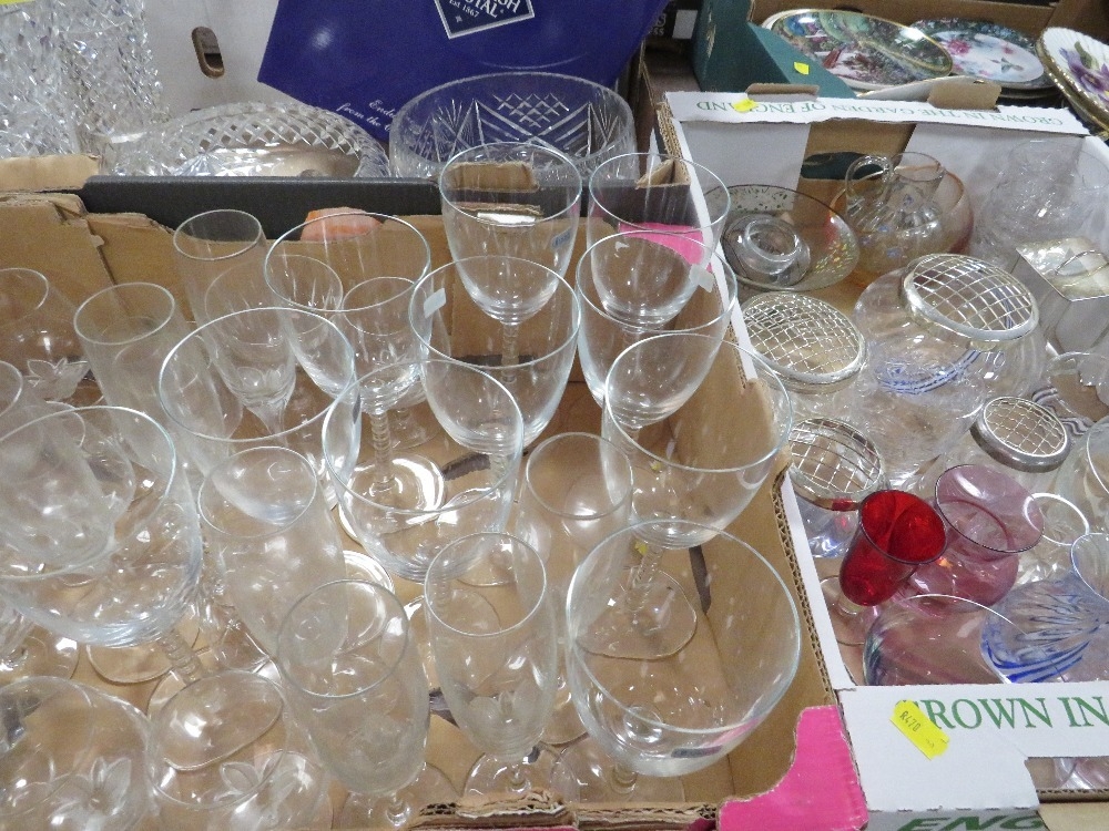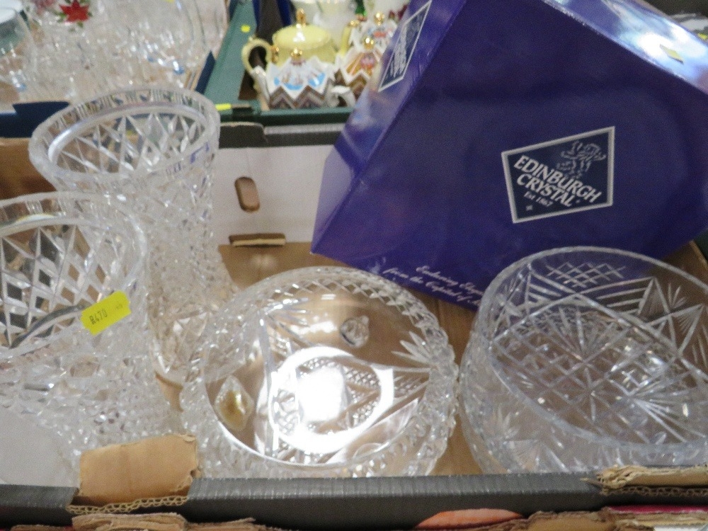 Three trays of assorted glassware to include Edinburgh crystal, bowls, vases etc