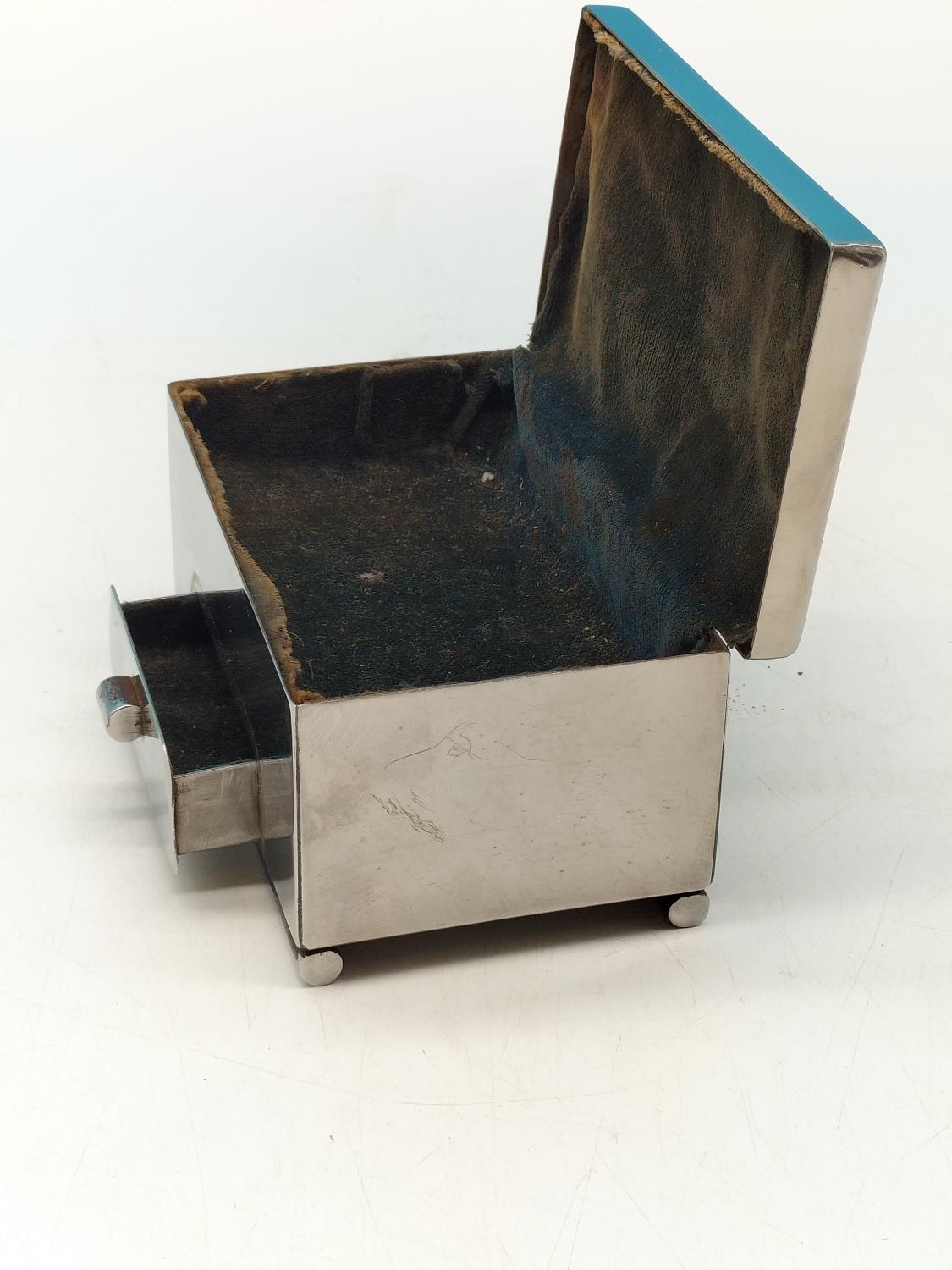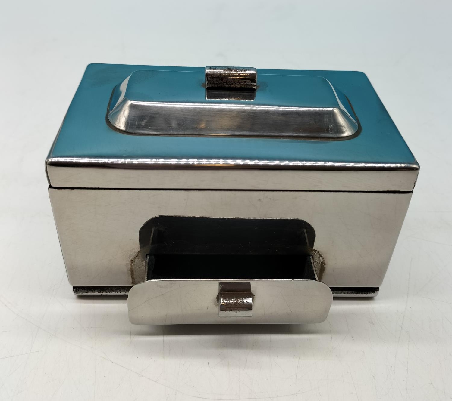 1930's Chrome Box. Lined. 9cm High, 13cm x 8cm.