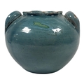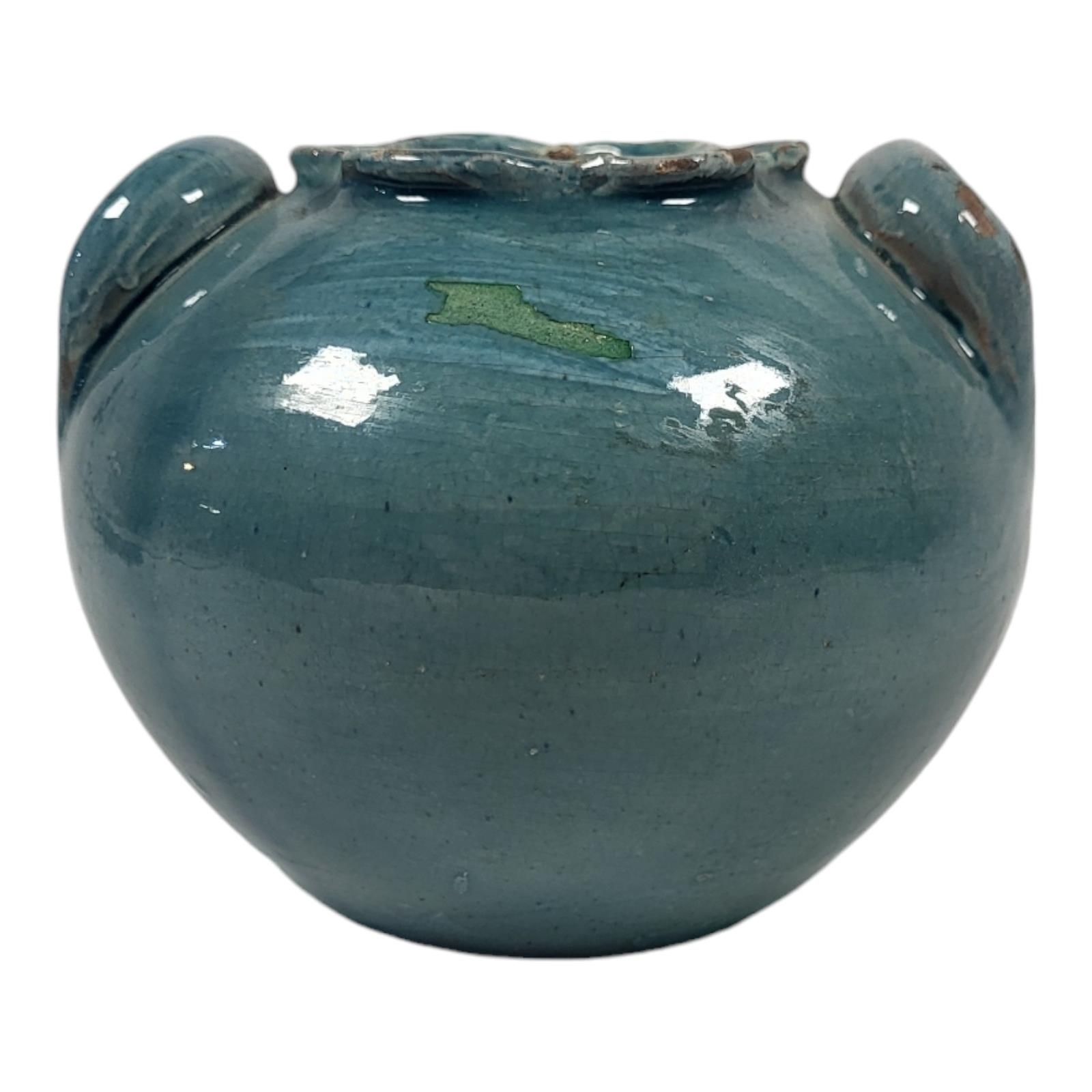 DELLA ROBBIA OF BIRKENHEAD, 1894 - 1906, ARTS & CRAFTS MOVEMENT EARTHENWARE BLUE GLAZED TWIN HANDLED BOWL