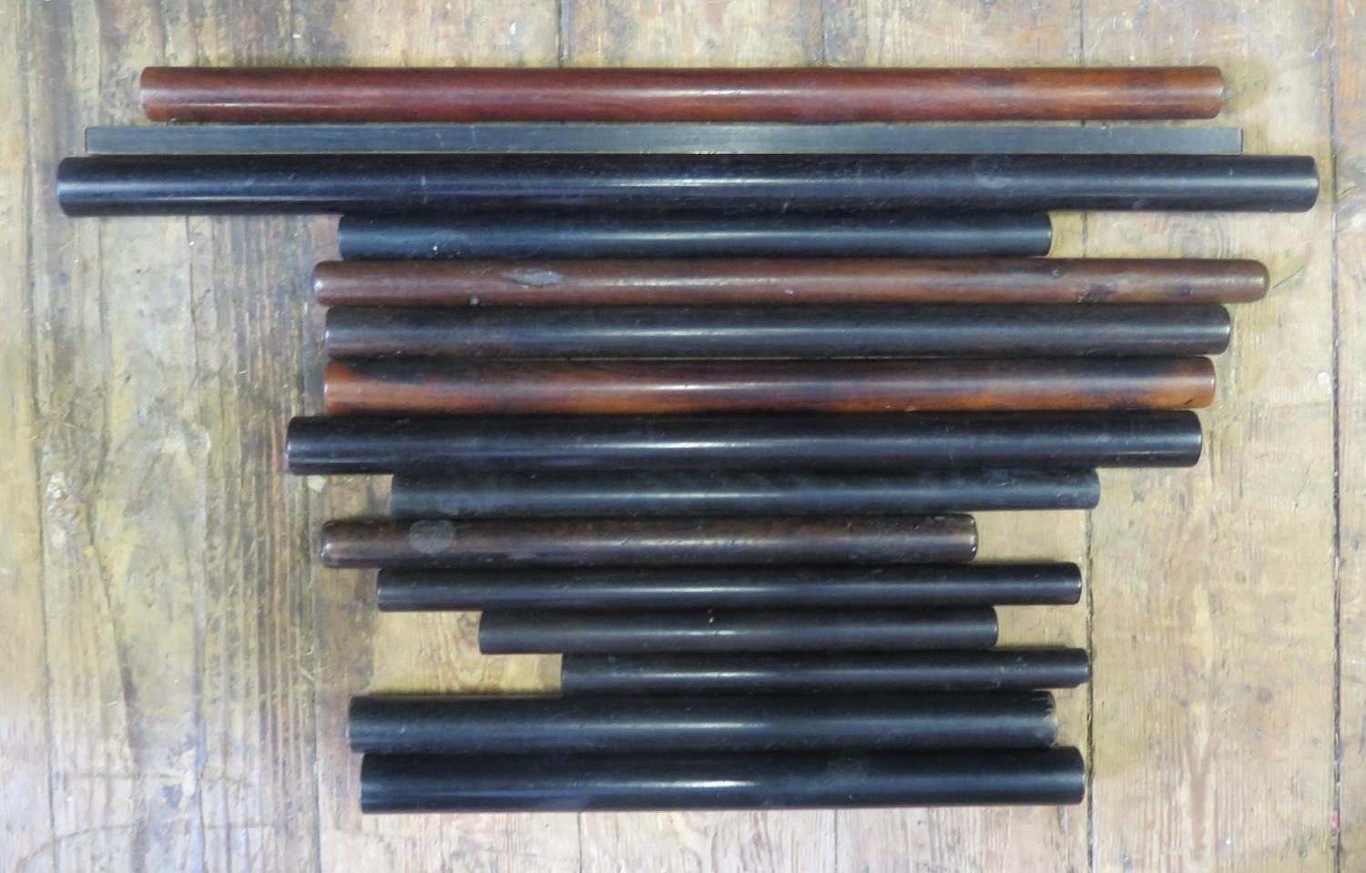 A Box of Old Wooden Cylindrical Rulers