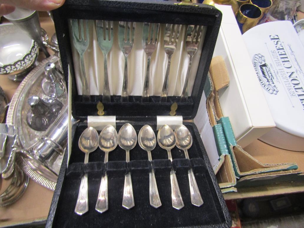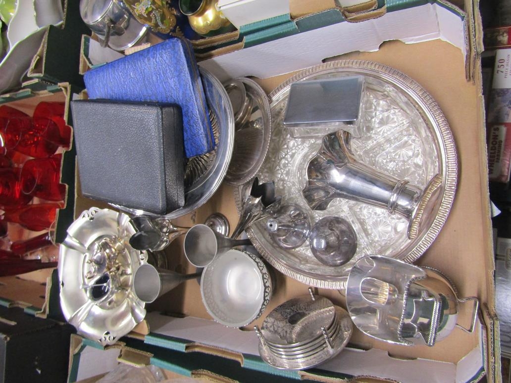BOX OF SMALL ITEMS OF SILVER PLATE AND GLASSWARE