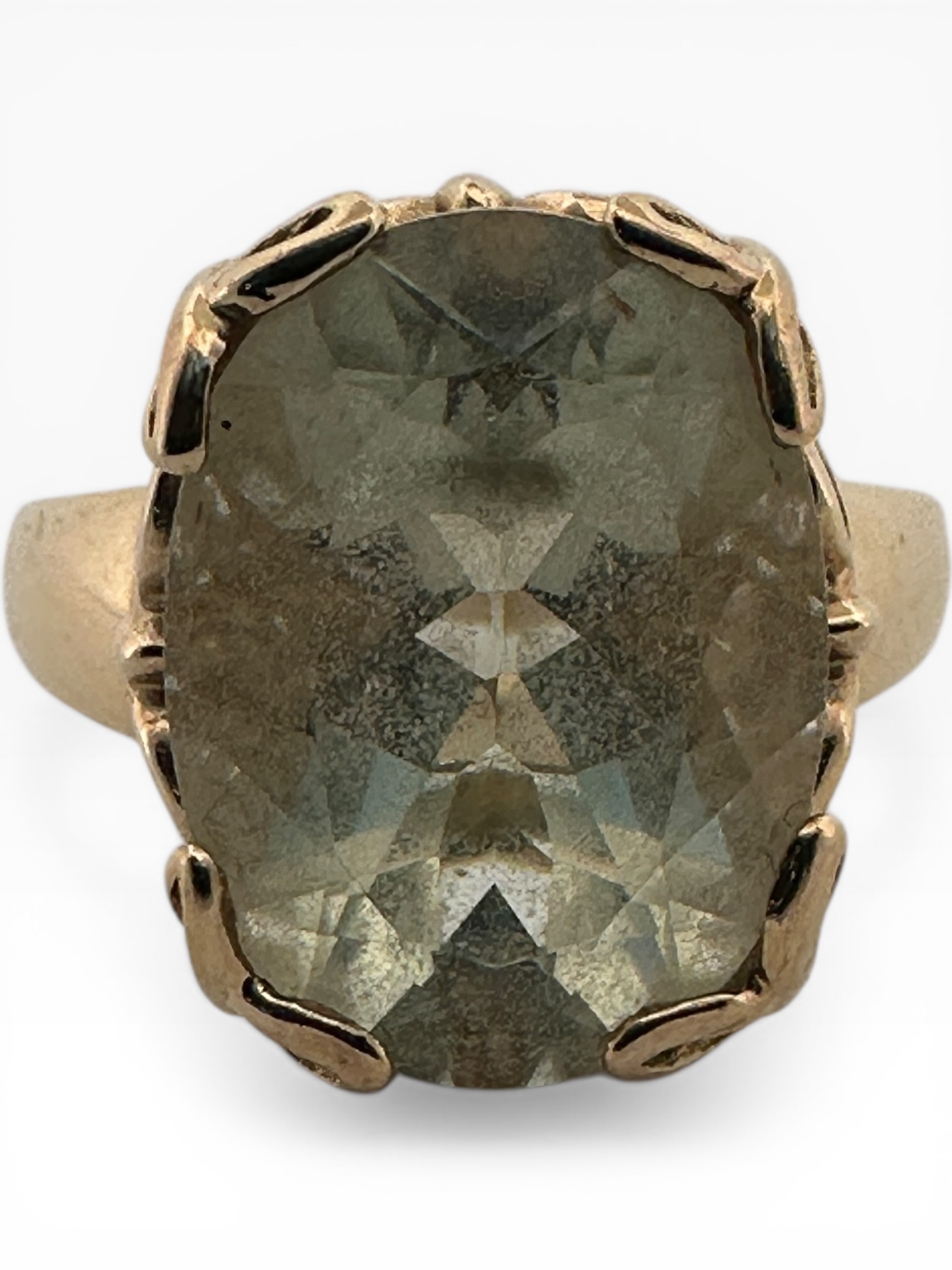 Nine Carat Gold Ring set with Large Aquamarine style Stone. ...