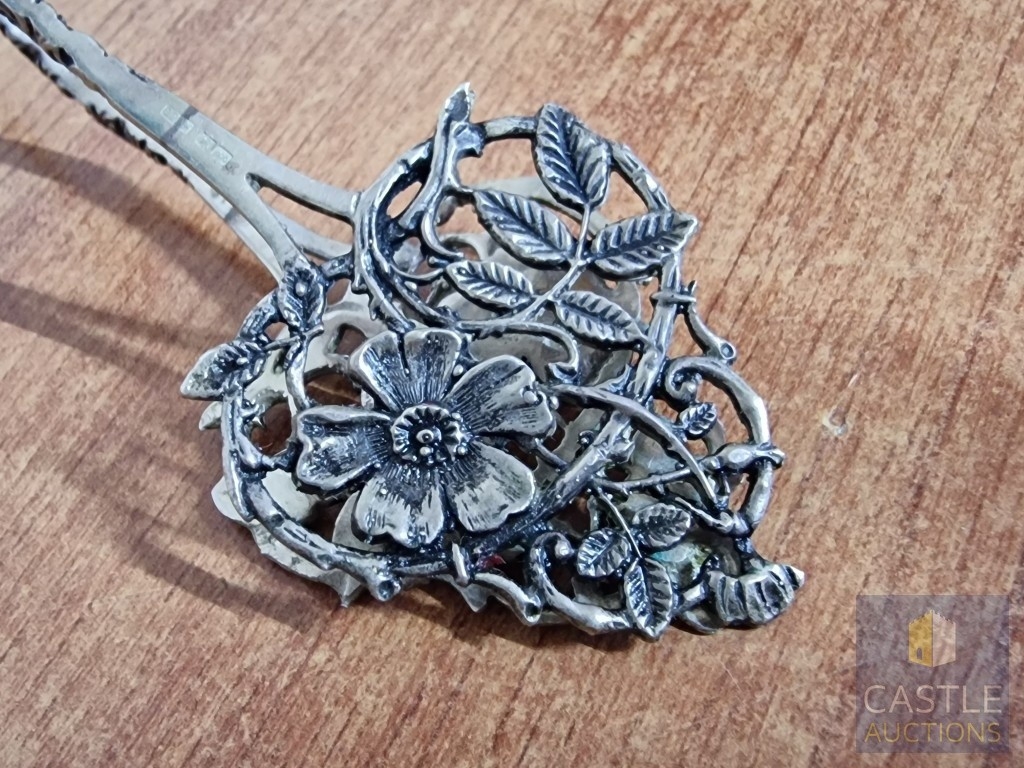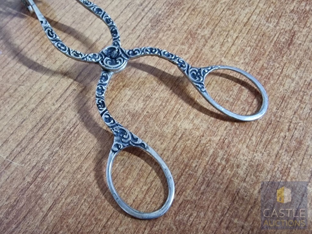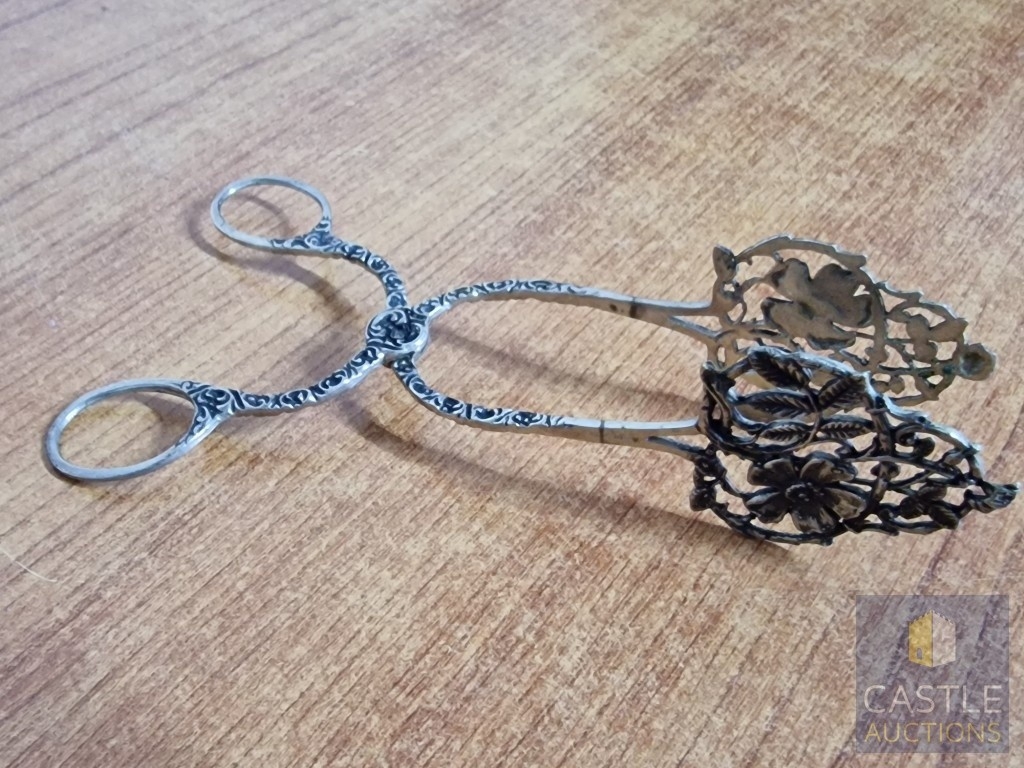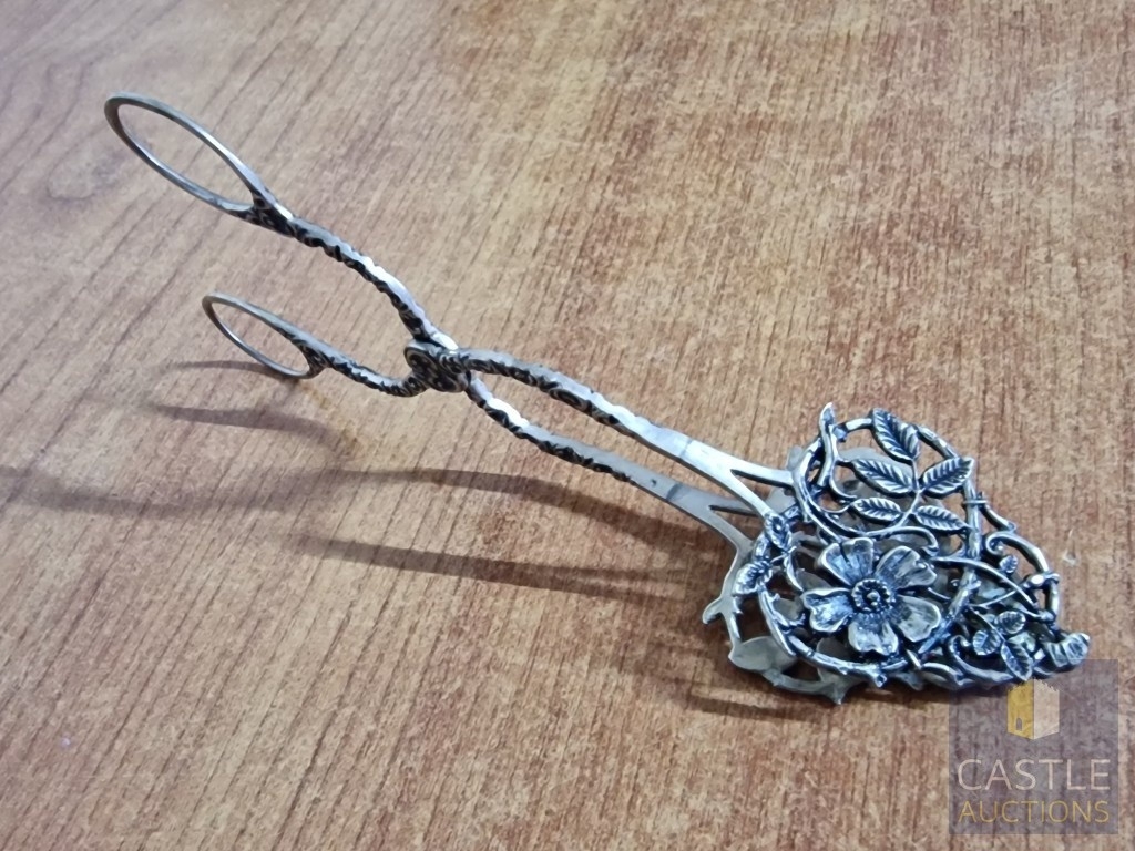 Vintage Silver Pastry Tongs with Pierced Floral Design Slices and Decorative Handles, Cypriot Assay Stamp, (Approx. L: 17cm, 51g, .800 Silver)