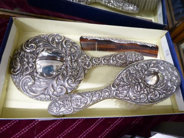 Silver backed hairbrush comb & mirror (crack) (3)