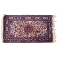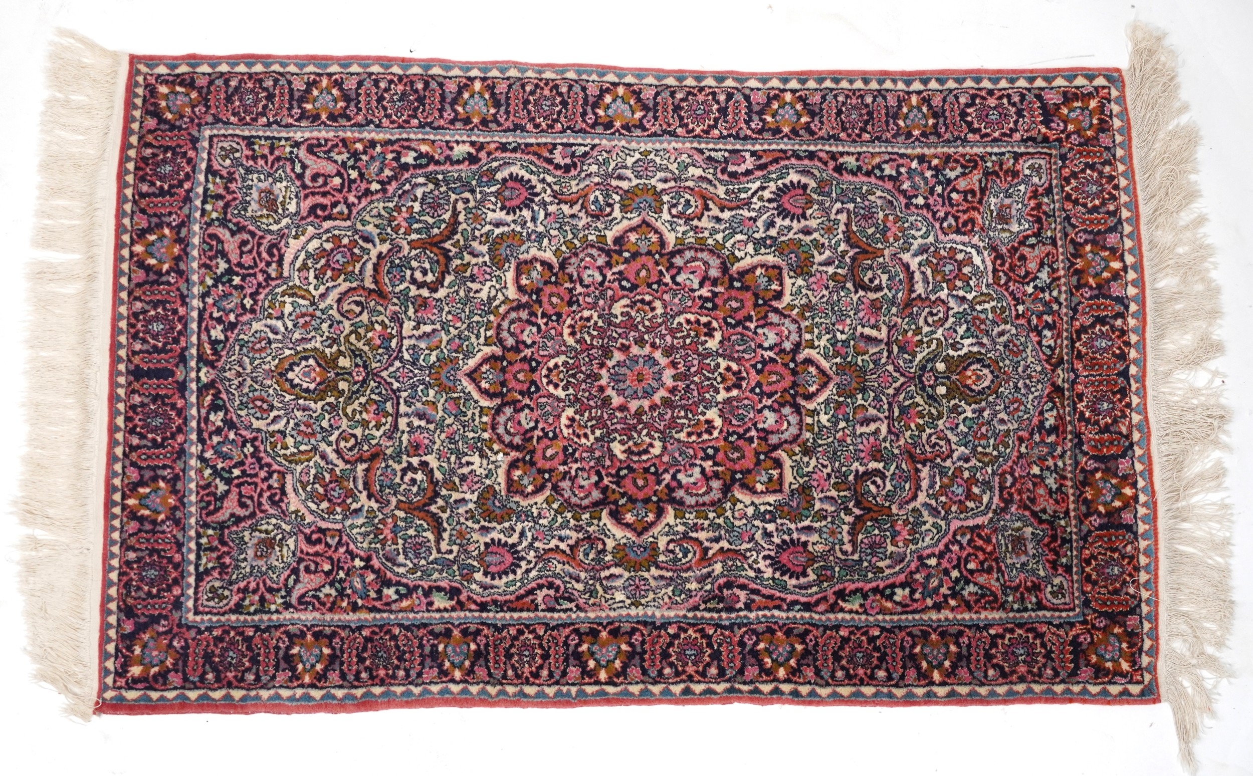 A Turkish rug, late 20th century, the pink field with a central stylized medallion within a complementary border, 150cm x 92cm.